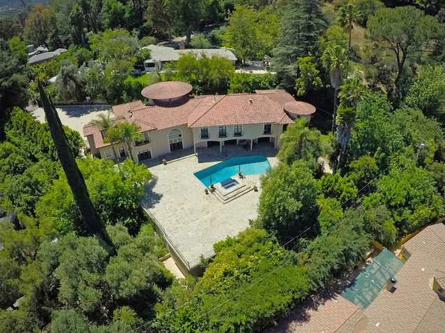 Beautifully appointed Mediterranean estate radiates sophistication & grandeur. Up a long pvt. drive the home sits prominently behind a gated entry & an expansive motor court. The elegant home features superb craftsmanship, custom finishes, & fine detailing. A dramatic foyer w/soaring ceilings welcomes you to the open floor plan. The great room features a wet bar & flows to the living room w/ fireplace & doors to patio. Enjoy cooking & entertaining in the fully equipped Chef's kitchen: top of the line appliances, 2 center islands, & tons of storage. There are 7BD+6.5BA incl. the exceptional master suite- complete w/dual walk-in closets w/ built-ins, luxurious master bath, & a large pvt. balcony. Set on almost an acre, the outdoor area boasts an expansive patio w/pool & spa, BBQ area, & flat grassy yard. Other features incl: large unfinished GH/ bonus space that comes w/a fresh permit, media room, top quality wood & Travertine, decorative moldings, sound system, 3-car garage, & more!