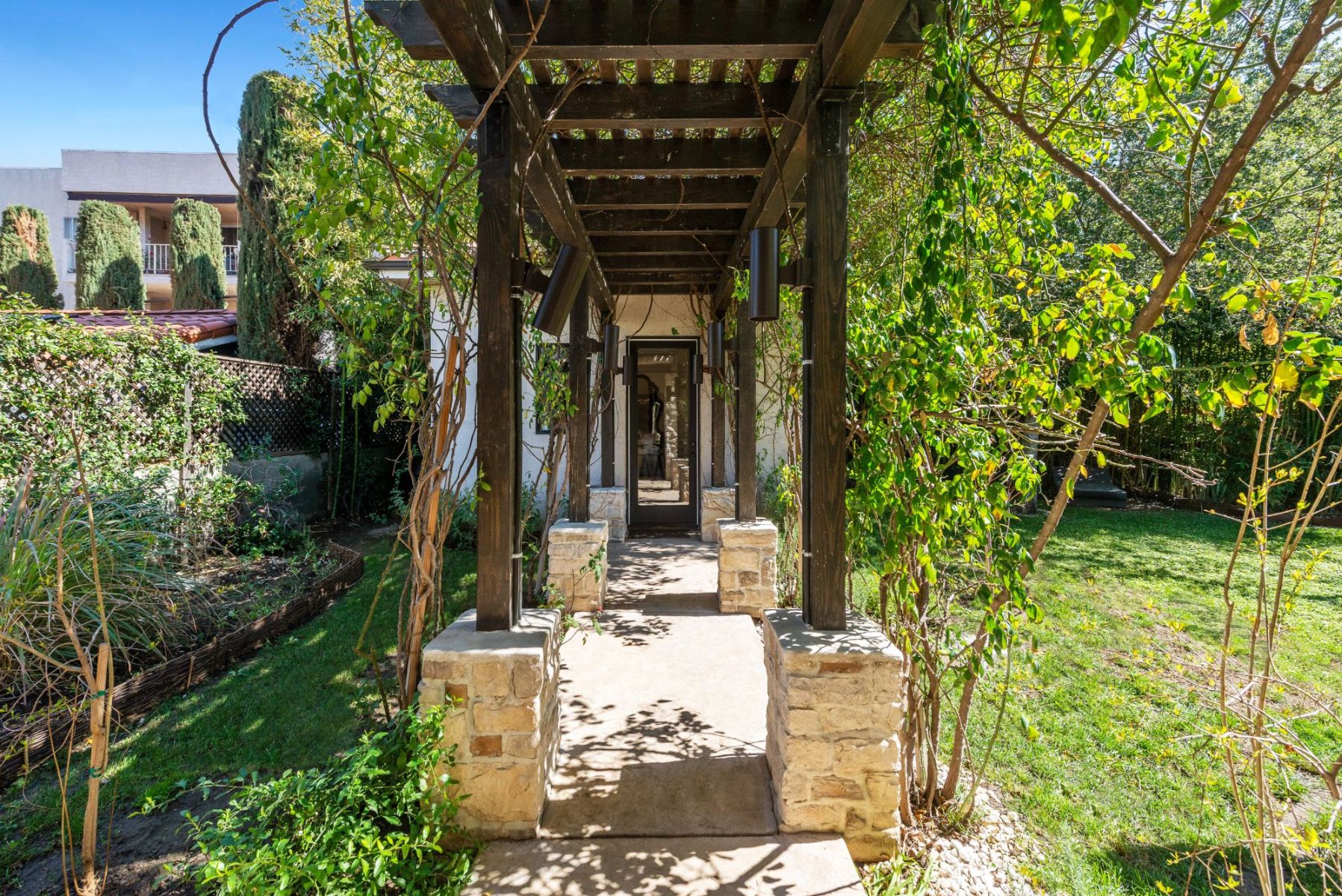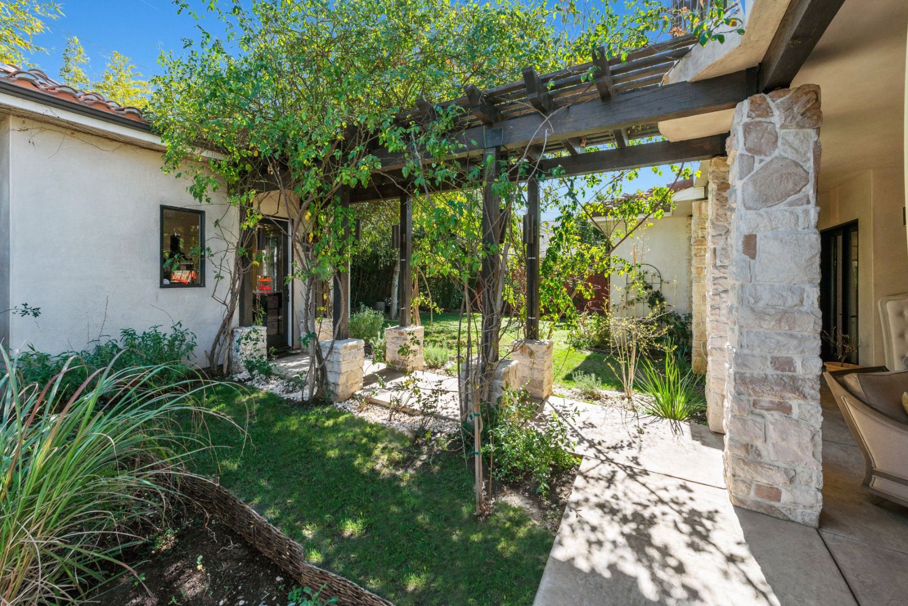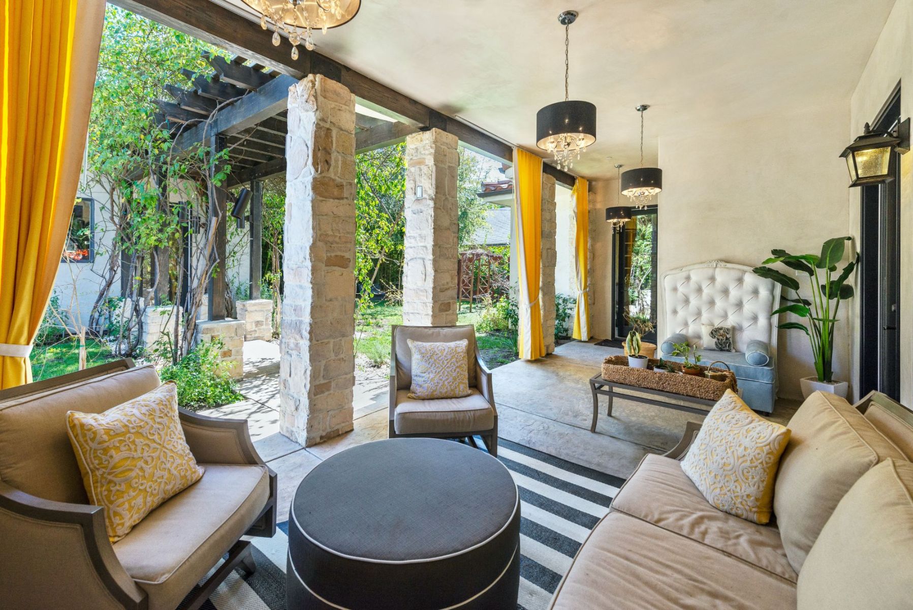 Private and elegant, this contemporary French chateau is beautifully updated to provide the most wonderful family and entertaining possibilities behind the safety of the gates. Beyond a picture-perfect court, a sweeping entry flows into to a beautiful, expansive setting perfect for a family. Open floor plan and nature-inspired details fill every corner with sunlight, warmth and serenity. Living room opens up to a veranda fireside lounge and a lush garden perfect for entertaining. Flawless entertaining flow continues through a beautiful vine pergola to a charming guest house/office. Gorgeous kitchen with breakfast area by the garden and a formal dining room for gathering intimate or large. 5 spacious bedrooms with en suite baths tailor-made for the comfort of family and friends. The primary suite features a private balcony and an exquisite bath with a calming soaking tub. This residence fulfills all of your home desires.