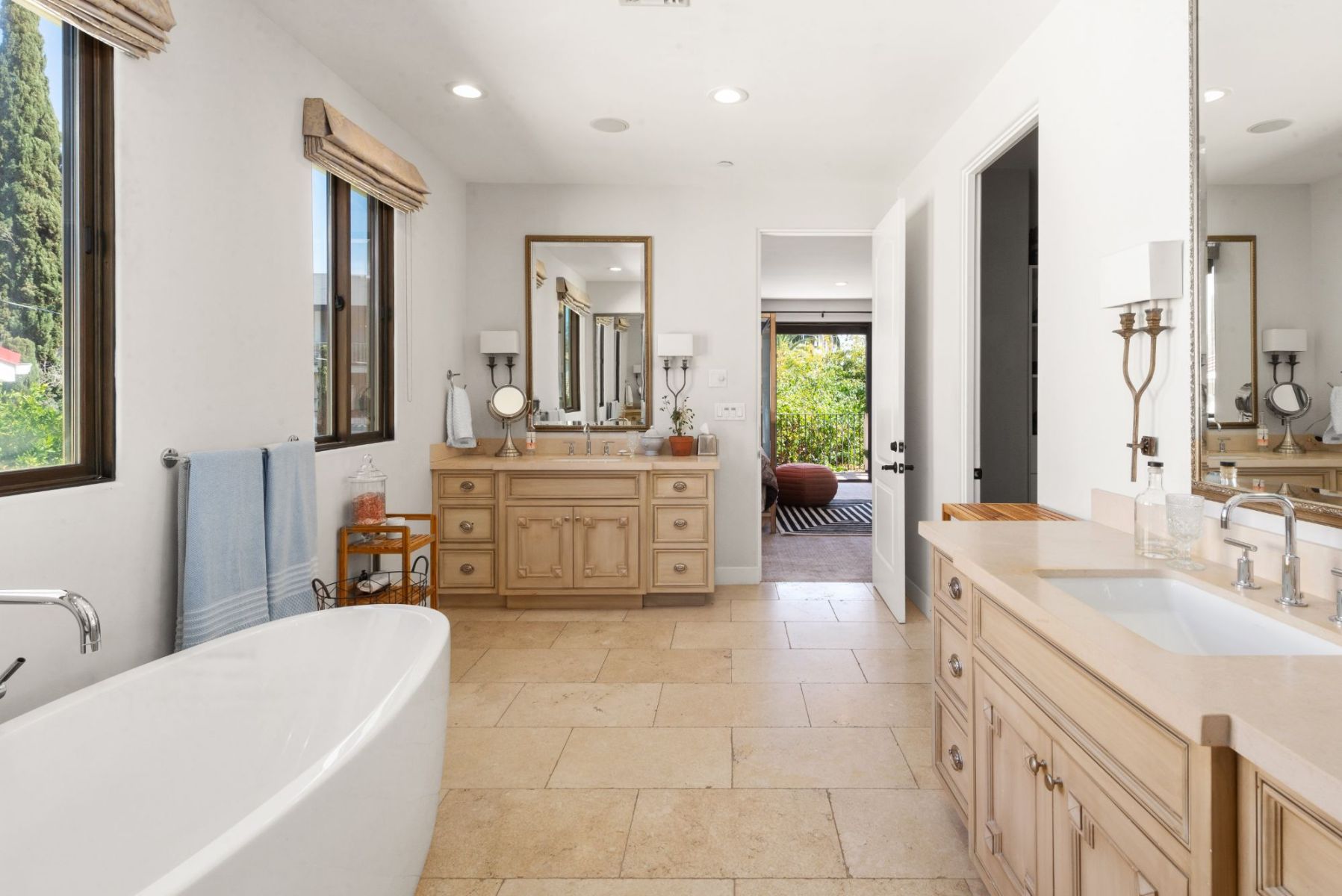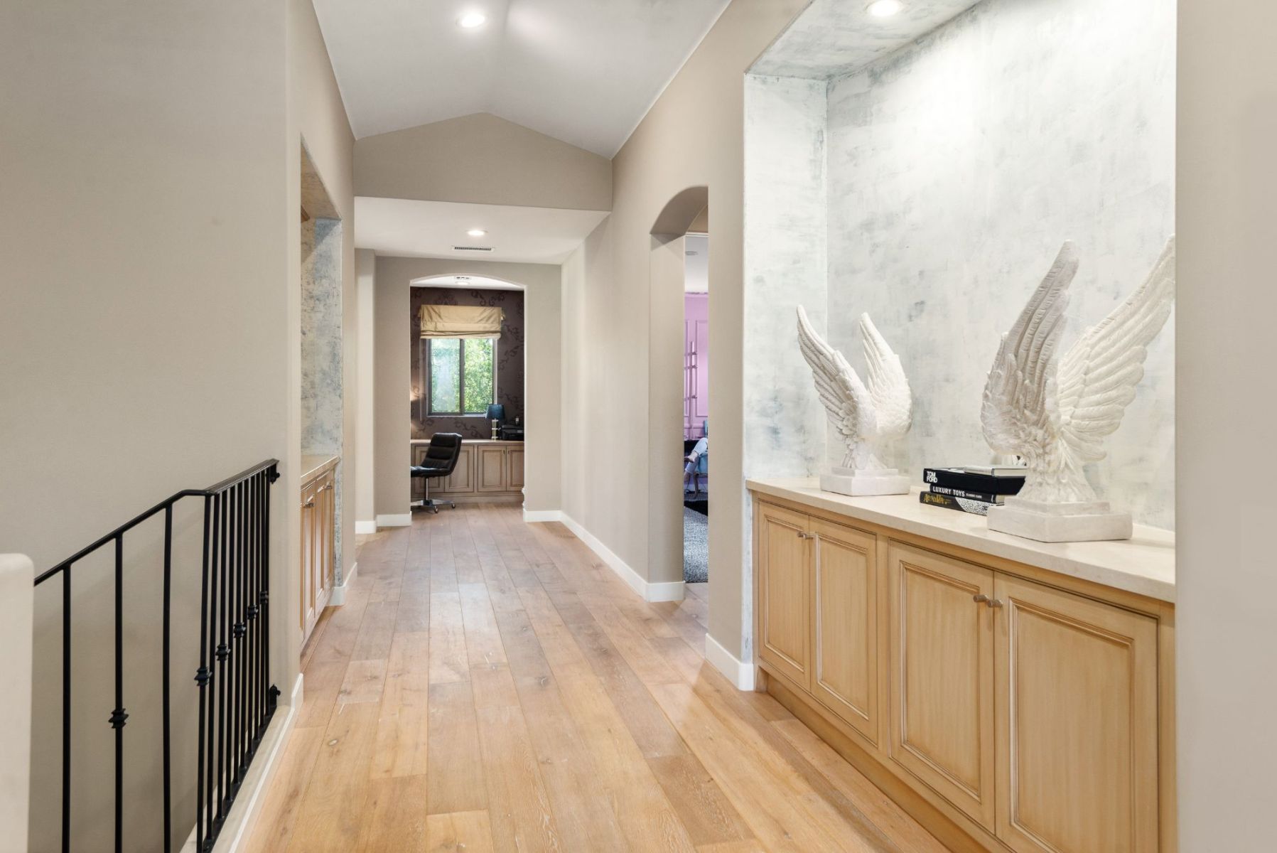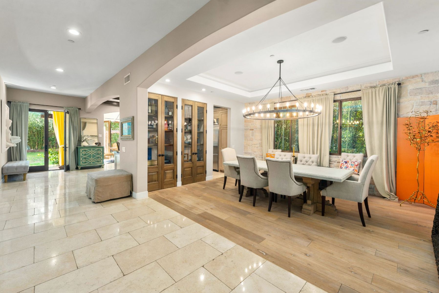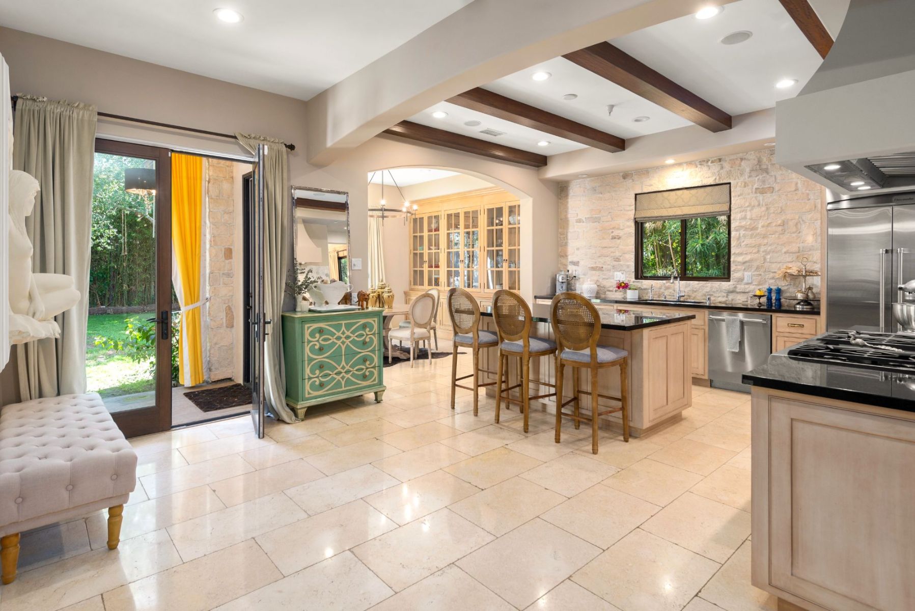 Private and elegant, this contemporary French chateau is beautifully updated to provide the most wonderful family and entertaining possibilities behind the safety of the gates. Beyond a picture-perfect court, a sweeping entry flows into to a beautiful, expansive setting perfect for a family. Open floor plan and nature-inspired details fill every corner with sunlight, warmth and serenity. Living room opens up to a veranda fireside lounge and a lush garden perfect for entertaining. Flawless entertaining flow continues through a beautiful vine pergola to a charming guest house/office. Gorgeous kitchen with breakfast area by the garden and a formal dining room for gathering intimate or large. 5 spacious bedrooms with en suite baths tailor-made for the comfort of family and friends. The primary suite features a private balcony and an exquisite bath with a calming soaking tub. This residence fulfills all of your home desires.