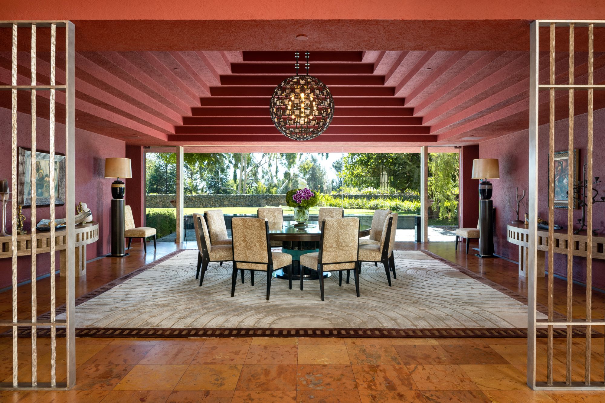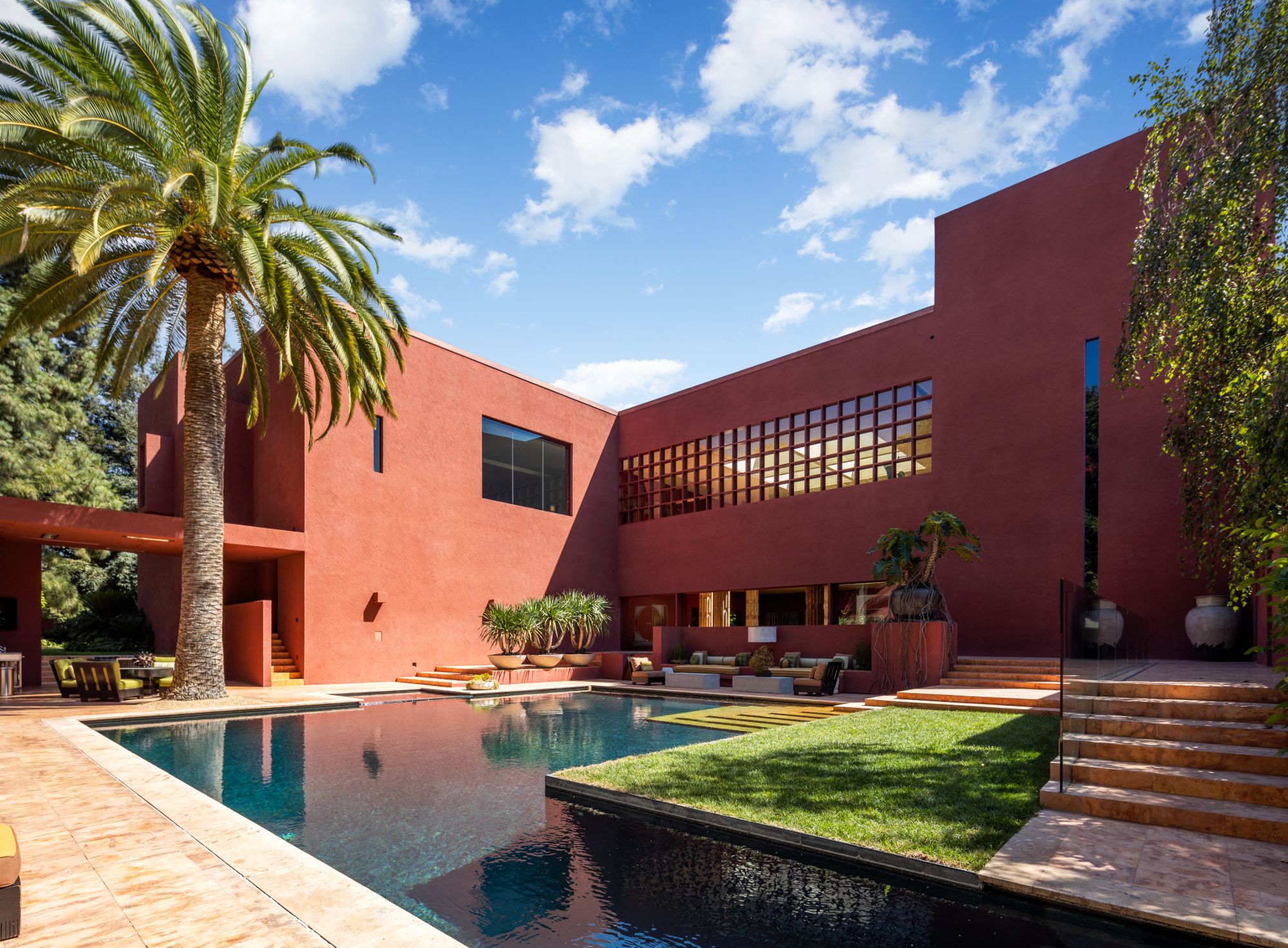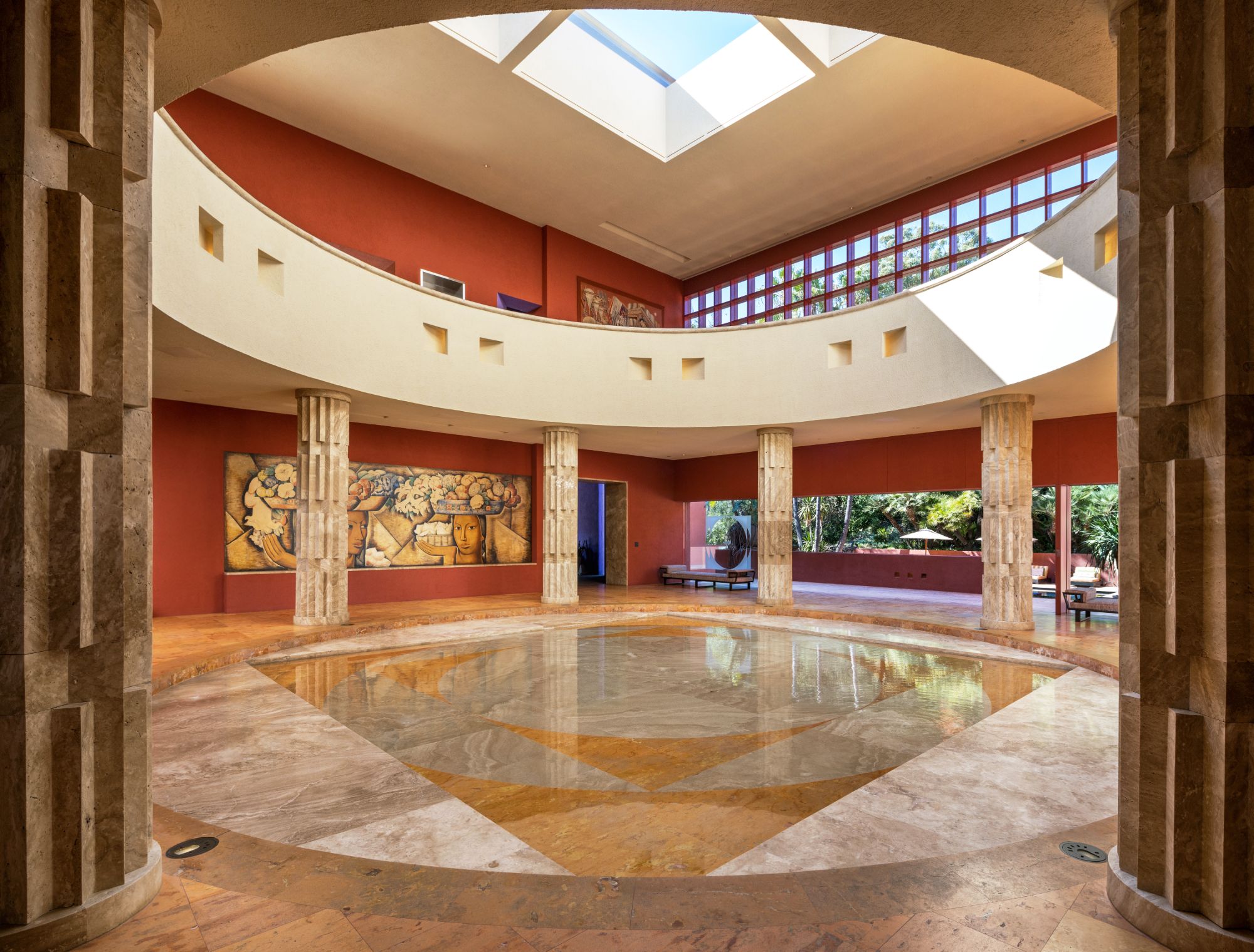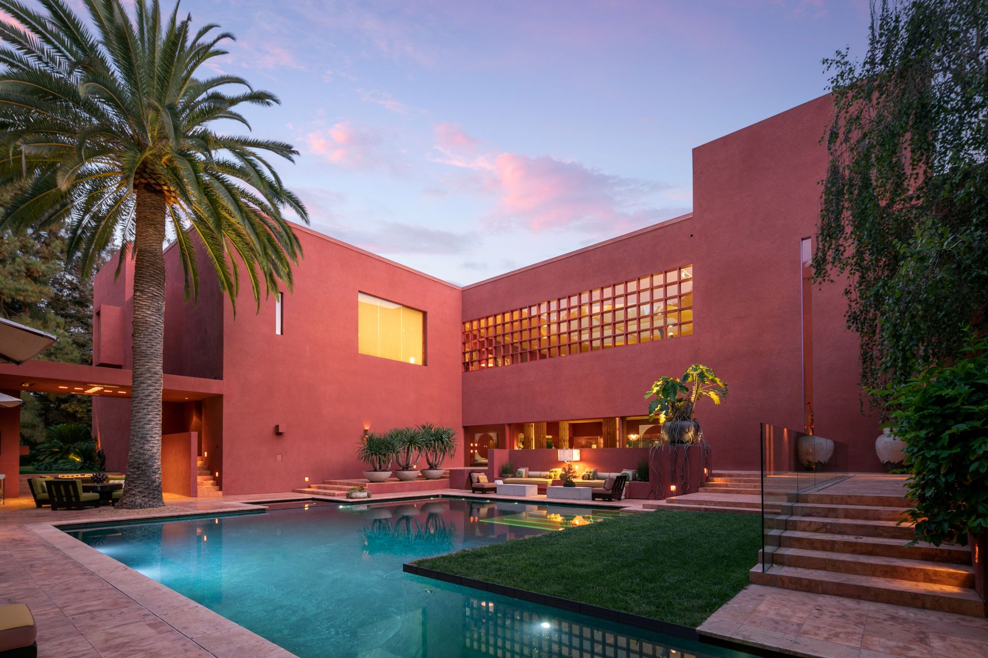 Nestled on 4.5+ acres of lush gardens in the guard-gated enclave of Brentwood Circle, this architectural masterpiece by Ricardo Legorreta offers true paradise with seamless indoor-outdoor living throughout. Private compound showcasing a large motor court, reflection pool with travertine columns and stunning atrium entrance. Multiple living rooms with high-ceilings, open formal dining room and gourmet kitchen with top-of-the-line appliances. Ideal for entertaining with large flat lawns, pool/spa, endless decks and outdoor heated dining. Dual primary suites with den, walk-in closets & marble bathrooms and 3 additional en suite bedrooms. Amenities include a library, office, fitness center, wet/dry sauna and one-of-a-kind movie theater.
