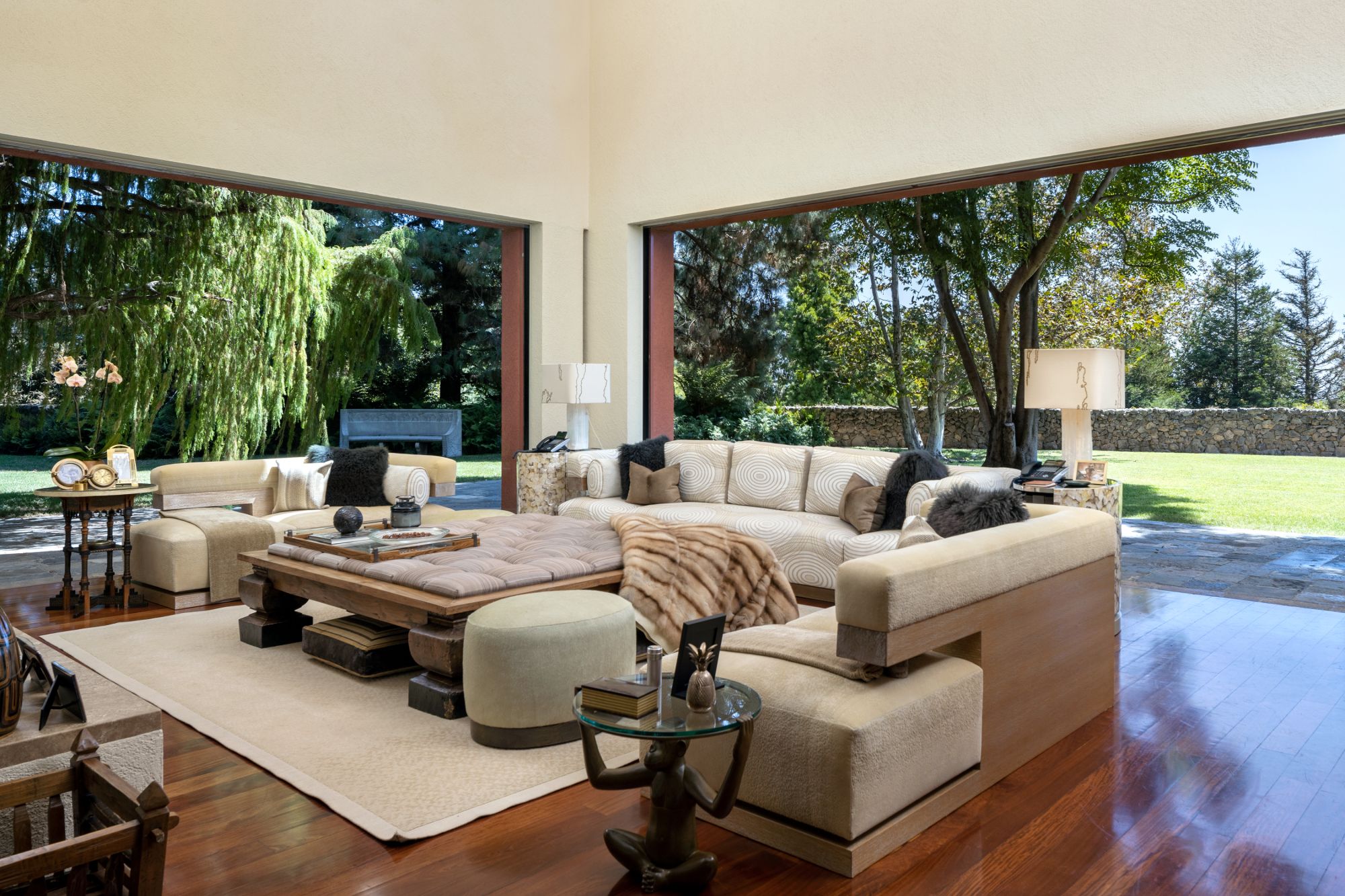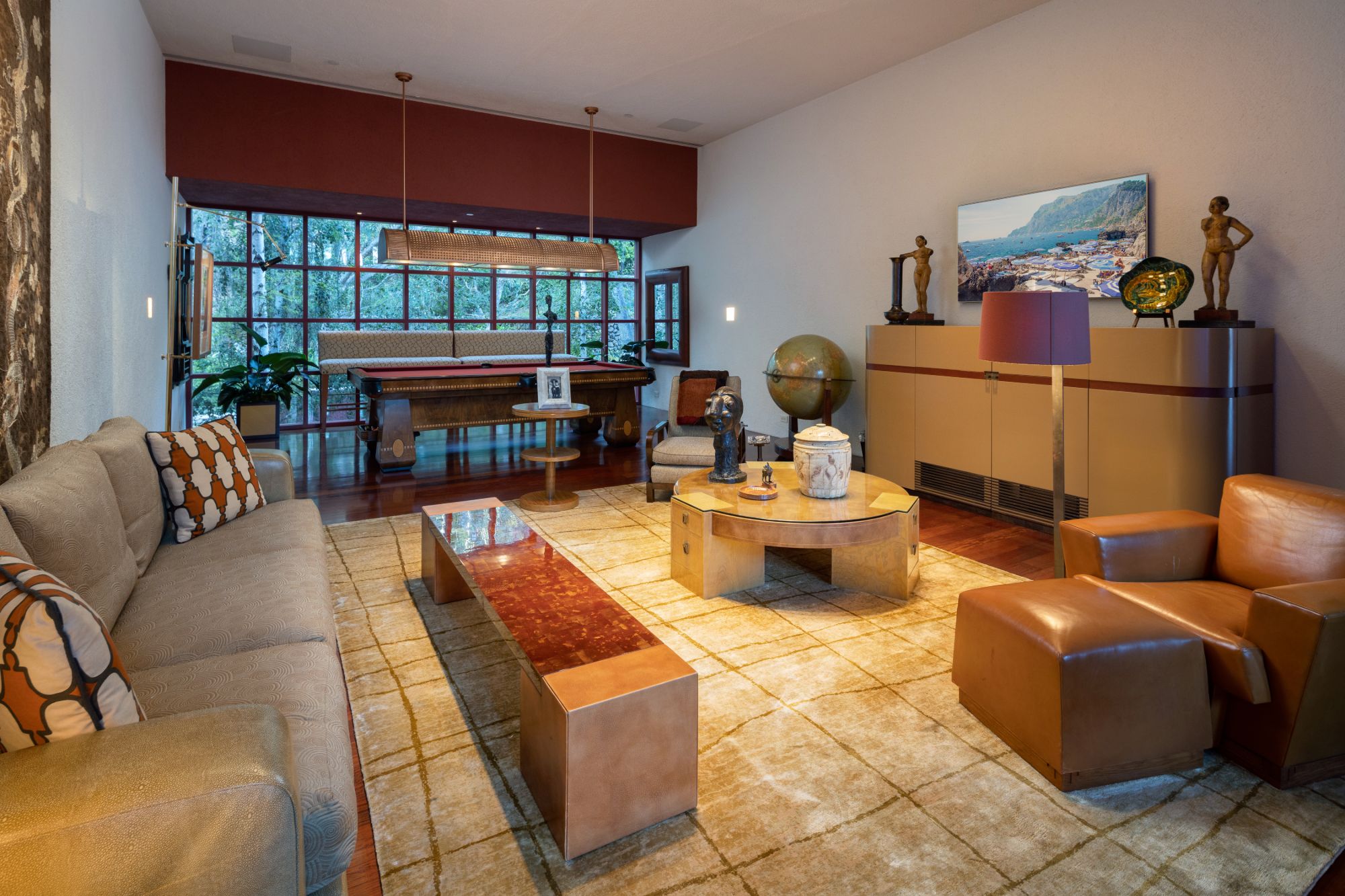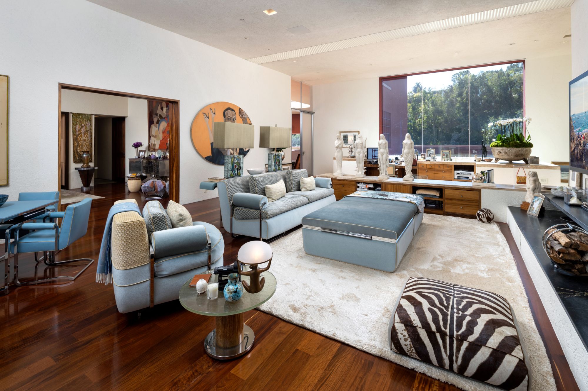 Nestled on 4.5+ acres of lush gardens in the guard-gated enclave of Brentwood Circle, this architectural masterpiece by Ricardo Legorreta offers true paradise with seamless indoor-outdoor living throughout. Private compound showcasing a large motor court, reflection pool with travertine columns and stunning atrium entrance. Multiple living rooms with high-ceilings, open formal dining room and gourmet kitchen with top-of-the-line appliances. Ideal for entertaining with large flat lawns, pool/spa, endless decks and outdoor heated dining. Dual primary suites with den, walk-in closets & marble bathrooms and 3 additional en suite bedrooms. Amenities include a library, office, fitness center, wet/dry sauna and one-of-a-kind movie theater.