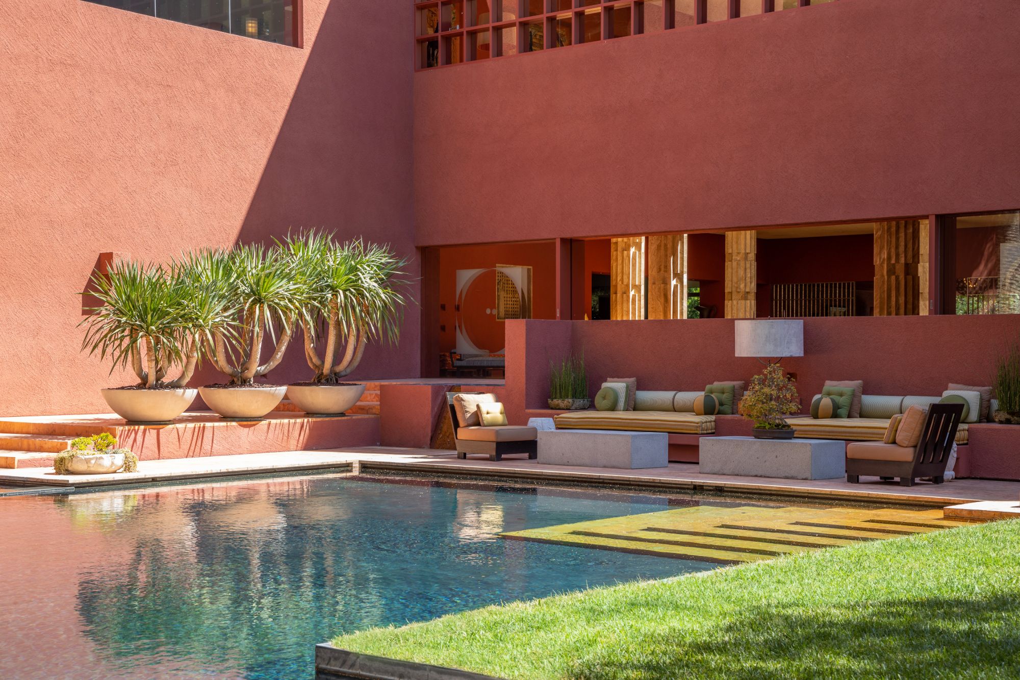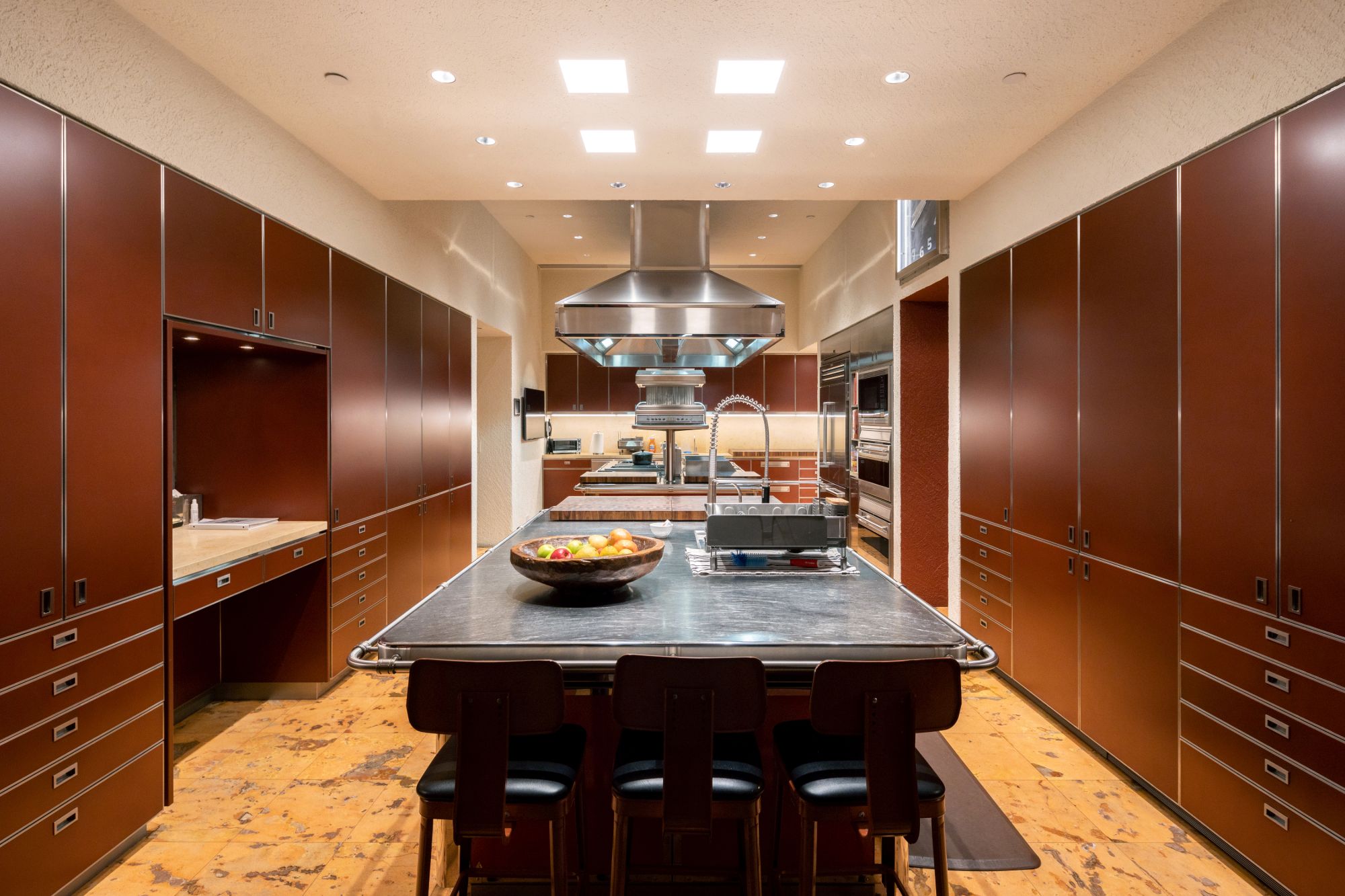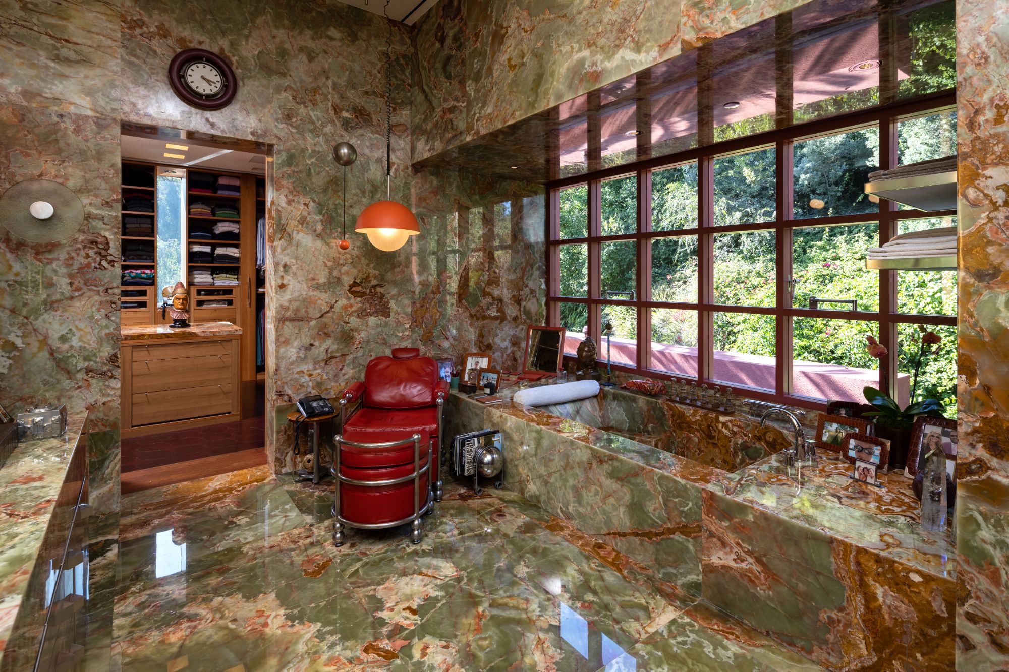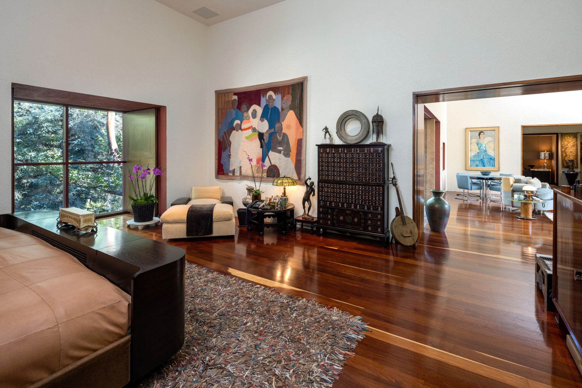 Nestled on 4.5+ acres of lush gardens in the guard-gated enclave of Brentwood Circle, this architectural masterpiece by Ricardo Legorreta offers true paradise with seamless indoor-outdoor living throughout. Private compound showcasing a large motor court, reflection pool with travertine columns and stunning atrium entrance. Multiple living rooms with high-ceilings, open formal dining room and gourmet kitchen with top-of-the-line appliances. Ideal for entertaining with large flat lawns, pool/spa, endless decks and outdoor heated dining. Dual primary suites with den, walk-in closets & marble bathrooms and 3 additional en suite bedrooms. Amenities include a library, office, fitness center, wet/dry sauna and one-of-a-kind movie theater.