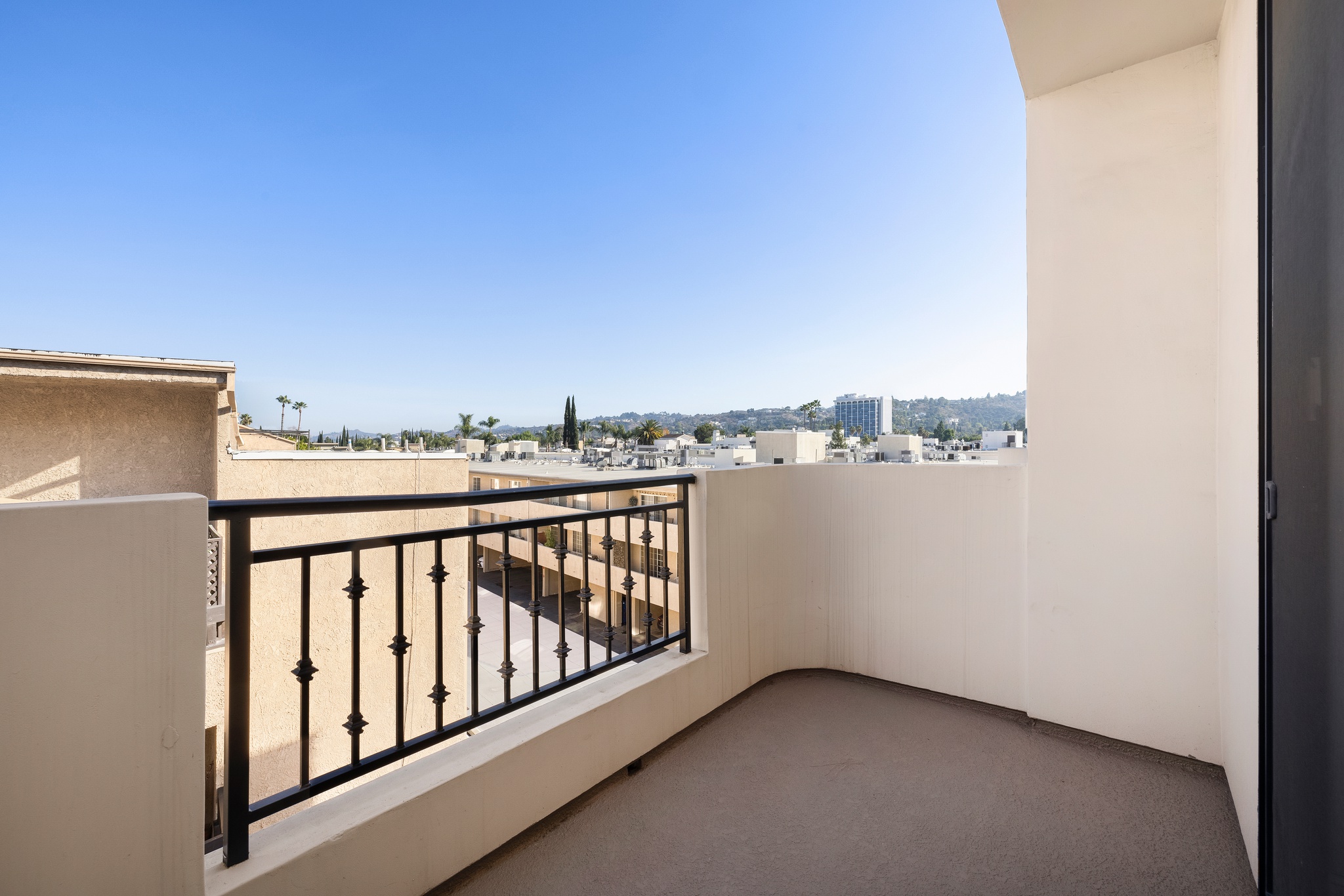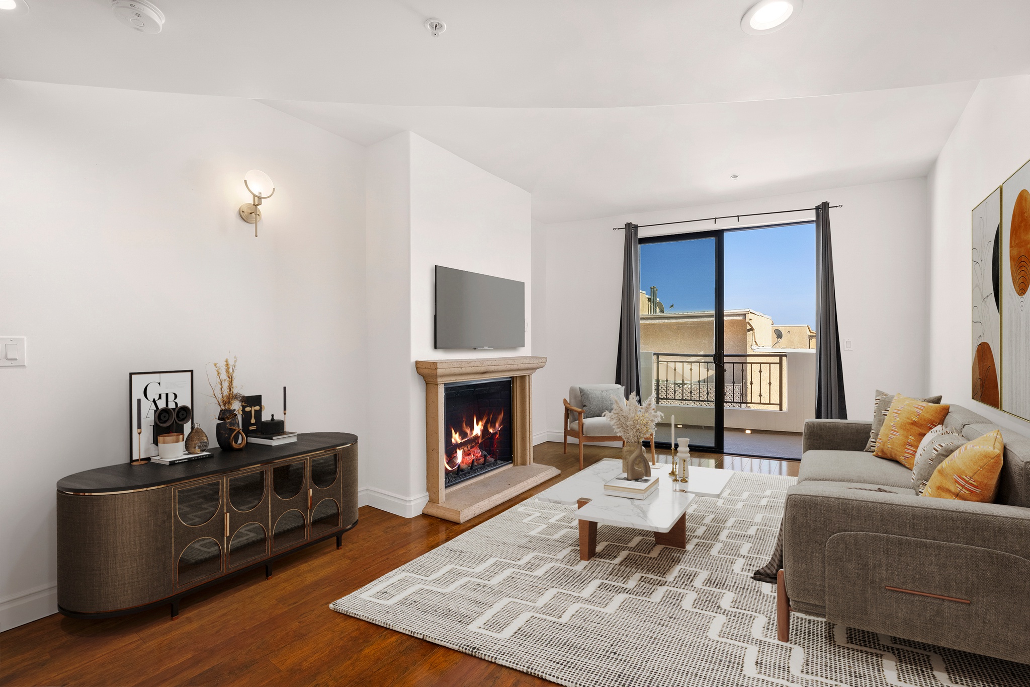 Experience the epitome of luxury living in this stunning penthouse at Villa Julietta. Built in 2009, this exceptional residence spans approximately 1,080 square feet and features a bright, open-concept layout designed for modern living.As you enter, you're welcomed by abundant natural light flowing through large windows, highlighting the elegant wood grain laminate flooring in the inviting living room. A cozy fireplace adds warmth and charm, while designer wall sconces create an atmosphere of sophistication.The gourmet kitchen is a culinary dream, equipped with top-of-the-line stainless steel appliances including a dishwasher, gas range, microwave, and refrigerator. The beautiful granite countertops and stylish tile backsplash perfectly complement the generous cabinet space, and the breakfast bar offers a convenient spot for casual meals. Retreat to the serene master suite, where the private bathroom features a sleek granite vanity and a spacious, glass-enclosed tiled shower. Step outside to enjoy your morning coffee or evening glass of wine on the charming balcony, accessible from the living area. Additional highlights include central heating and air conditioning, in-unit laundry, and an assigned parking space (#101), with the option to inquire about renting more through the HOA. Villa Julietta offers a wealth of amenities for your enjoyment: unwind in the community sauna, socialize in the recreation room, stay active in the gym, or relax in the outdoor lounge. Plus, with eight guest parking spaces and HOA coverage for earthquake insurance, you'll enjoy both convenience and peace of mind. Perfectly situated just steps away from the vibrant shopping, dining, and entertainment of Ventura Blvd. Don't miss the chance to make this luxurious penthouse your new home!