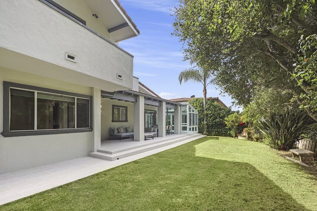 Located on the ridge of coveted Kenter Canyon just minutes from fine dining, shops and businesses in Brentwood, this four bedroom home is not one to miss! Anchored by a sophisticated stone fireplace, the vaulted ceiling living room showcases modern stone flooring and built-ins. The well-appointed chef's kitchen features an open dining area, barstools, plentiful counter and storage space, Viking and Miele appliances and windows throughout. Aa airy solarium offers a bonus space with endless possibilities overlooking the lush landscaping. Additionally, you will find a large bedroom with en-suite bathroom with outdoor access. The covered patio is ideal for outdoor dining and entertaining overlooking the grassy lawn, fruit-bearing trees and colorful landscaping. Upstairs the primary bedroom includes a spacious sitting room, two terraces with peaceful views, a built-in bed and plentiful closet space. The primary bath has dual sinks, abundant storage and a walk-in closet. Across the hall you will find two additional bedrooms with ample closet space and a hallway bathroom to share. Additional features include a full guest bathroom, laundry room, and attached two-car garage with plentiful storage. This bright and cheery modern home offers a fabulous lifestyle with open floor plan, indoor-outdoor living and a coveted neighborhood. Virtually staged.