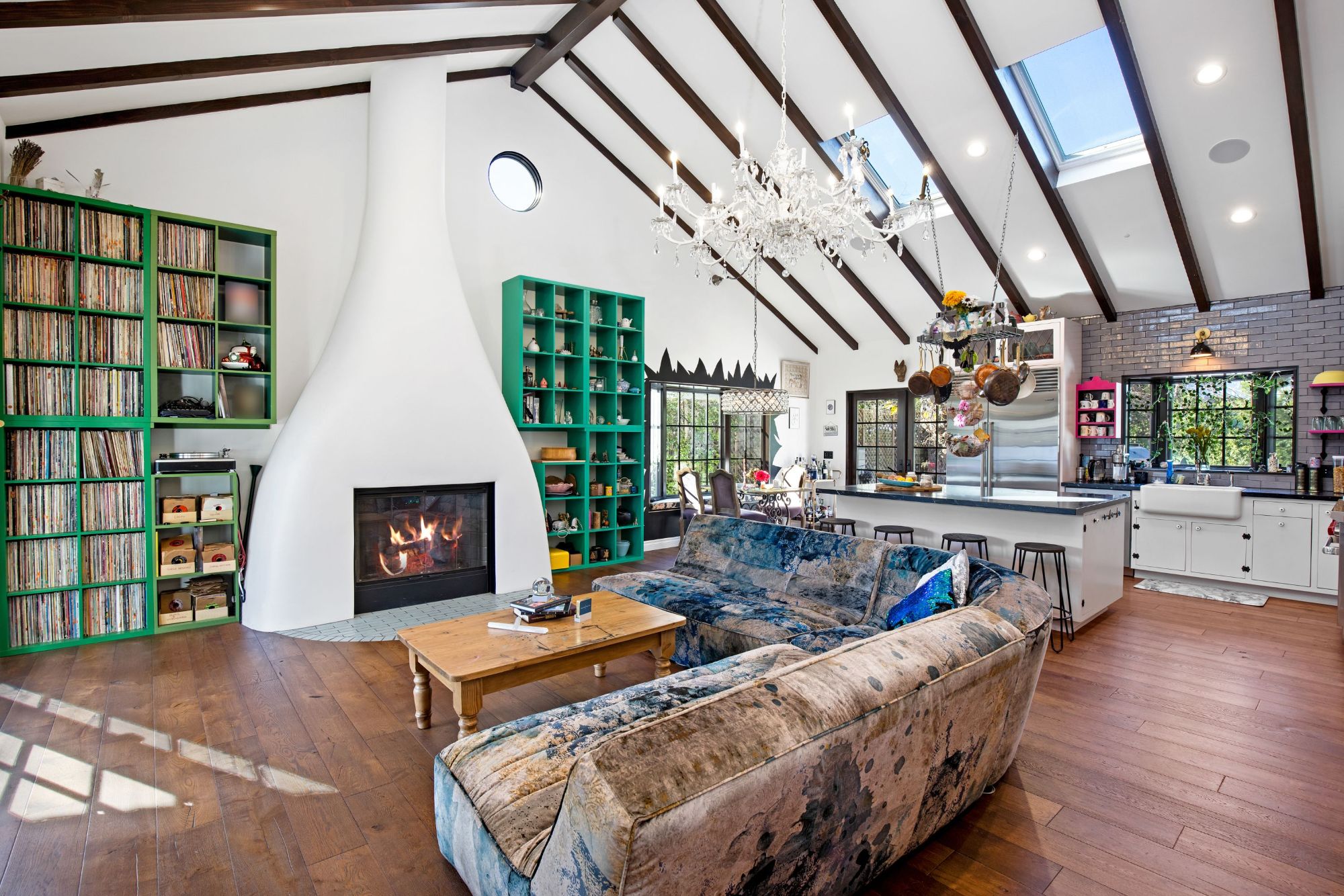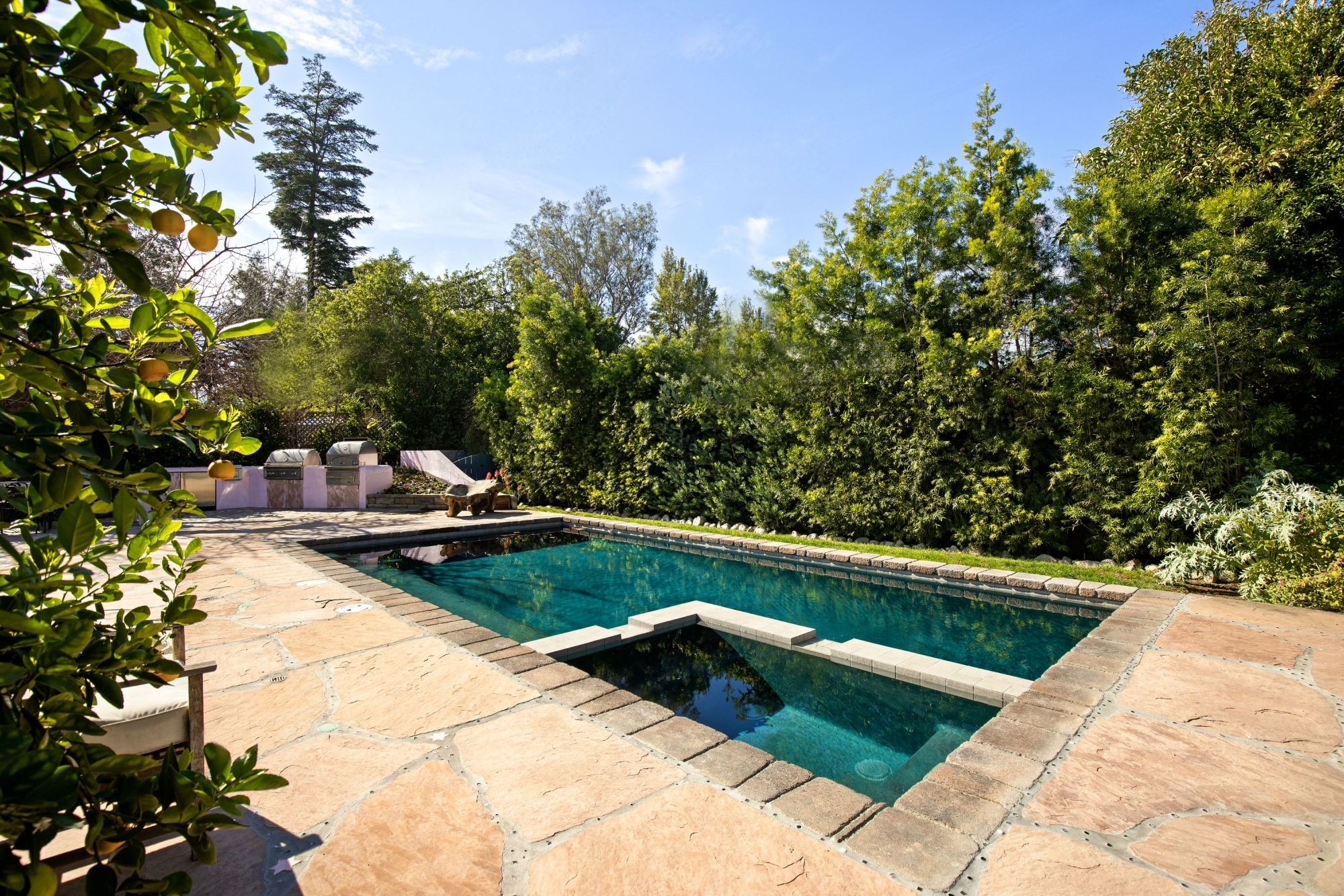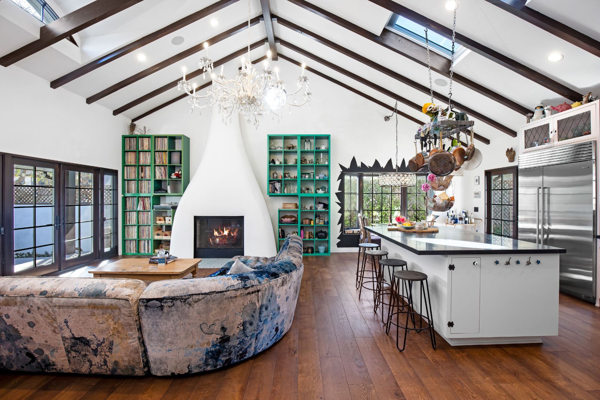 This architectural artist-designed home sits on a large 7,200 SQFT flat lot, set back on a quiet street in Toluca Woods. The front of the house has a large grass pad perfect for pets. As you enter the early 1900's reclaimed vintage door there's a covered porch. Entering the house greets you with double-height ceilings flooded with natural light coming in from the skylights and a spacious open floor plan. This house has it all, seamless indoor-outdoor living, a large saltwater pool, and jacuzzi, a full outdoor kitchen & dining perfect for entertaining, an outdoor shower, a beautiful mulberry tree, energy crystals set in the foundation, solar panels, and copper plumbing throughout. This house features wolf top-of-the-line appliances, an extra-large fireplace, 3 bedrooms 3 baths, and a bonus art loft. The oversized master features a walk-in closet and star-studded bathroom & a large bathtub. The whole house is on a water filtration system, everything has been fully thought out and the construction was done for an owner end user so the quality is second to none. If you are looking for a done newer house in one of the best locations in the valley you found it.