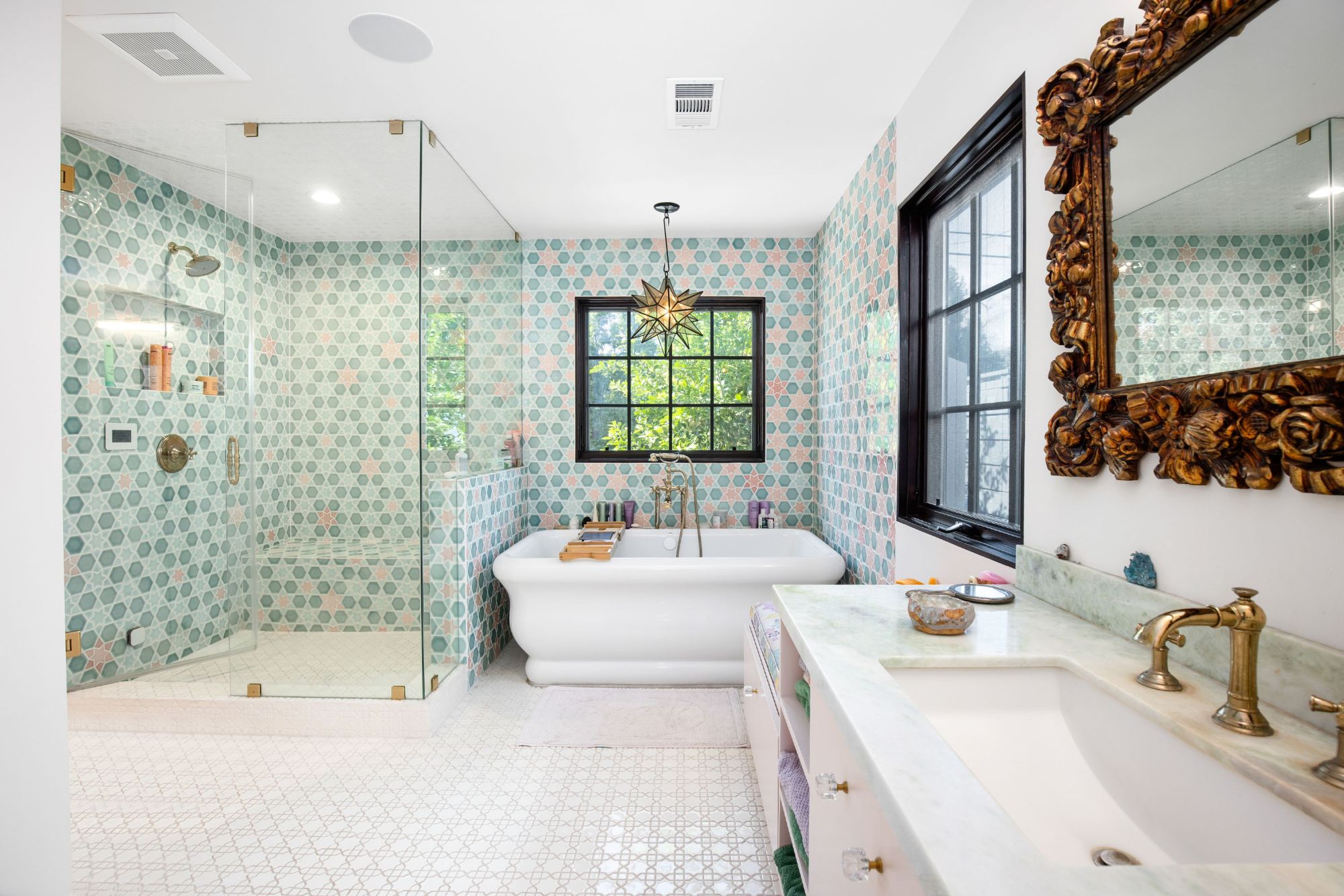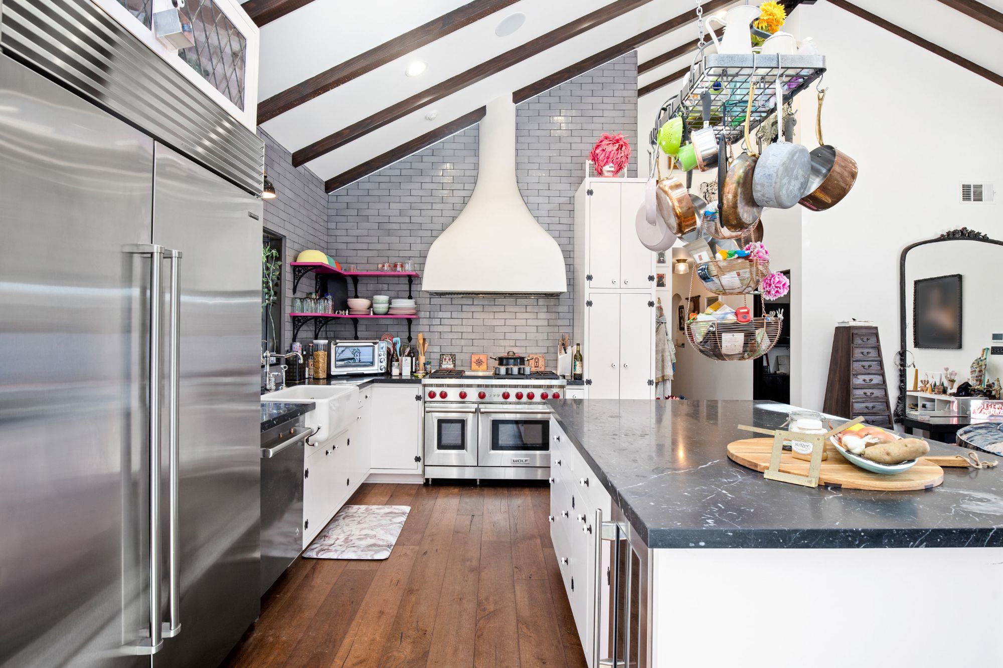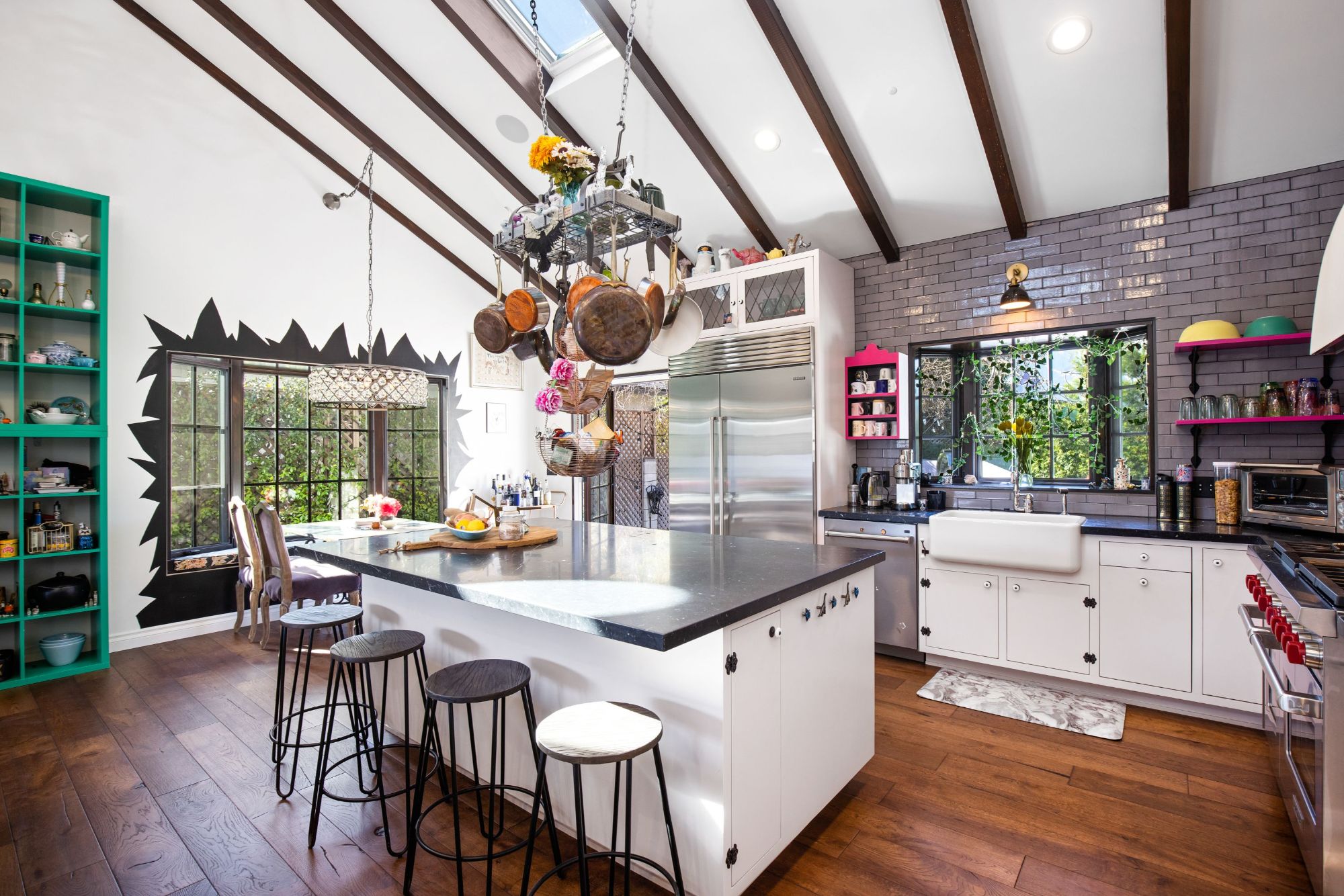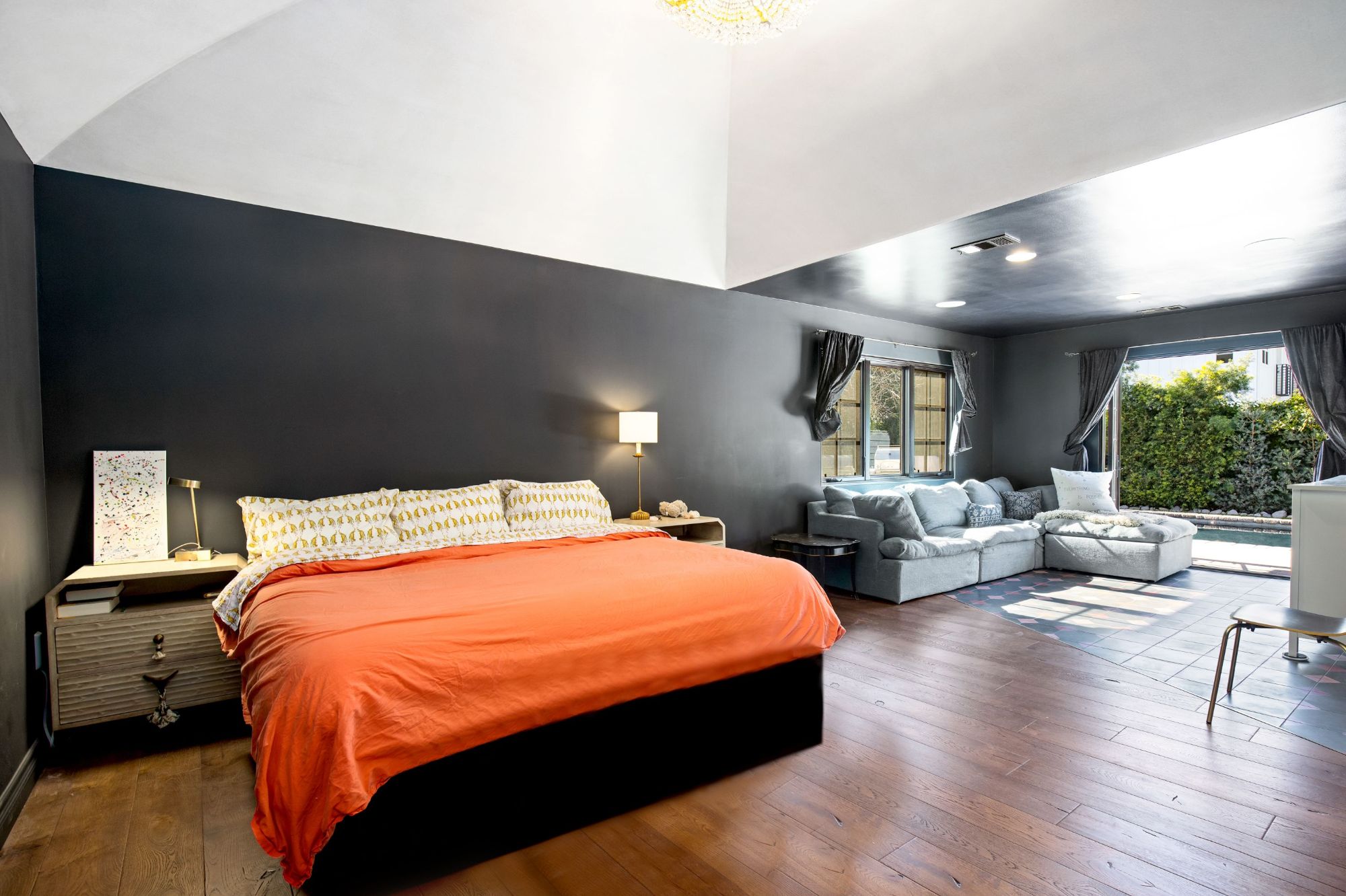 This architectural artist-designed home sits on a large 7,200 SQFT flat lot, set back on a quiet street in Toluca Woods. The front of the house has a large grass pad perfect for pets. As you enter the early 1900's reclaimed vintage door there's a covered porch. Entering the house greets you with double-height ceilings flooded with natural light coming in from the skylights and a spacious open floor plan. This house has it all, seamless indoor-outdoor living, a large saltwater pool, and jacuzzi, a full outdoor kitchen & dining perfect for entertaining, an outdoor shower, a beautiful mulberry tree, energy crystals set in the foundation, solar panels, and copper plumbing throughout. This house features wolf top-of-the-line appliances, an extra-large fireplace, 3 bedrooms 3 baths, and a bonus art loft. The oversized master features a walk-in closet and star-studded bathroom & a large bathtub. The whole house is on a water filtration system, everything has been fully thought out and the construction was done for an owner end user so the quality is second to none. If you are looking for a done newer house in one of the best locations in the valley you found it.