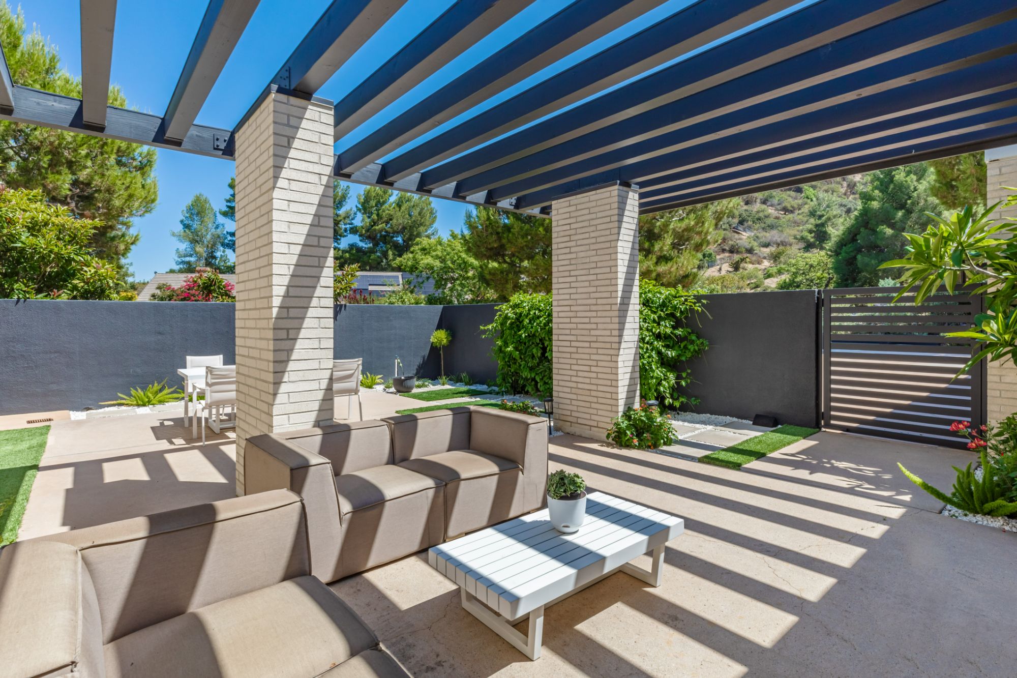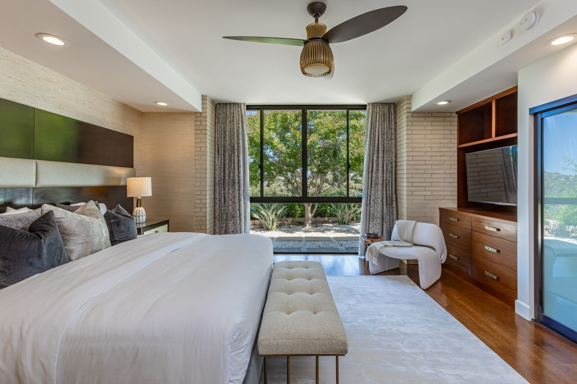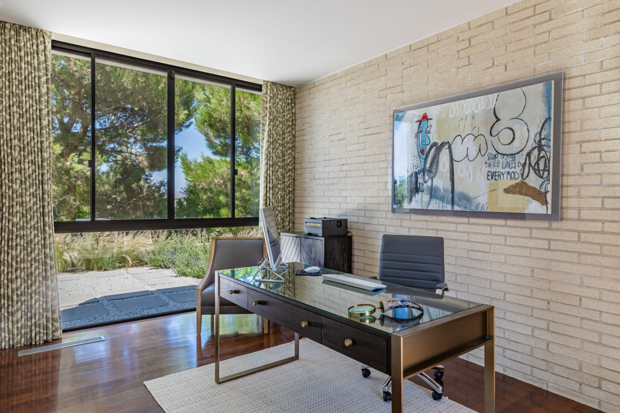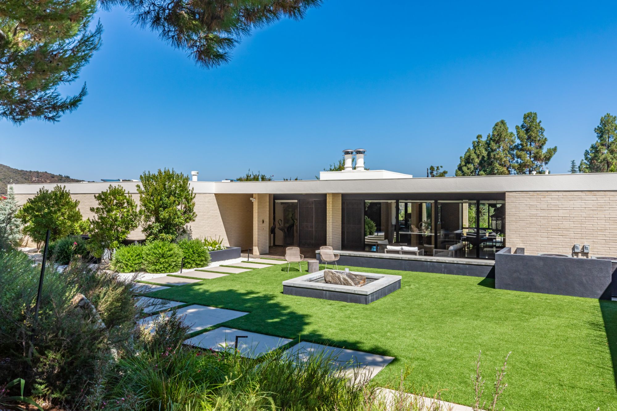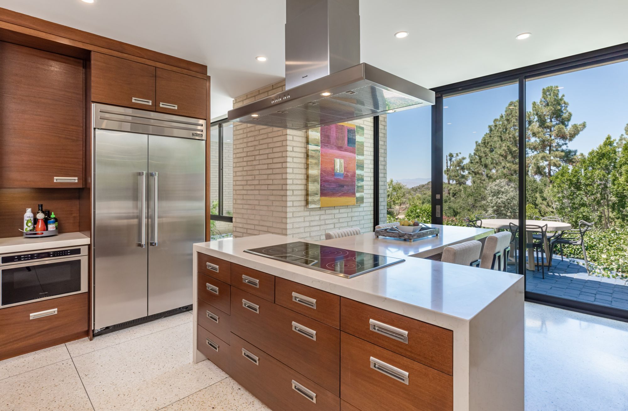 Welcome to Oak Creek Residence, a true masterpiece of Mid-Century Modern design nestled within the prestigious gated enclave of Los Robles Hills Estates. This exquisite home, meticulously crafted by the renowned Architect Clemens Kaasmann, A.I.A., stands as a testament to modern sophistication and enduring architectural excellence. Kaasmann worked closely with the famed John Lautner and Los Robles Hills Estates is notable to architectural purists as the location of Case Study House #28 by Buff and Hensman. Elegantly situated on a single level, this bespoke residence boasts four bedrooms and three and a half bathrooms, offering a seamless blend of contemporary luxury and timeless sophistication. The interior spaces flow effortlessly, showcasing meticulous attention to detail and a commitment to quality that is truly unparalleled. From the moment you step through the front door, you are enveloped by an ambiance of refinement and elegance. Spanning 5,774 sq ft on a 1.20-acre panoramic view lot, this residence embraces the indoor-outdoor California lifestyle. Impeccable features include terrazzo floors, Chicago Brick, floor-to-ceiling windows, and Fleetwood sliding doors. Primary suite includes a heated wet-room spa with a three person infrared sauna and jacuzzi that also serves as a cold plunge all adjacent to a large walk-in shower. Bathed in natural light, the living spaces are adorned with architectural nuances that capture the essence of Mid-Century Modern design. Expansive windows frame panoramic vistas that stretch across the landscape, inviting the outdoors in and creating a harmonious connection with the surroundings. The open-concept layout encourages fluid movement between the living, dining, and culinary areas, making it ideal for both relaxed living and elegant entertaining. Outside, the meticulously landscaped grounds extend the living experience, providing a sanctuary of serenity and tranquility. The residence is gracefully perched on a sprawling 1.2 acre lot within one of the most prestigious gated communities - a haven of privacy and exclusivity, boasting only twenty-eight custom-built homes. Immerse yourself in the allure of this private community, where luxury living meets natural beauty. Experience a lifestyle of convenience and sophistication of Thousand Oaks, with premier dining, upscale shopping, and captivating entertainment just moments away. Nearby parks and hiking trails offer opportunities for outdoor exploration, while the proximity to Westlake Village, Malibu, and the esteemed Los Robles Hospital enhances the convenience of daily life. The Oak Creek Residence has only had two owners and stands as a testament to the meticulous craftsmanship and refined taste of its architect and owners, who have cherished this remarkable property for half a century. Now, it is your turn to embrace the legacy of this extraordinary home, one that harmoniously marries modern aesthetics with timeless elegance. Seize the opportunity to own a residence that transcends the ordinary, where every corner reflects an unwavering commitment to luxury living. Come and discover the pinnacle of sophisticated living and embrace the exclusivity of Los Robles Hills Estates, a gated community of 28 custom-built homes on minimum one-acre lots.