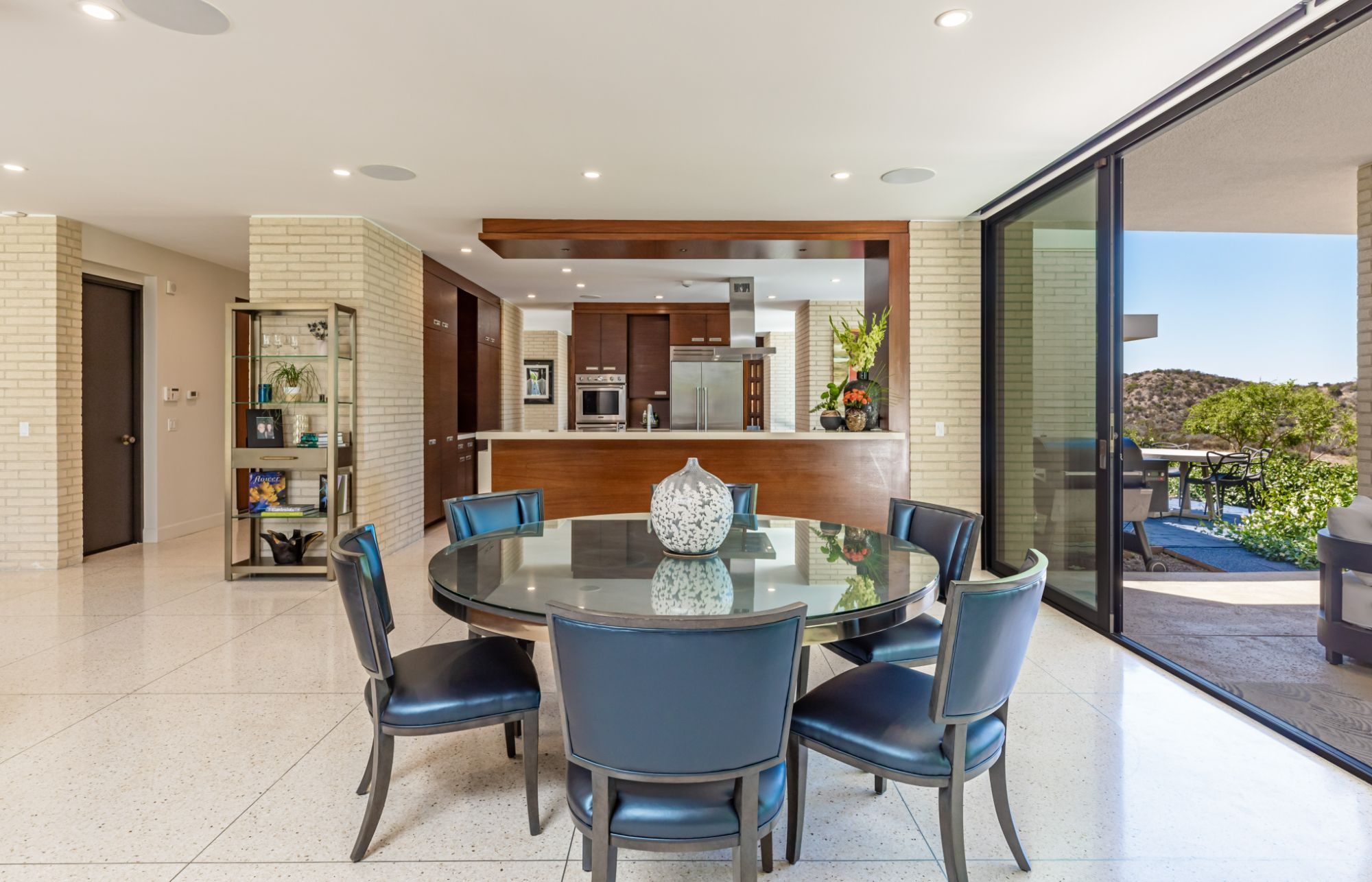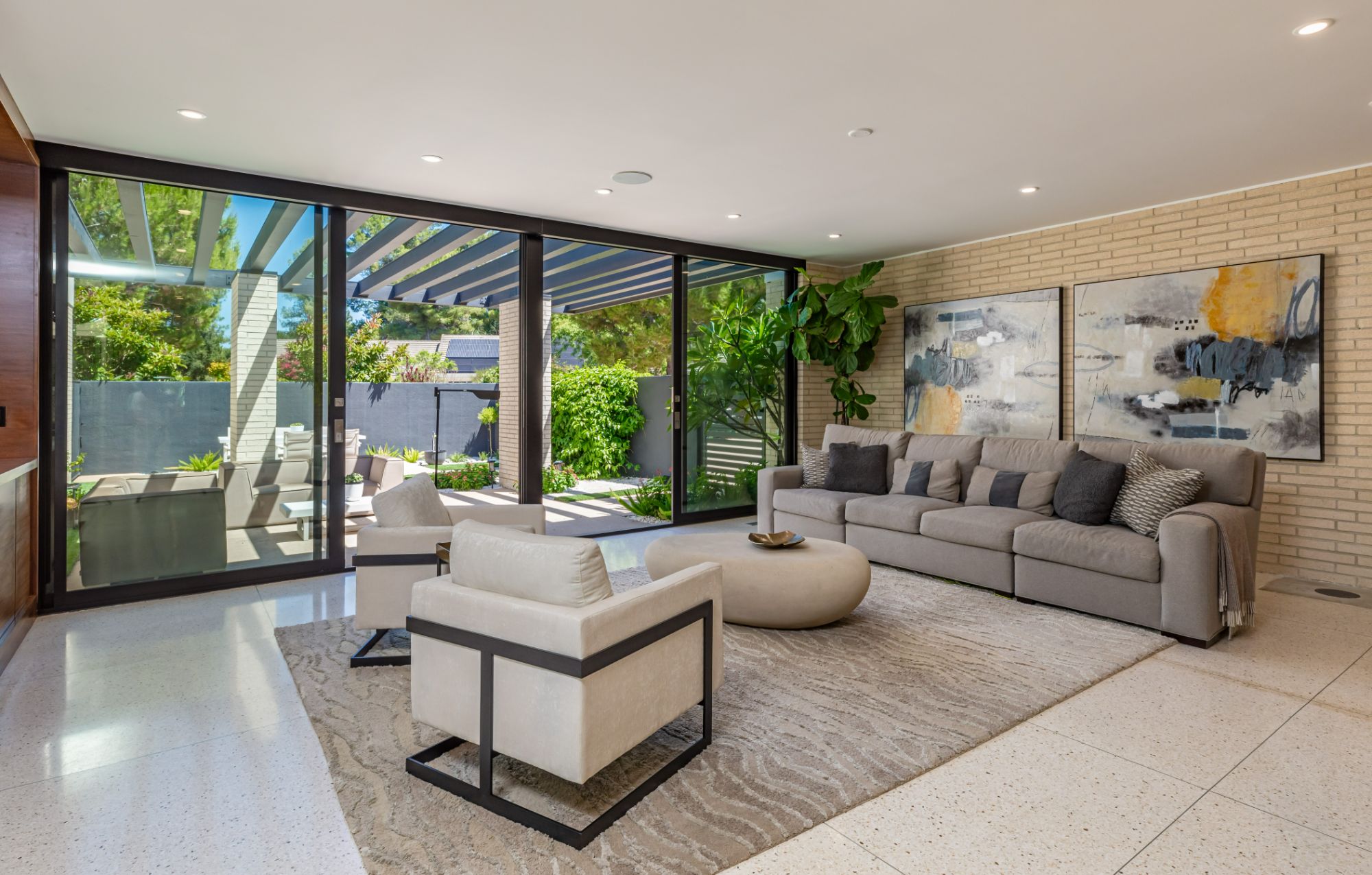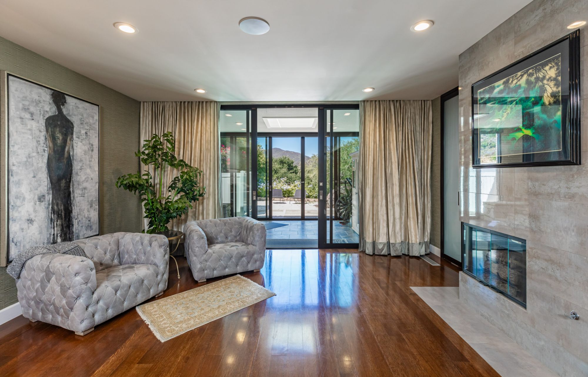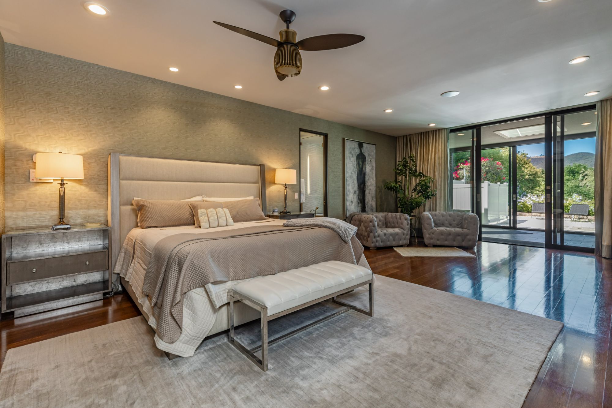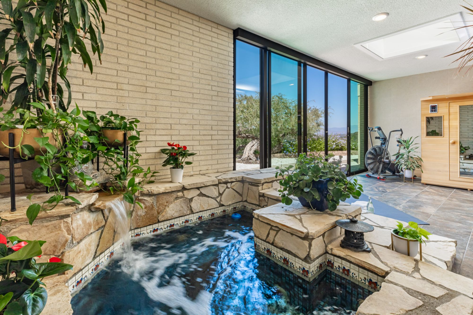 Welcome to Oak Creek Residence, a true masterpiece of Mid-Century Modern design nestled within the prestigious gated enclave of Los Robles Hills Estates. This exquisite home, meticulously crafted by the renowned Architect Clemens Kaasmann, A.I.A., stands as a testament to modern sophistication and enduring architectural excellence. Kaasmann worked closely with the famed John Lautner and Los Robles Hills Estates is notable to architectural purists as the location of Case Study House #28 by Buff and Hensman. Elegantly situated on a single level, this bespoke residence boasts four bedrooms and three and a half bathrooms, offering a seamless blend of contemporary luxury and timeless sophistication. The interior spaces flow effortlessly, showcasing meticulous attention to detail and a commitment to quality that is truly unparalleled. From the moment you step through the front door, you are enveloped by an ambiance of refinement and elegance. Spanning 5,774 sq ft on a 1.20-acre panoramic view lot, this residence embraces the indoor-outdoor California lifestyle. Impeccable features include terrazzo floors, Chicago Brick, floor-to-ceiling windows, and Fleetwood sliding doors. Primary suite includes a heated wet-room spa with a three person infrared sauna and jacuzzi that also serves as a cold plunge all adjacent to a large walk-in shower. Bathed in natural light, the living spaces are adorned with architectural nuances that capture the essence of Mid-Century Modern design. Expansive windows frame panoramic vistas that stretch across the landscape, inviting the outdoors in and creating a harmonious connection with the surroundings. The open-concept layout encourages fluid movement between the living, dining, and culinary areas, making it ideal for both relaxed living and elegant entertaining. Outside, the meticulously landscaped grounds extend the living experience, providing a sanctuary of serenity and tranquility. The residence is gracefully perched on a sprawling 1.2 acre lot within one of the most prestigious gated communities - a haven of privacy and exclusivity, boasting only twenty-eight custom-built homes. Immerse yourself in the allure of this private community, where luxury living meets natural beauty. Experience a lifestyle of convenience and sophistication of Thousand Oaks, with premier dining, upscale shopping, and captivating entertainment just moments away. Nearby parks and hiking trails offer opportunities for outdoor exploration, while the proximity to Westlake Village, Malibu, and the esteemed Los Robles Hospital enhances the convenience of daily life. The Oak Creek Residence has only had two owners and stands as a testament to the meticulous craftsmanship and refined taste of its architect and owners, who have cherished this remarkable property for half a century. Now, it is your turn to embrace the legacy of this extraordinary home, one that harmoniously marries modern aesthetics with timeless elegance. Seize the opportunity to own a residence that transcends the ordinary, where every corner reflects an unwavering commitment to luxury living. Come and discover the pinnacle of sophisticated living and embrace the exclusivity of Los Robles Hills Estates, a gated community of 28 custom-built homes on minimum one-acre lots.