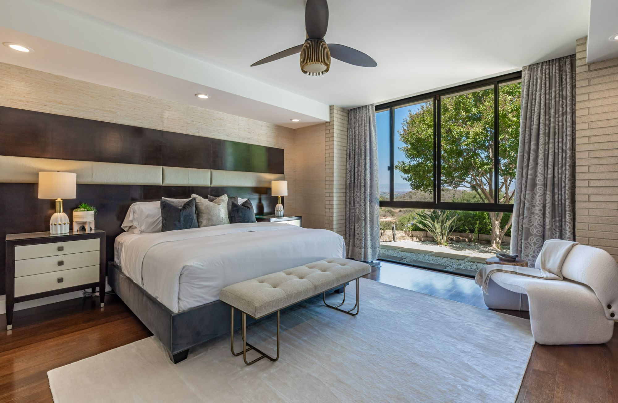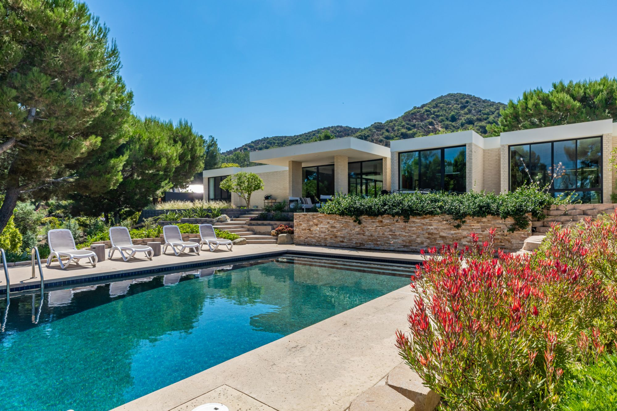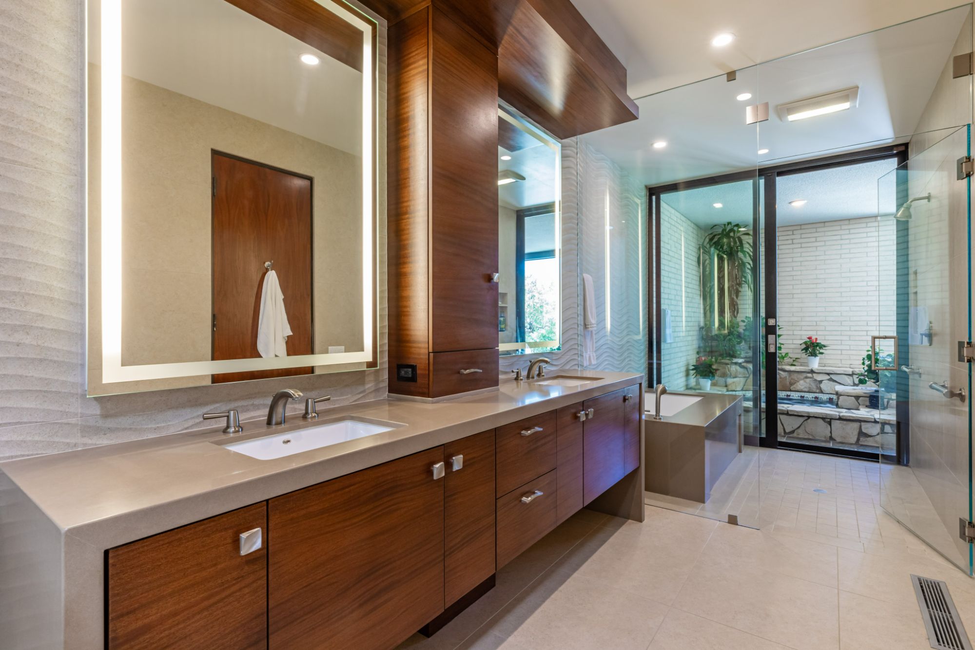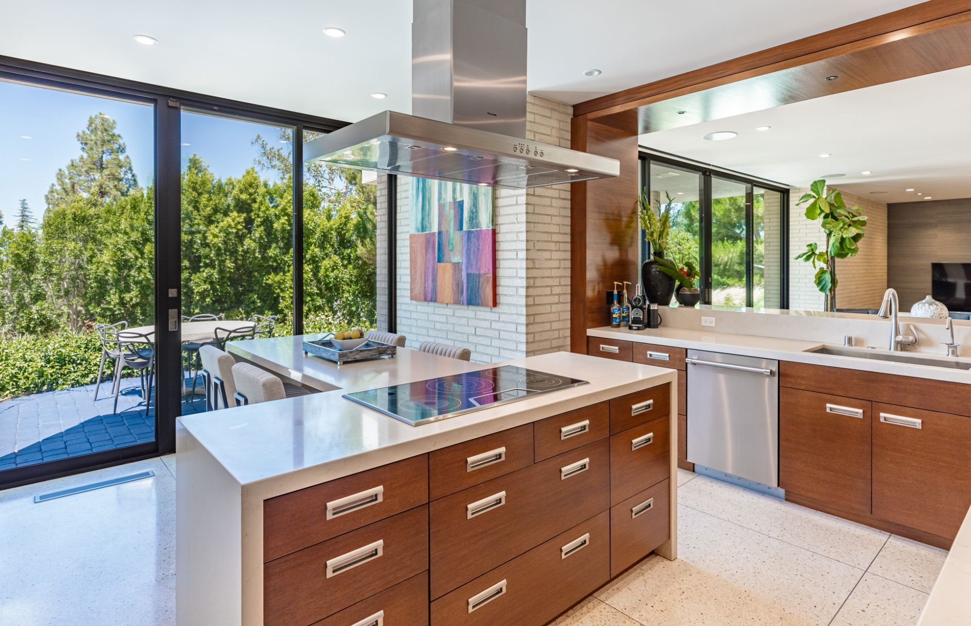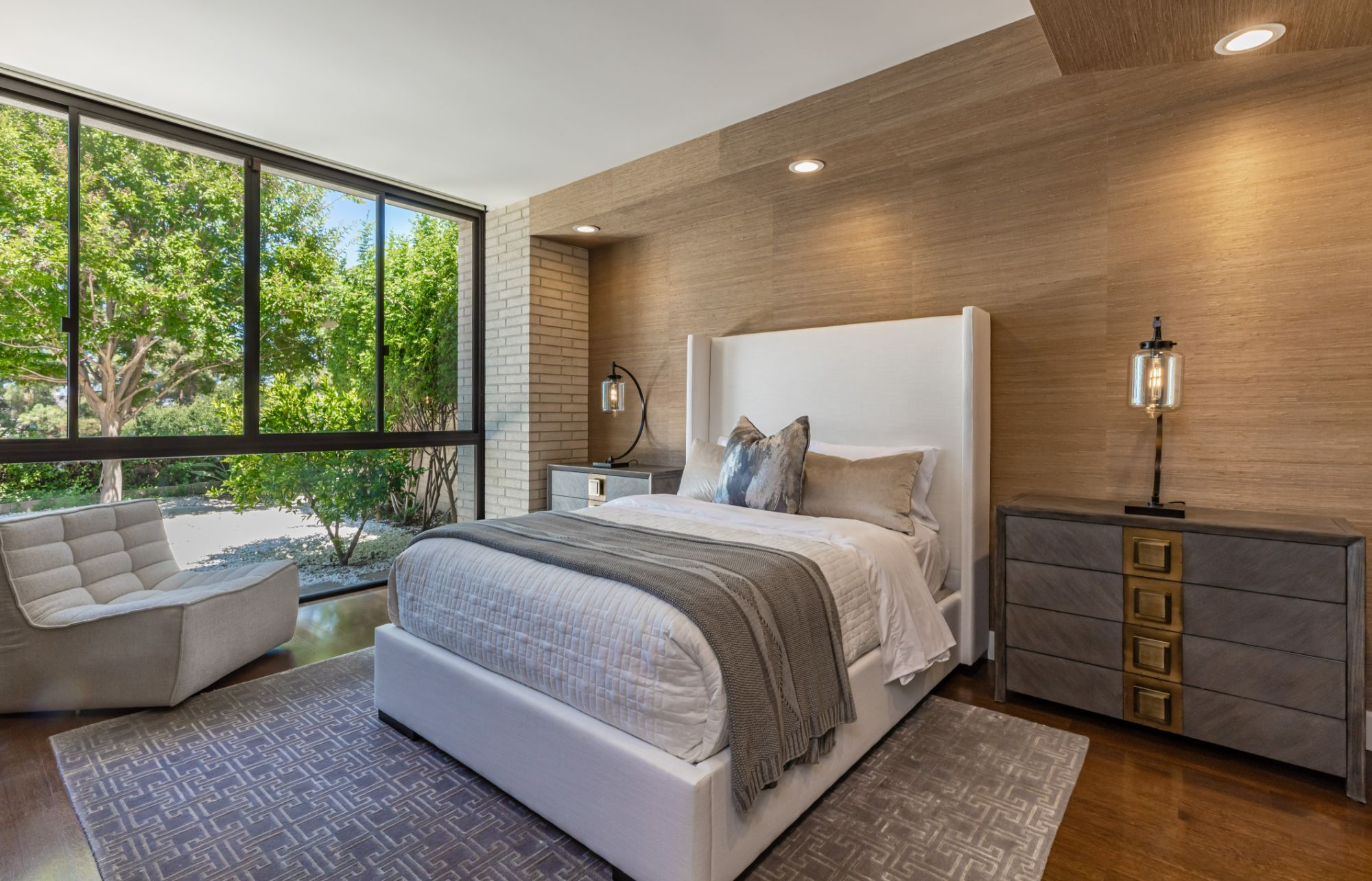 Welcome to Oak Creek Residence, a true masterpiece of Mid-Century Modern design nestled within the prestigious gated enclave of Los Robles Hills Estates. This exquisite home, meticulously crafted by the renowned Architect Clemens Kaasmann, A.I.A., stands as a testament to modern sophistication and enduring architectural excellence. Kaasmann worked closely with the famed John Lautner and Los Robles Hills Estates is notable to architectural purists as the location of Case Study House #28 by Buff and Hensman. Elegantly situated on a single level, this bespoke residence boasts four bedrooms and three and a half bathrooms, offering a seamless blend of contemporary luxury and timeless sophistication. The interior spaces flow effortlessly, showcasing meticulous attention to detail and a commitment to quality that is truly unparalleled. From the moment you step through the front door, you are enveloped by an ambiance of refinement and elegance. Spanning 5,774 sq ft on a 1.20-acre panoramic view lot, this residence embraces the indoor-outdoor California lifestyle. Impeccable features include terrazzo floors, Chicago Brick, floor-to-ceiling windows, and Fleetwood sliding doors. Primary suite includes a heated wet-room spa with a three person infrared sauna and jacuzzi that also serves as a cold plunge all adjacent to a large walk-in shower. Bathed in natural light, the living spaces are adorned with architectural nuances that capture the essence of Mid-Century Modern design. Expansive windows frame panoramic vistas that stretch across the landscape, inviting the outdoors in and creating a harmonious connection with the surroundings. The open-concept layout encourages fluid movement between the living, dining, and culinary areas, making it ideal for both relaxed living and elegant entertaining. Outside, the meticulously landscaped grounds extend the living experience, providing a sanctuary of serenity and tranquility. The residence is gracefully perched on a sprawling 1.2 acre lot within one of the most prestigious gated communities - a haven of privacy and exclusivity, boasting only twenty-eight custom-built homes. Immerse yourself in the allure of this private community, where luxury living meets natural beauty. Experience a lifestyle of convenience and sophistication of Thousand Oaks, with premier dining, upscale shopping, and captivating entertainment just moments away. Nearby parks and hiking trails offer opportunities for outdoor exploration, while the proximity to Westlake Village, Malibu, and the esteemed Los Robles Hospital enhances the convenience of daily life. The Oak Creek Residence has only had two owners and stands as a testament to the meticulous craftsmanship and refined taste of its architect and owners, who have cherished this remarkable property for half a century. Now, it is your turn to embrace the legacy of this extraordinary home, one that harmoniously marries modern aesthetics with timeless elegance. Seize the opportunity to own a residence that transcends the ordinary, where every corner reflects an unwavering commitment to luxury living. Come and discover the pinnacle of sophisticated living and embrace the exclusivity of Los Robles Hills Estates, a gated community of 28 custom-built homes on minimum one-acre lots.