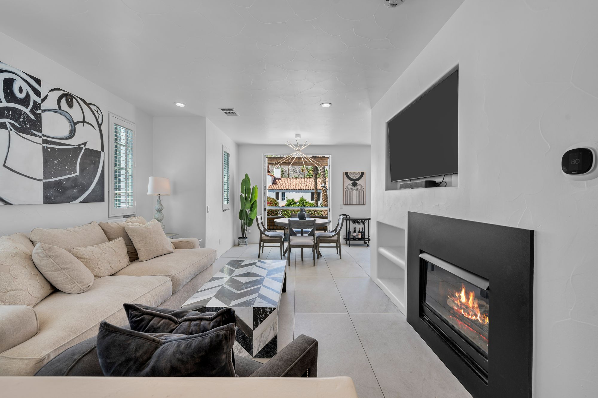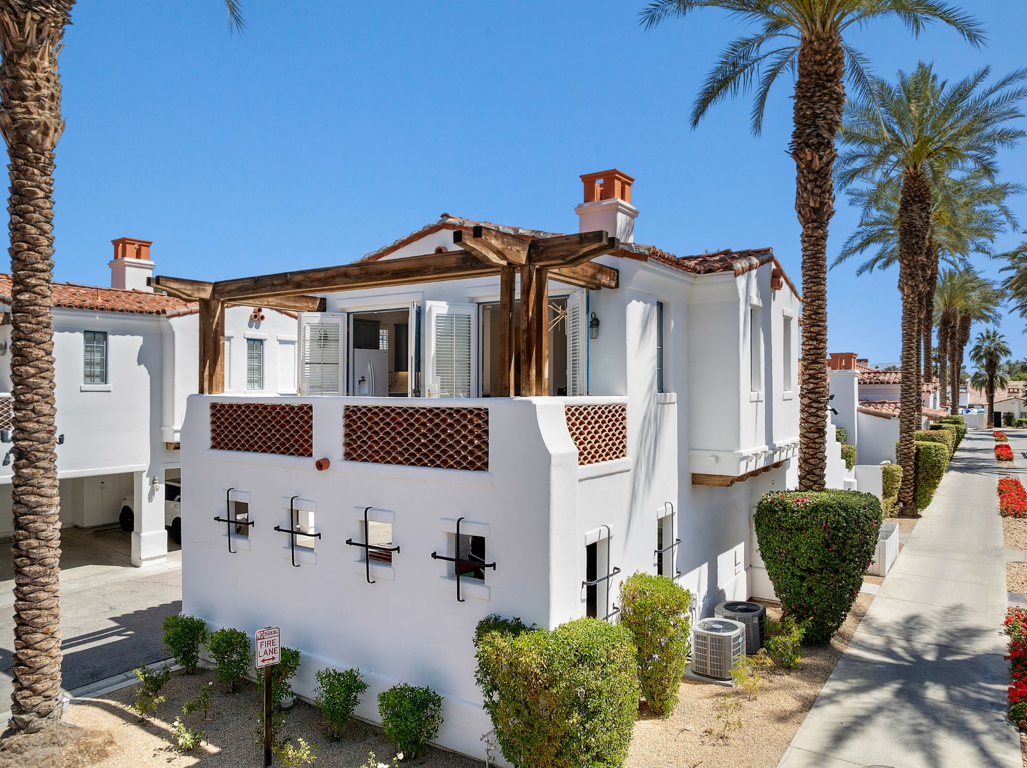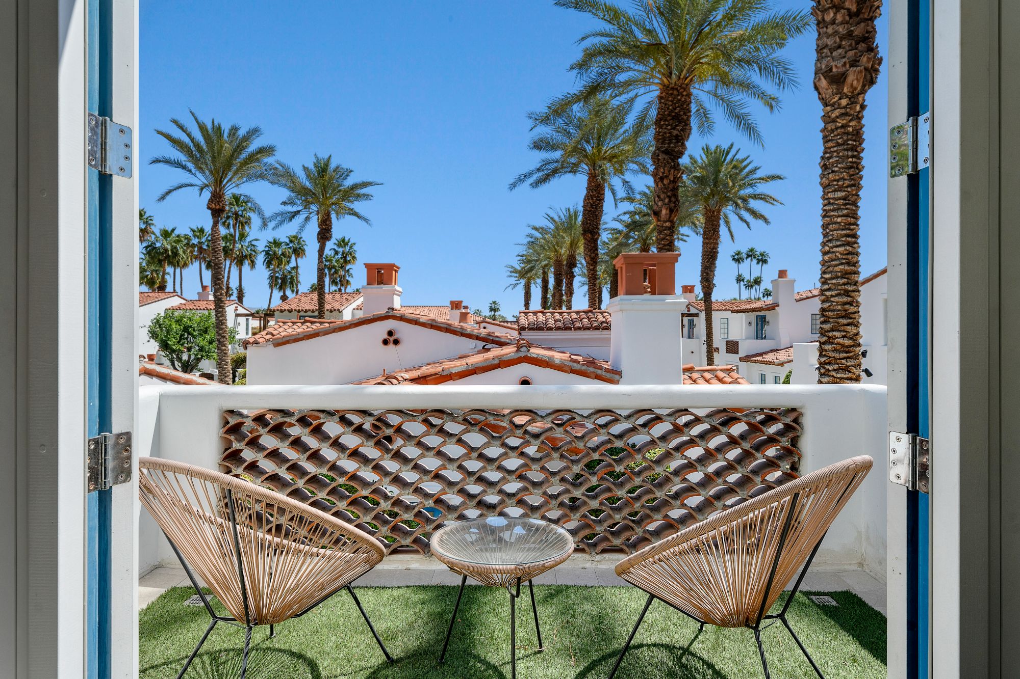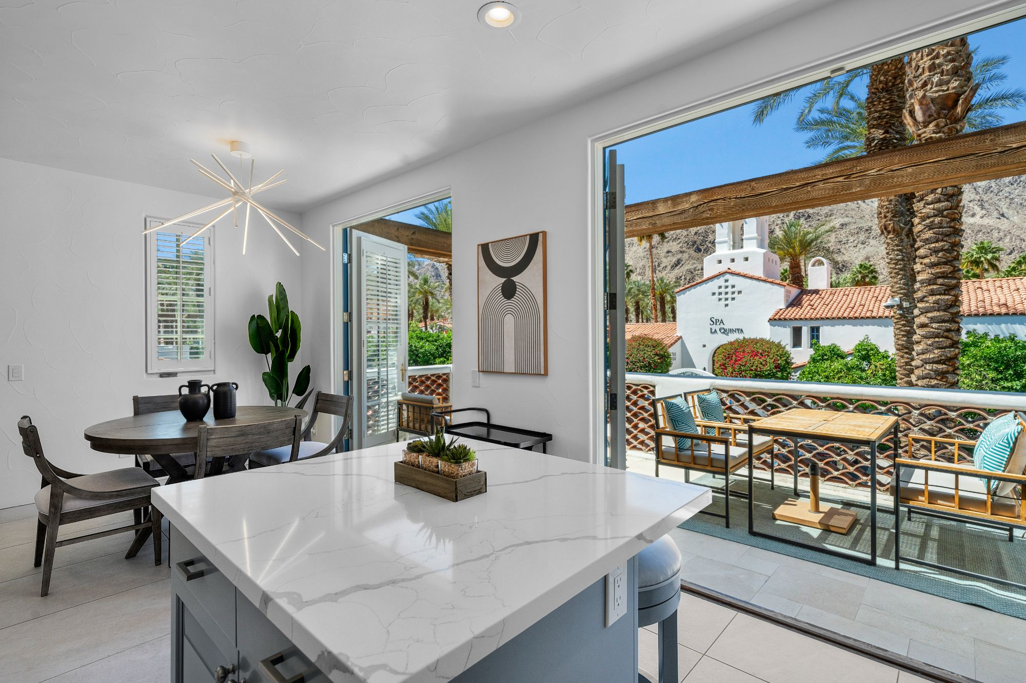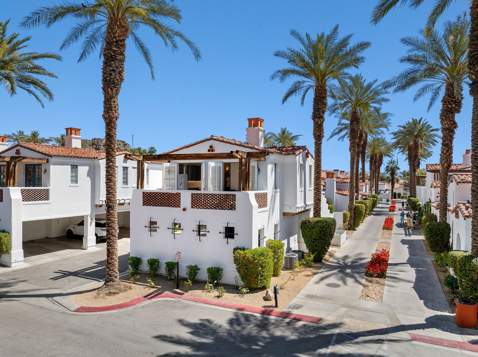 Welcome to upscale resort living in this fully remodeled, nearly 1,000 sq ft turnkey furnished casita at the world-renowned La Quinta Resort in Palm Springs. Rarely available and ideally located directly across from the spa and tennis courts, this spacious 1-bedroom, 2-full-bath home sleeps up to 4 guests and offers the ultimate blend of luxury, comfort, and lifestyle. Step inside to a thoughtfully upgraded interior featuring designer furnishings, slab-finish bathrooms with TOTO toilets, a cozy fireplace, and new appliances. The living area includes a queen-size pull-out couch, while the spacious bedroom provides a serene escape with its own private balcony and en-suite bath. With two separate entrances, it's ideal for hosting guests or generating rental income. Enjoy two private balconies-- one facing the spa and tennis courts, and another off the bedroom for quiet moments with coffee or cocktails. A private washer and dryer with secured access is located downstairs for convenience. Beyond the resort, you're minutes from the excitement of Coachella and Stagecoach, and a short drive to Nobu at Indian Wells, the upscale shopping and dining of El Paseo, and some of the finest golf courses and spas in the desert. Residents also enjoy access to on-site community golf, tennis, pools, resort dining, and boutique shopping all within walking distance. There is a $958.10 monthly Easement Fee, which covers the maintenance of spa villa pools, spas, and courtyards as well as cable, WiFi, and trash removal. As an added bonus, owners enjoy a 20% discount on several resort amenities, making this not just a home, but a true luxury lifestyle investment.