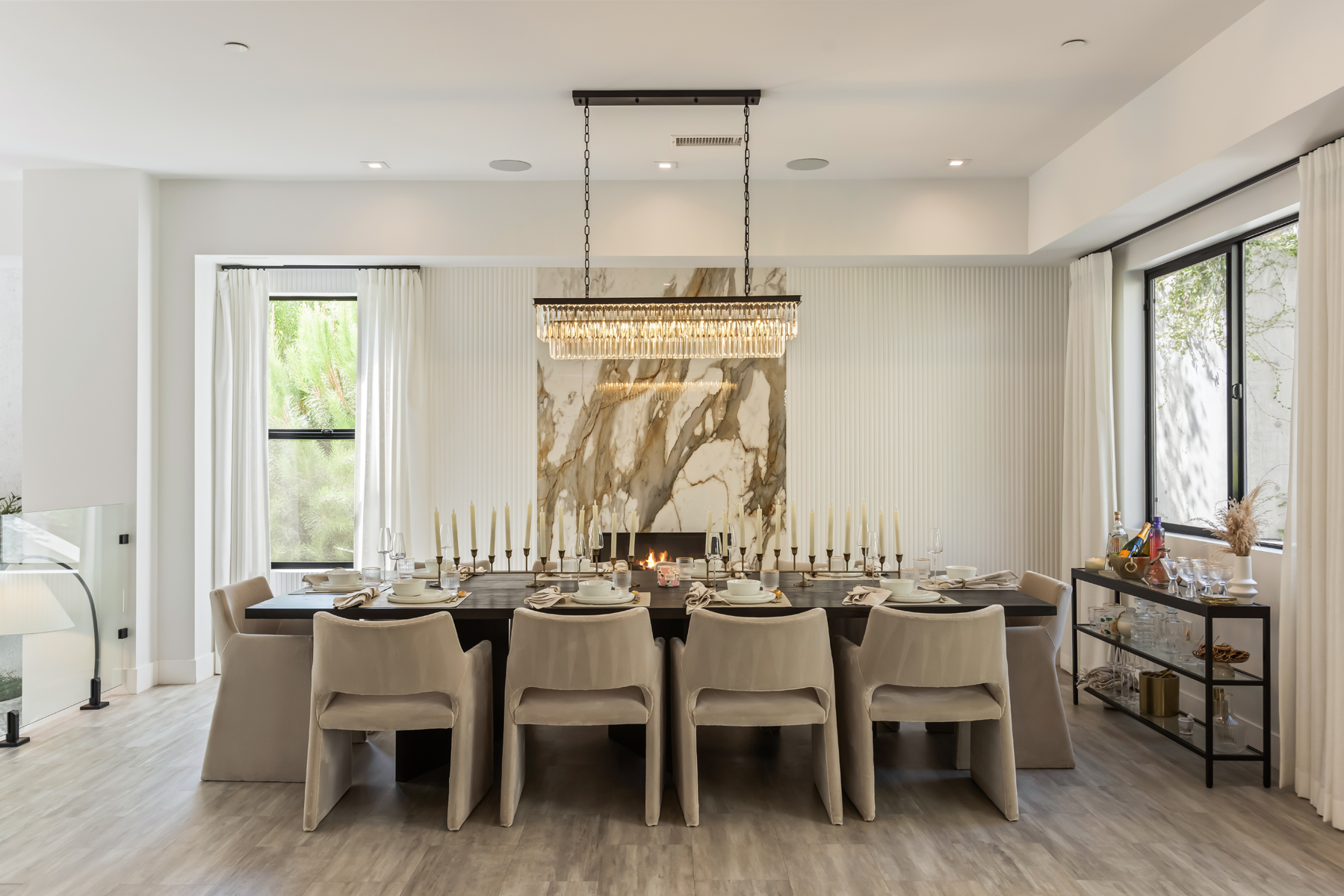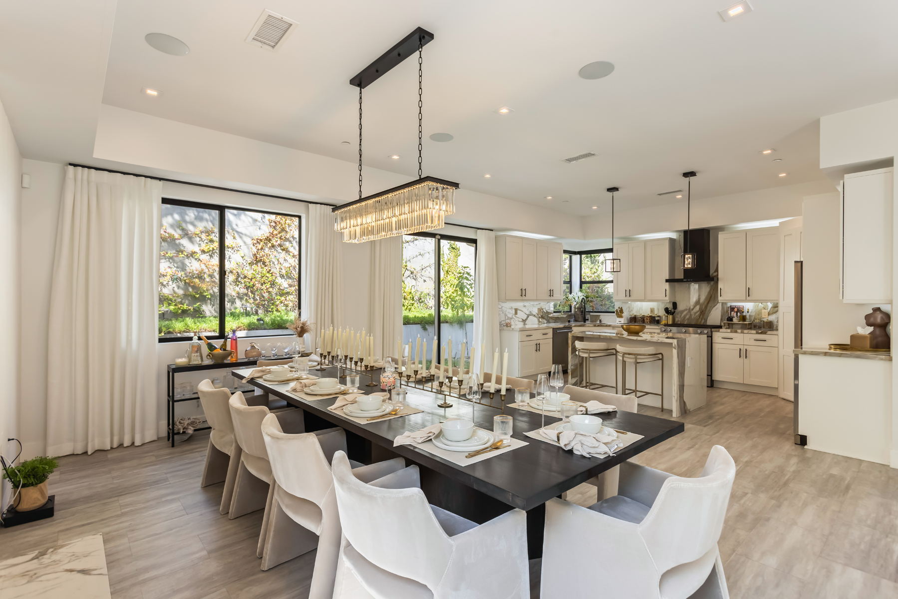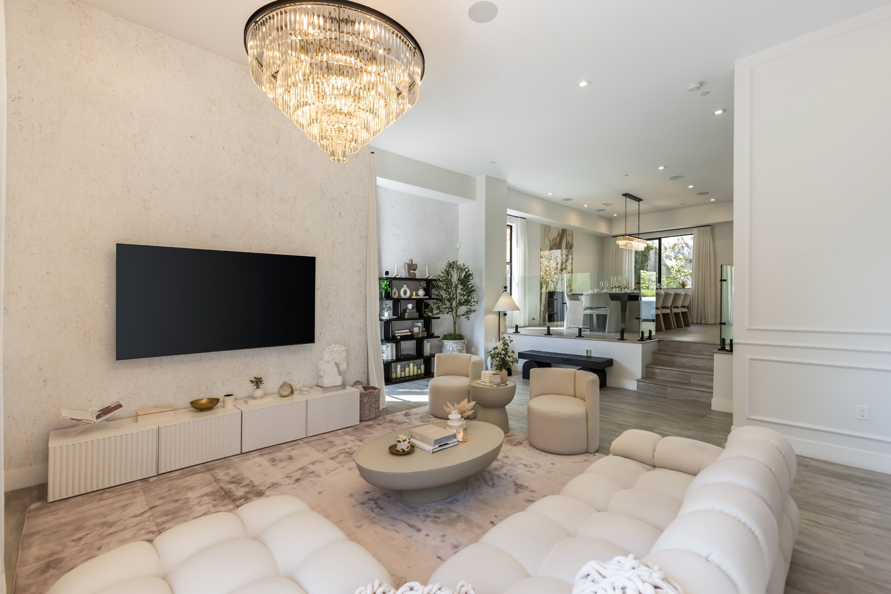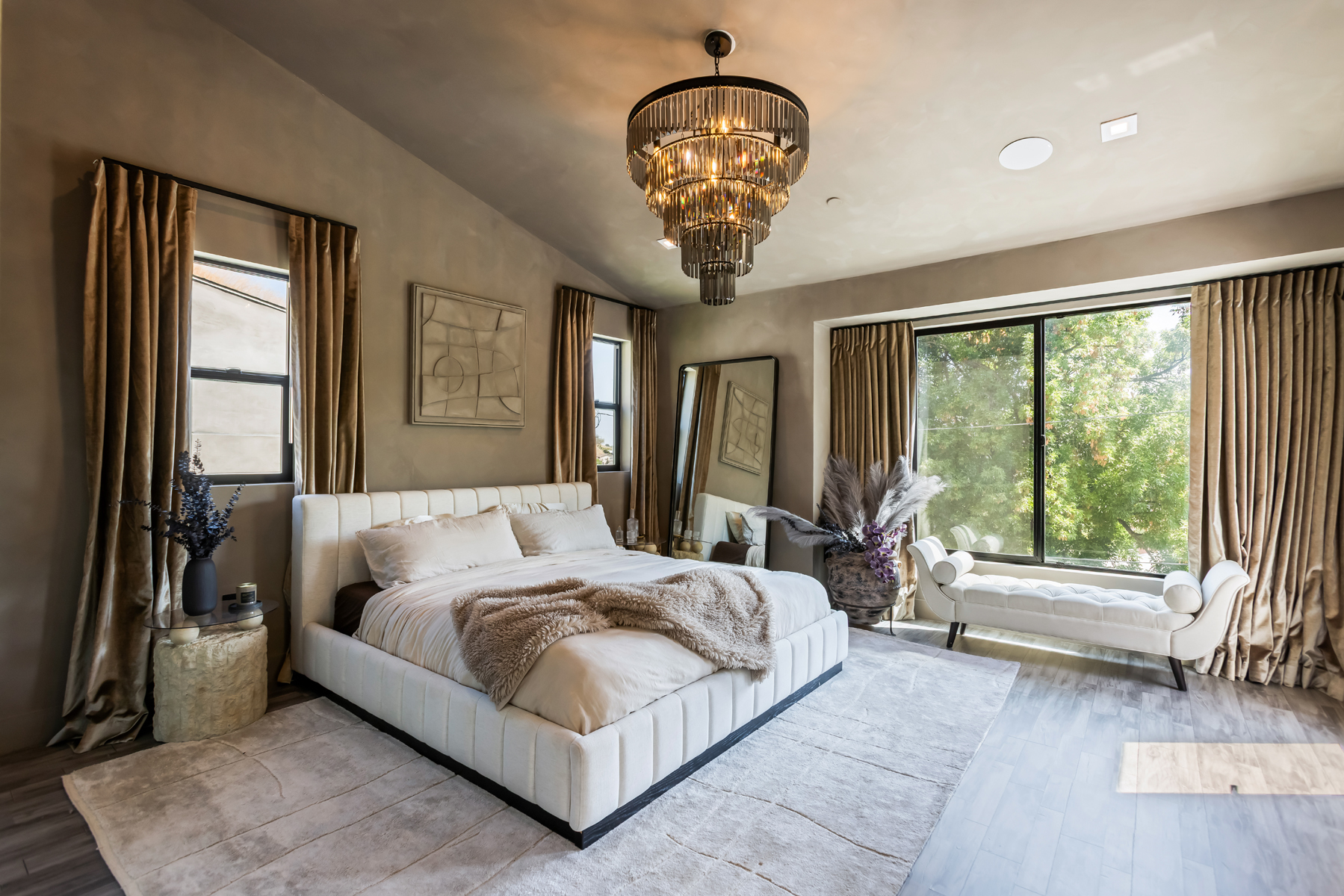 Tucked into the peaceful hills south of Ventura Boulevard, this newly renovated modern home offers an extraordinary blend of style, comfort, and technology. From the moment you enter, you're welcomed by soaring ceilings, abundant natural light, and an open layout that seamlessly connects each living space with effortless flow. Designer touches are found throughout from custom Italian wallpaper accented with 24k gold leaf to refined lime-wash finishes and statement lighting. The chef-inspired kitchen features high-end stainless-steel appliances, a bold center island, and striking Mediterraneo Macchia Antica porcelain surfaces, making it as functional as it is beautiful.The spacious family room, complete with a sleek fireplace, is perfect for cozy nights or entertaining guests. Upstairs, the luxurious primary suite offers a spa-like bathroom with dual vanities, a freestanding soaking tub, walk-in shower, and access to a private balcony with peaceful hillside views. Two additional bedrooms provide ample space, while a separate bonus room/office on the lower level adds flexibility for work or play.A true standout feature is the converted 2-car garage, now a high-performance private gym outfitted with custom flooring, top-tier equipment, and a built-in sauna perfect for fitness enthusiasts or post-workout relaxation.Enjoy complete control and comfort with cutting-edge smart home technology, including Sonos surround sound, NEST thermostat, dual-zone HVAC, tankless water heater, and security-enhancing unbreakable glass.Located just minutes from Westfield Topanga, premium dining, and boutique shopping, this turn-key property offers incredible value in one of Woodland Hills' most sought-after neighborhoods.A rare opportunity at an unbeatable price act fast, this home won't stay on the market for long.