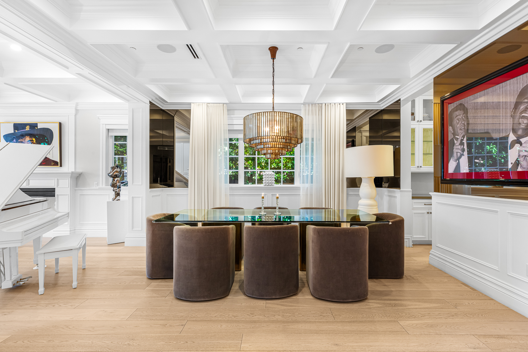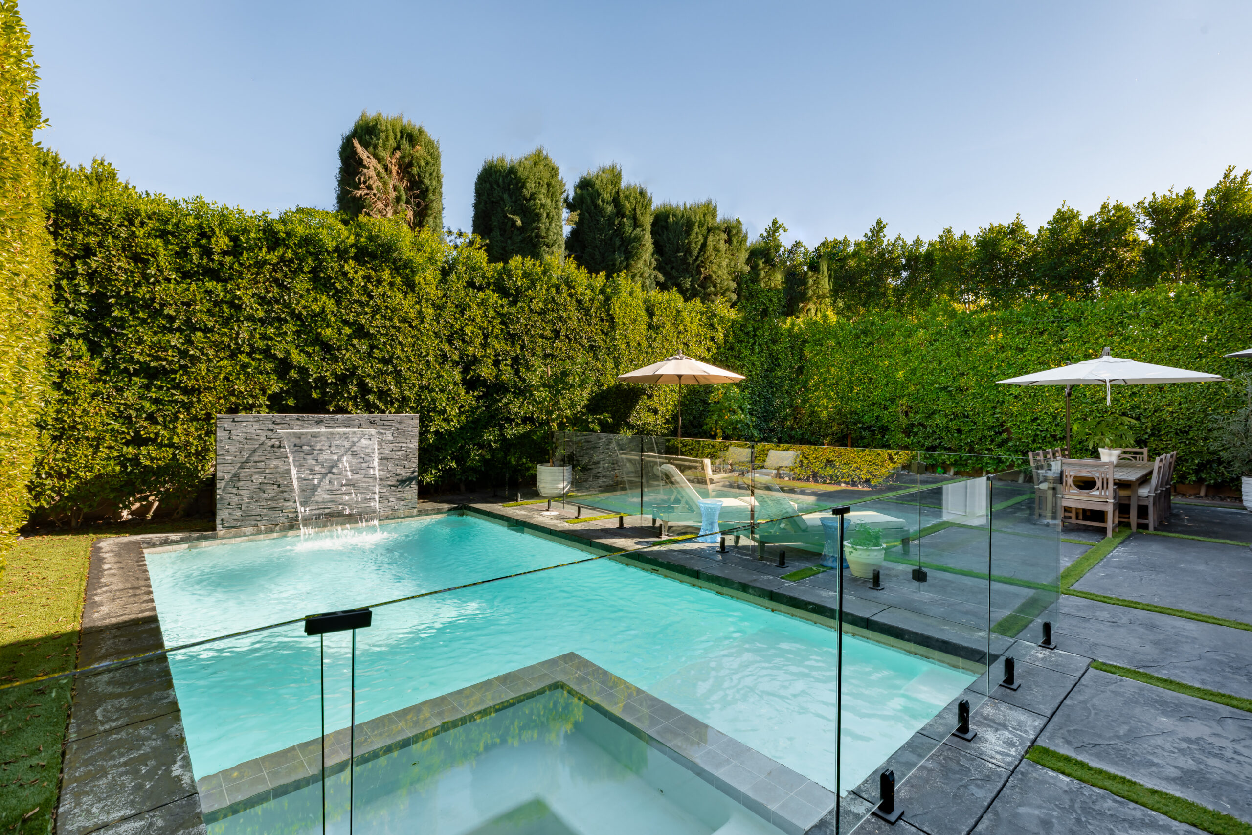 This stunning 5 bedroom, 5.5 bathroom, 4,700sqt+ home is situated perfectly in a beautiful and quiet Encino neighborhood. As you enter the grounds, you immediately feel the privacy and security provided by the fully matured trees that completely surround the property. The first level encompasses a carefully laid out floor plan that flawlessly blends both coziness and functionality. The coffered ceilings, wood paneling, wide plank hardwood floors, and several large fireplaces all contribute to the timeless elegance that is felt throughout. The first level is comprised of one bedroom with an en-suite bathroom, home theater, formal living room, dining room, wine cellar, kitchen with handpicked custom finishes, and a grand family room. The second level provides four additional bedrooms, all en-suite, private outdoor patio with fireplace, and an upstairs laundry room. The primary suite is a massive bedroom with soaring ceilings, a deep walk-in closet, plus a well-laid-out and intelligently designed primary bathroom. The backyard area offers fully matured hedges for ultimate privacy, making it a perfect environment for gatherings of any size. A sparkling pool, spa, large barbecue area, and covered patio come together to complete this fitting backyard. The home is conveniently located walking distance to all the shopping and dining options Ventura Blvd has to offer.