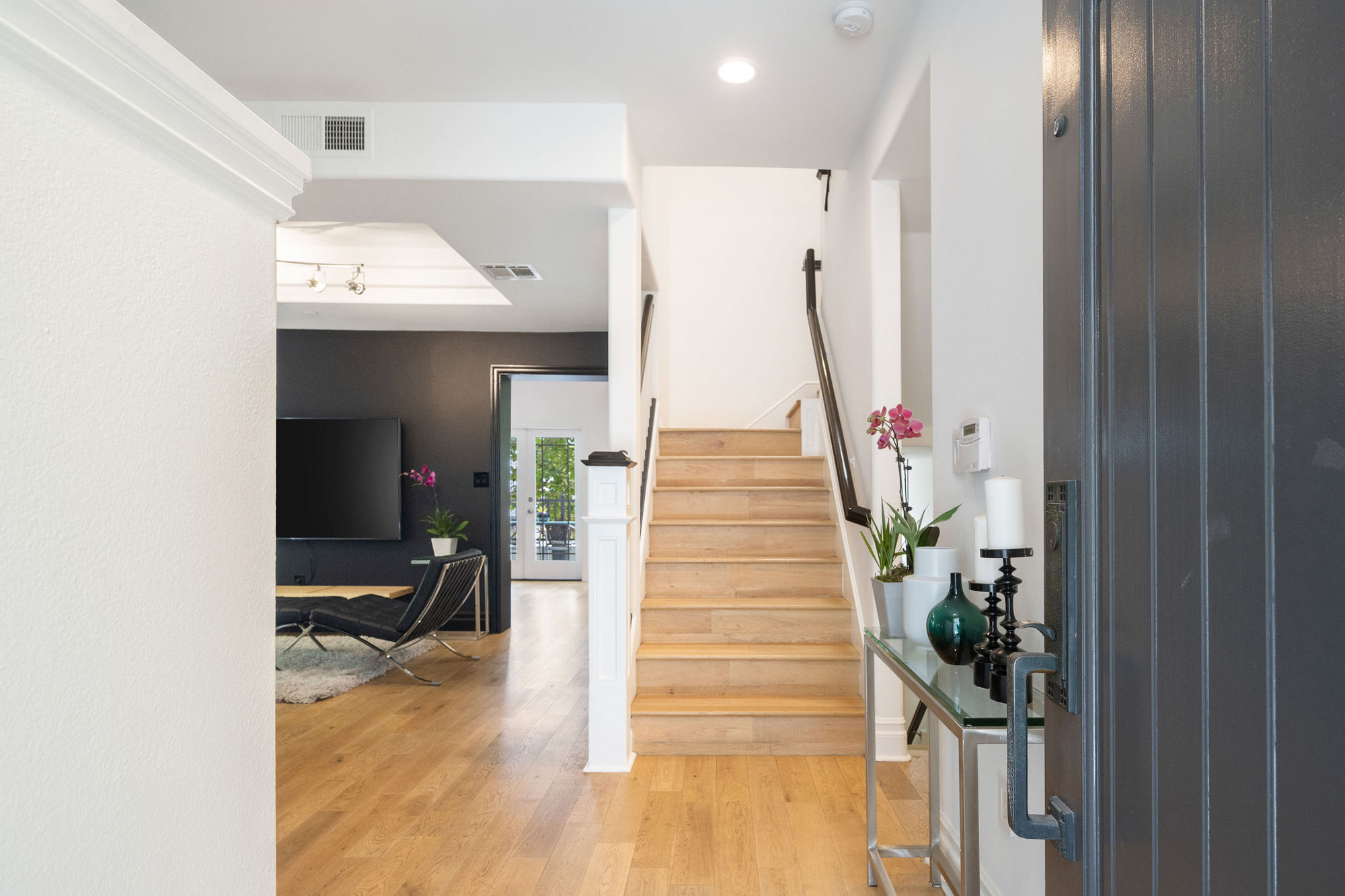 Sophisticated town home centrally located in beautiful Valley Village. This beautiful unit offers 1800 square feet, secure attached two car garage with direct access, and bonus room. Inside, the Kitchen offers granite counters, stainless steel appliances, and a large out door balcony, perfect to enjoy a cup of tea or breakfast. Throughout the home you will find hard wood floors, carpet, and tile in the bathrooms. The family room has a sophisticated and welcoming warm feeling that draws you in to relax by the fireplace. Down stairs features a bonus of the garage and laundry area. All bedrooms are upstairs and offer high ceilings, and a very cozy environment. Centrally located in beautiful Valley Village, and minutes from Ventura Blvd., west side, No Ho district etc. Location, location, location. Well maintained building with guest parking, security gates and two car garage through a security gate under the building.