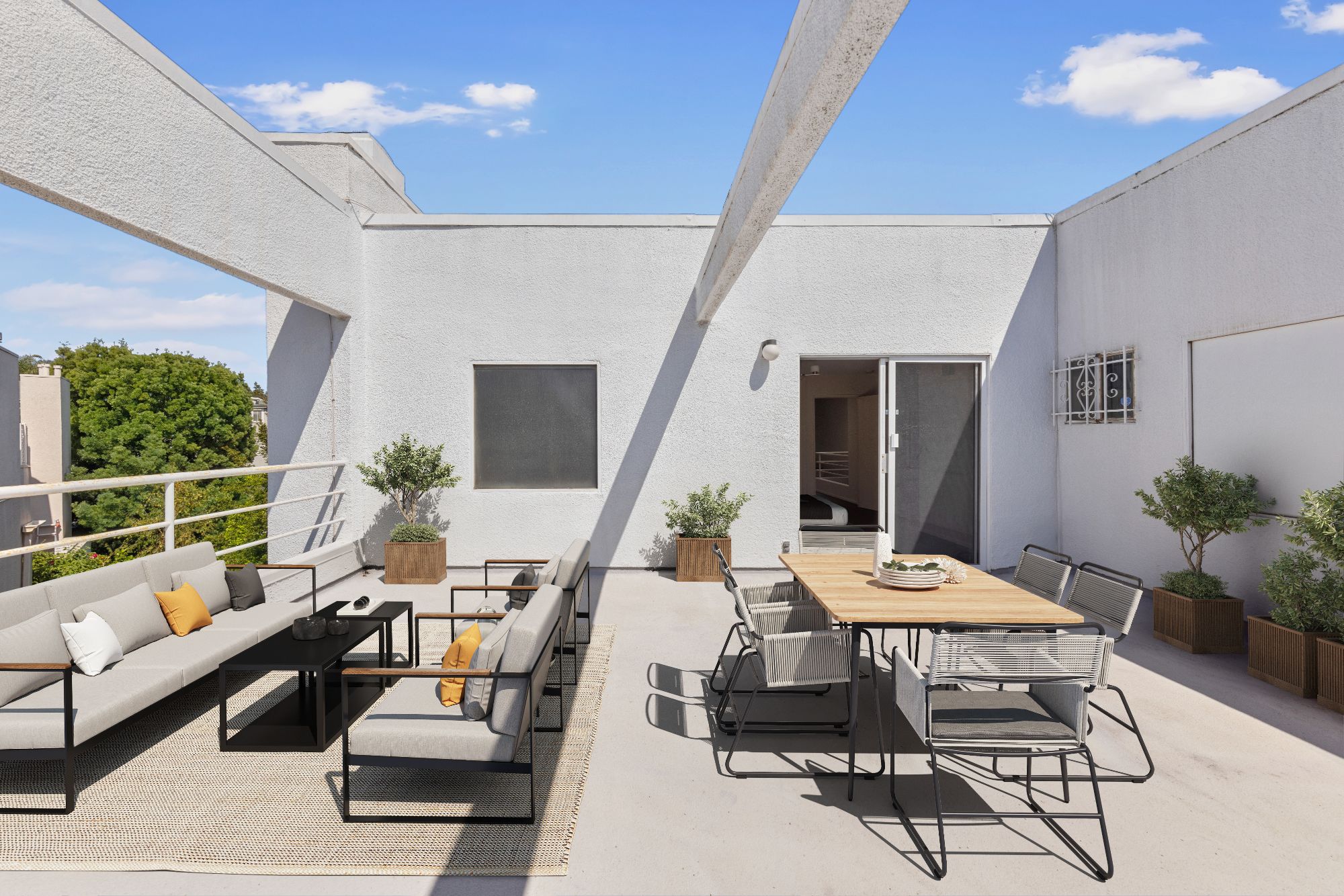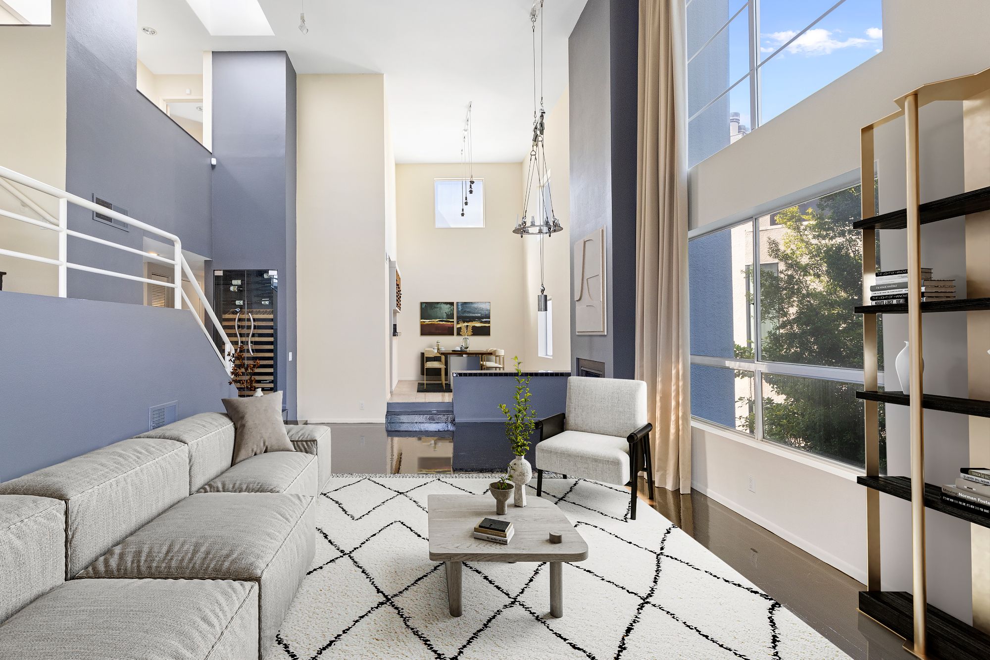 Set in the heart of Brentwood, this 2-bed, 2.5-bath multi-level penthouse effortlessly blends style and comfort. Step inside to a sunlit open floor-plan with wood floors throughout most of the home. The living room's double-height ceilings, fireplace, and balcony access offers great indoor/outdoor living. The kitchen features stainless-steel appliances, tile countertops, wine storage, and flows seamlessly into the dining and living areas. The primary suite offers a walk-in closet, and a private bathroom with a double vanity, shower and separate tub. Upstairs, there is a separate loft area which is perfect for an in-home office as well as a second bedroom that offers a walk-in closet, en-suite bathroom and opens to a large, secluded deck that is perfect for al-fresco dining and enjoying the SoCal weather. The unit includes 2 secure tandem parking spaces and a separate secured private storage unit. Building amenities include a well-equipped gym, ample guest parking, and 24/7 surveillance. Conveniently located near the best shopping and dining that Brentwood has to offer.