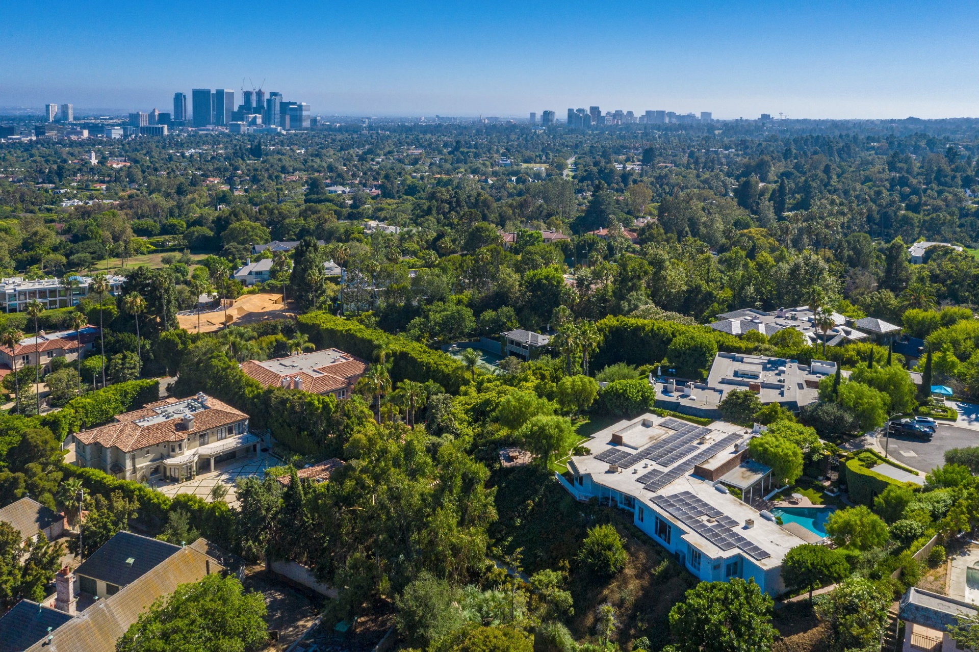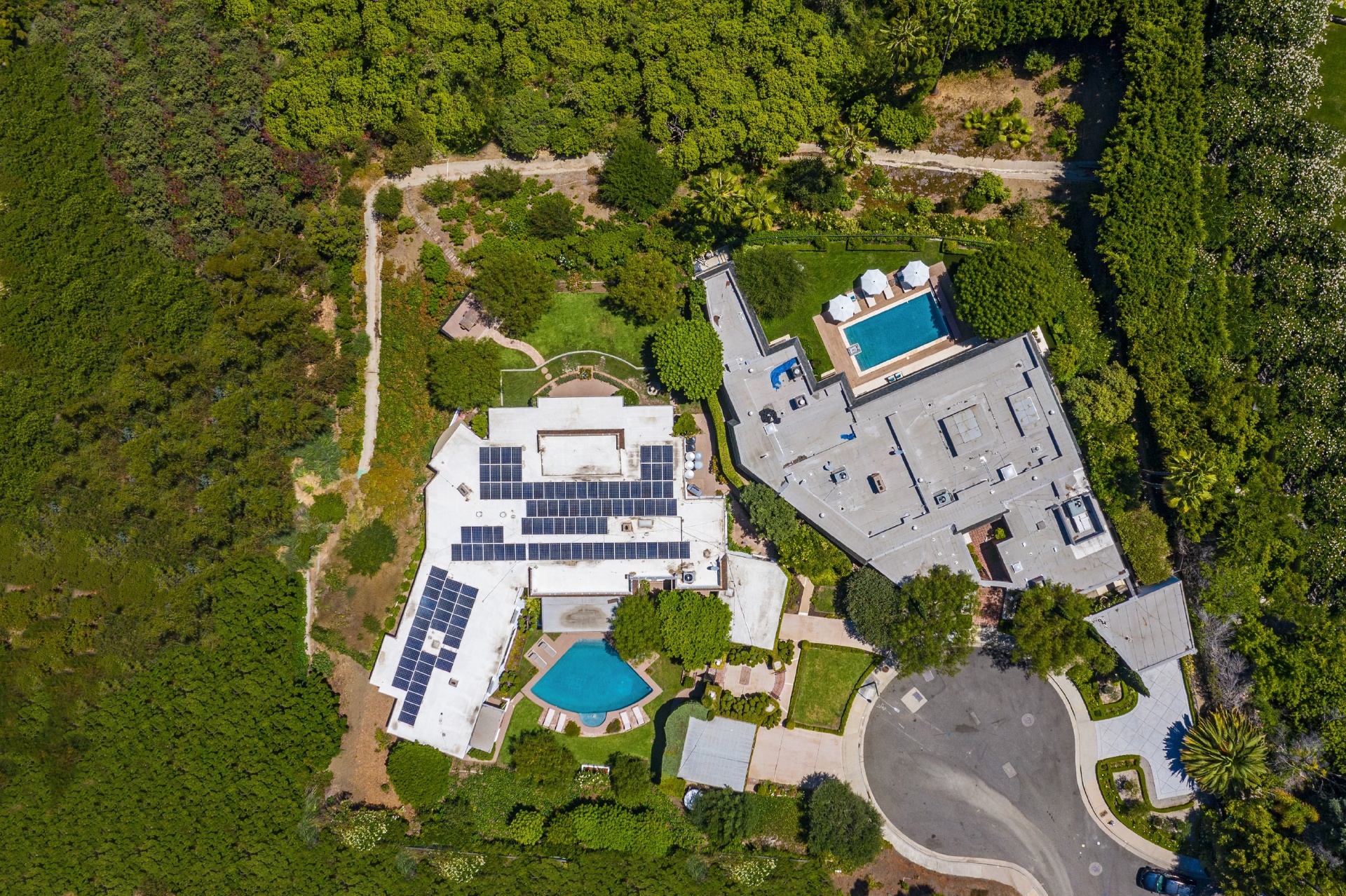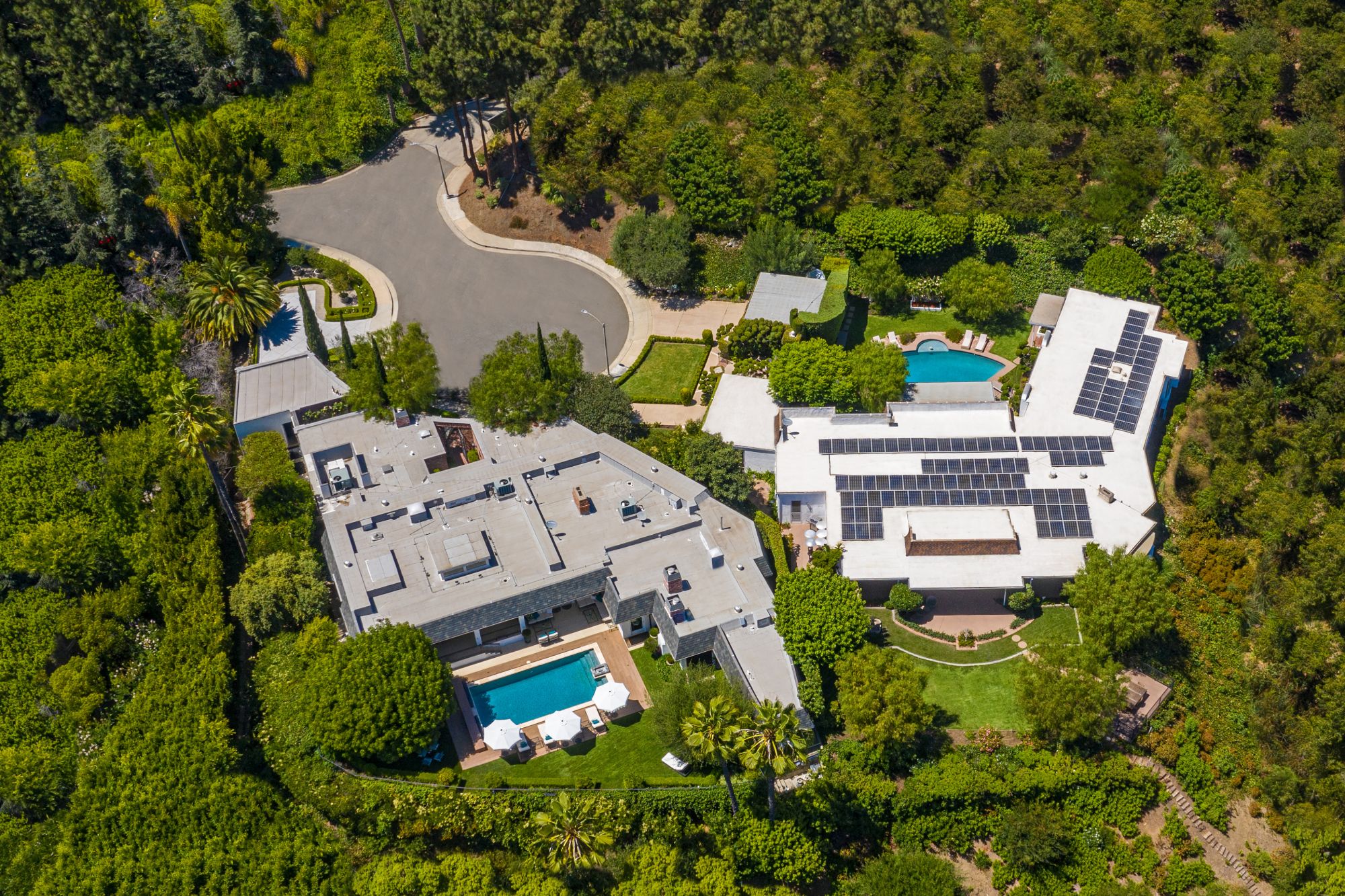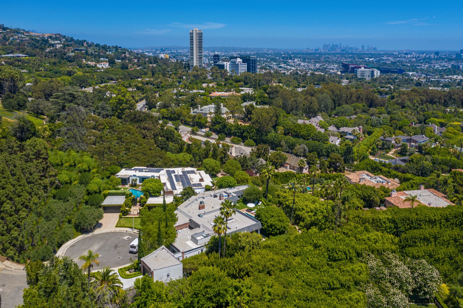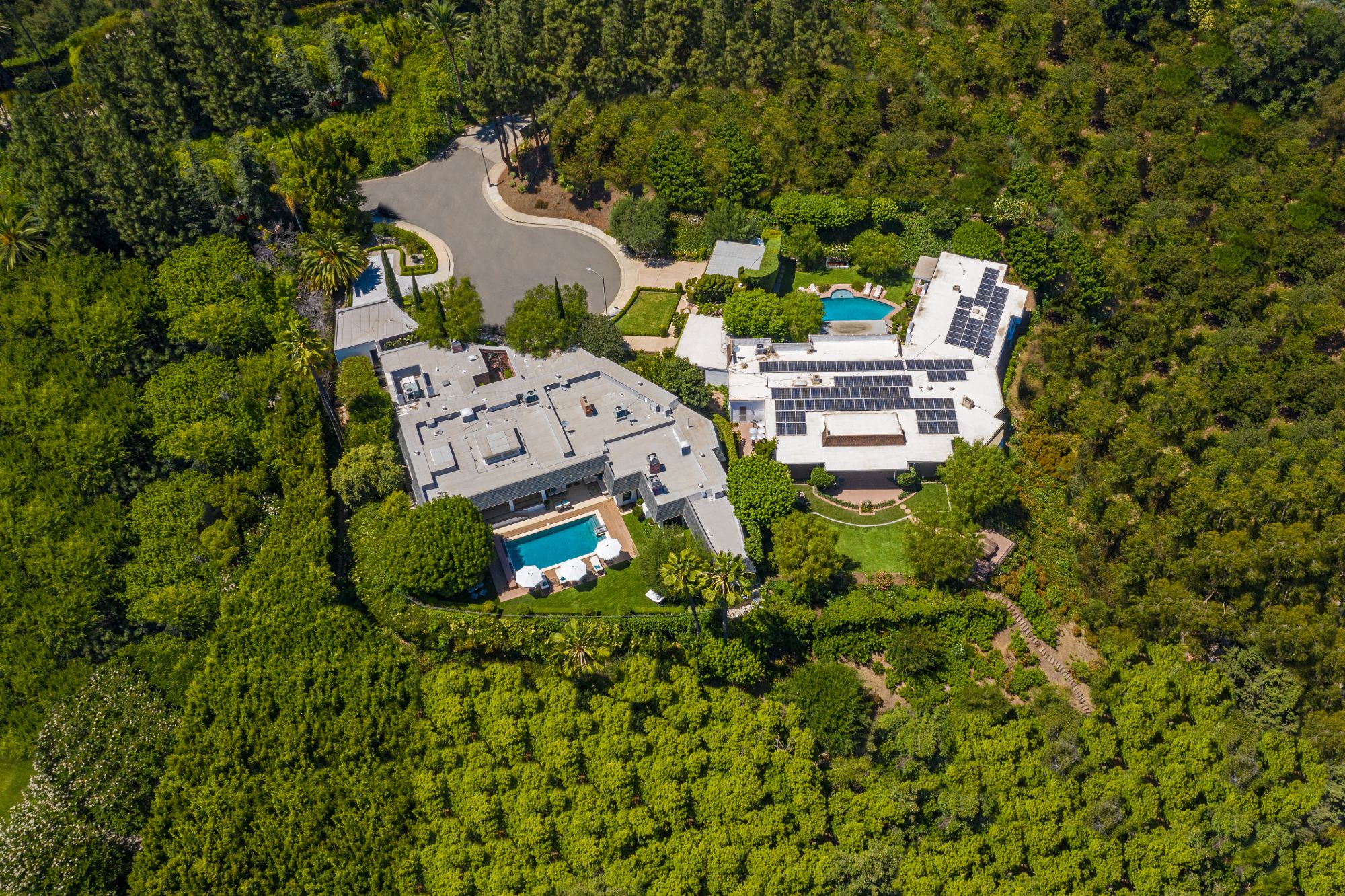 Villa Tranquila: One of the last legendary estates of Beverly Hills. Perched adjacent to landmarks: The Greystone Mansion and The Knoll. Located at the end of a prime quiet cul-de-sac. A rare opportunity of an almost two-acre promontory with treetop views of the city. Build your $100 million dream home or purchase two incredible homes, a classic Mid Century and Regency era estate in this serene setting. The combined asking price for both 510 and 520 Stonewood is $29.4M, properties are available to be purchased separately, but preferred to be sold together. Conceptual renderings have been designed with a privacy wall to enclose the promontory. An offering like this rarely comes to market in Beverly Hills.