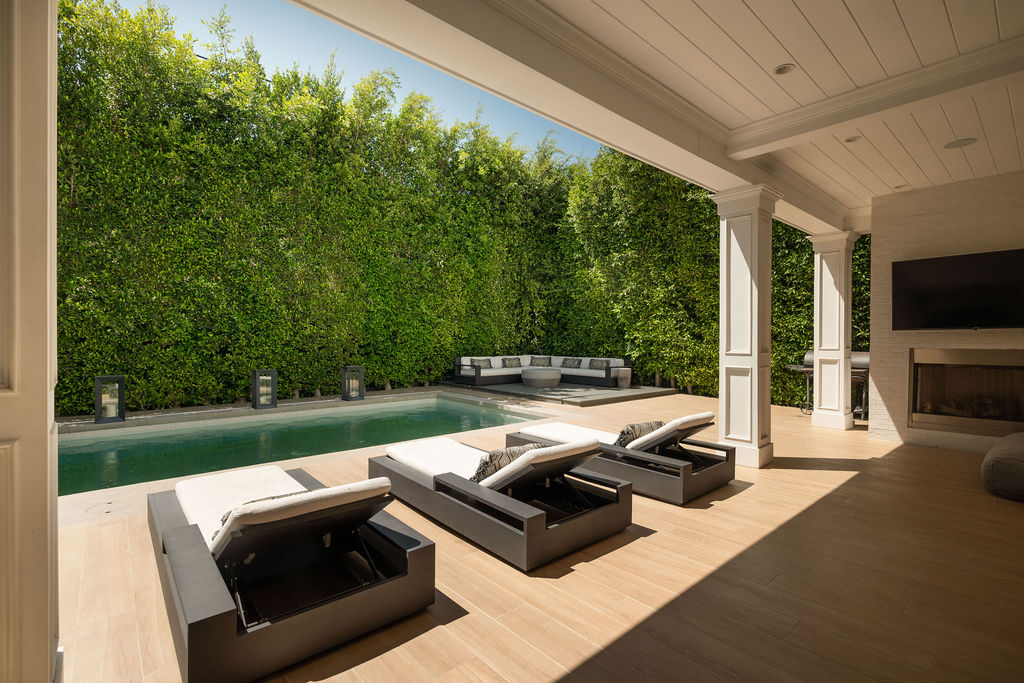 Welcome to this privately nestled true Traditional in the Melrose Village! On a gated and secured lot sits a 3,597 sqft 4 bed 5 Bath home with an oversized rooftop deck with 360 degree views of the LA skyline. High ceilings throughout provide a grand feel that leads you out onto a privately hedged backyard oasis. Built to take full advantage of the indoor outdoor living that LA is made for. Large spa and pool is surrounded by space to entertain and relax. The first floor is accommodated by a formal dining room, wine cellar, as well as an en suite guest bedroom. Upstairs the primary suite is accompanied by 2 more bedrooms and a laundry room for easy access. Stairs lead to a generous rooftop deck overlooking LA. Centrally located, you are a short walk from the best shopping and restaurants la has to offer. Also available for lease at $23,000/Month Furnished.