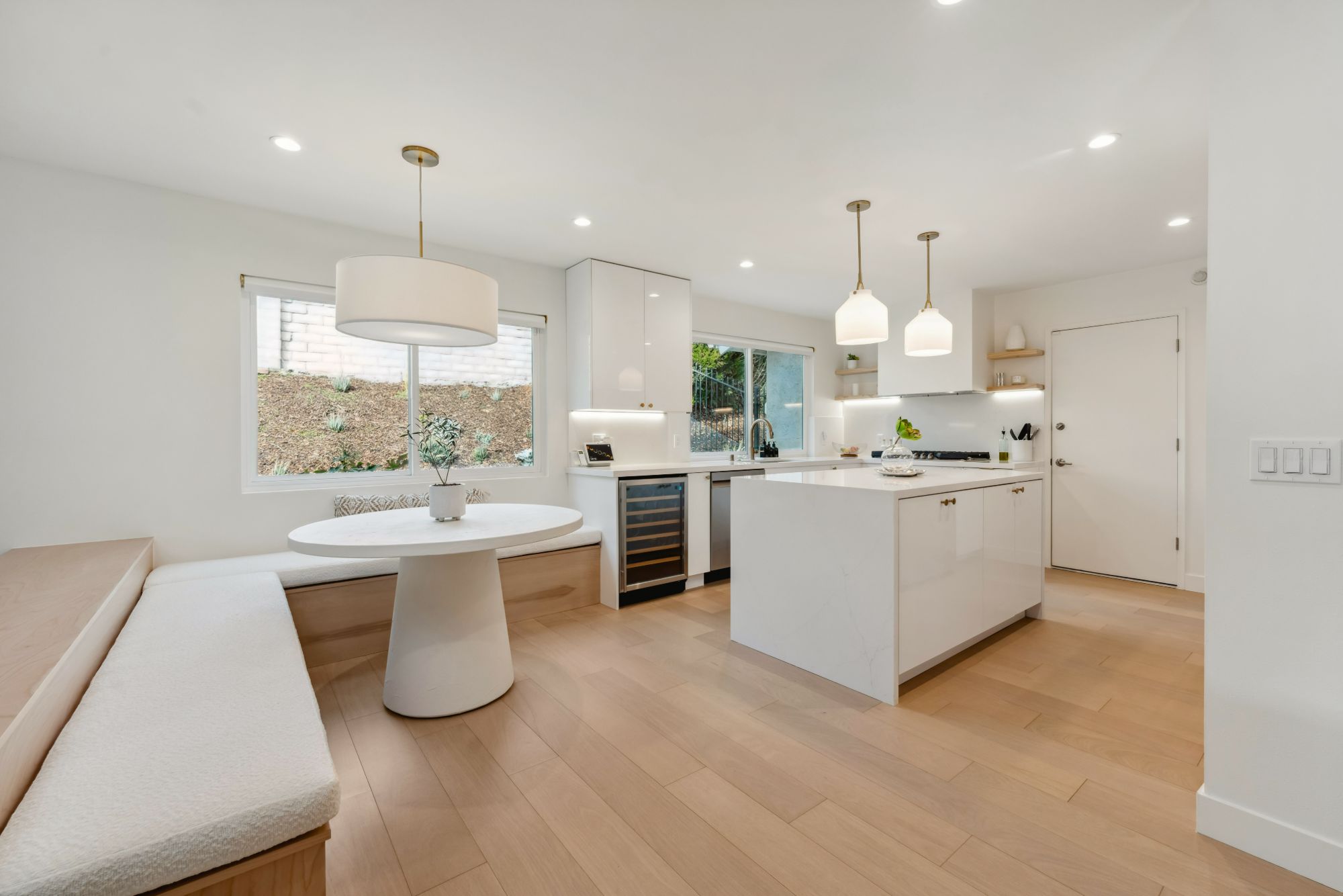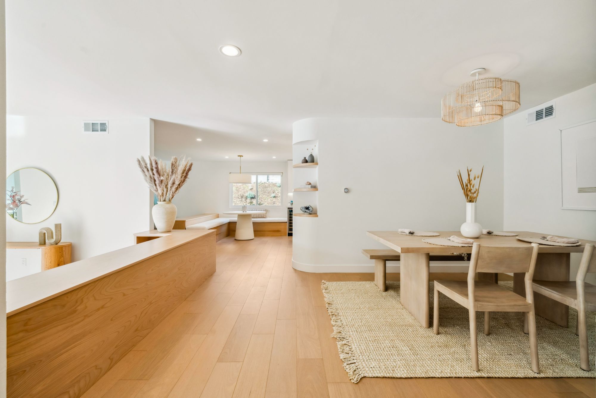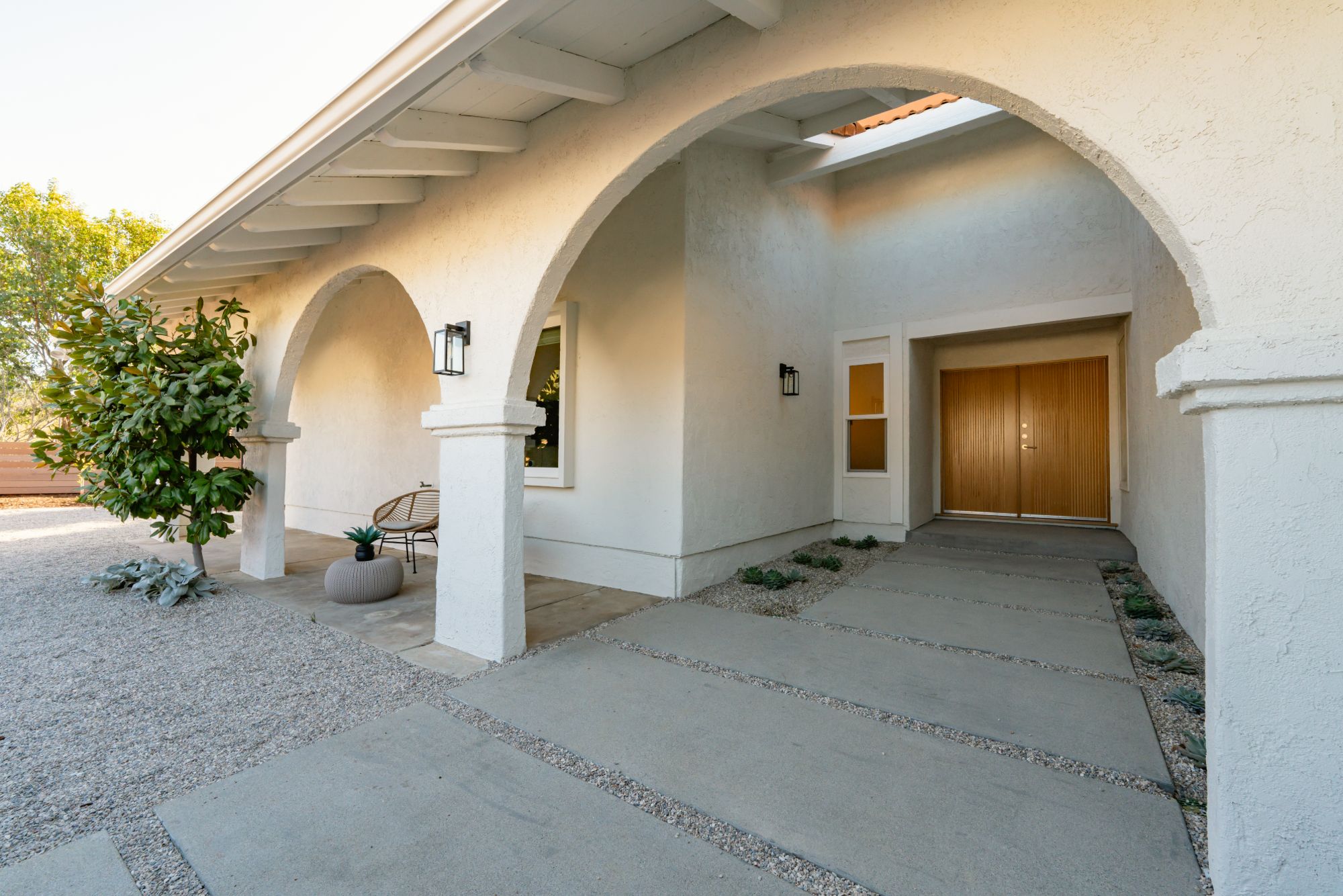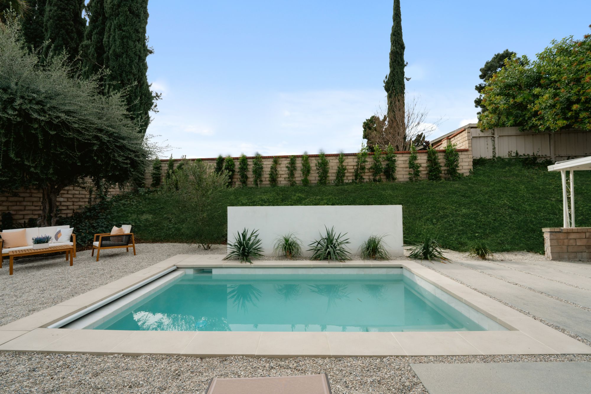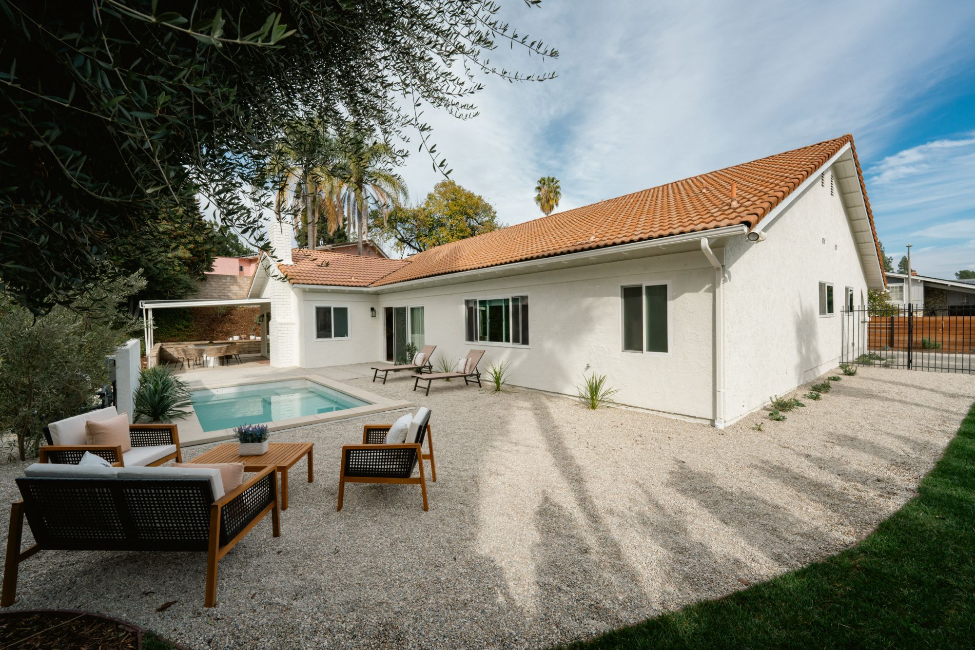 Welcome to an exceptional home where modern convenience meets timeless elegance. This meticulously reimagined residence showcases high-end finishes and thoughtful custom touches, delivering the perfect harmony of comfort, privacy, and sophistication. Fully renovated and move-in ready, this home has been updated from top to bottom with unparalleled attention to detail. A professional whole-house water softener ensures purified, soft water, while the saltwater pool, complete with spa capability, automatic cover, and heater, transforms your backyard into a private oasis. Brazilian oak flooring and custom cabinetry elevate the interior design, including a unique wraparound banquet with hidden storage and matching shelving in the sunlit great room. Expansive windows flood the space with natural light, creating a bright and airy ambiance throughout.The beautifully landscaped grounds are equally stunning, with a fully gated, private front yard featuring a budding citrus grove. The backyard, framed by hedges that will mature into a secluded retreat, boasts Mediterranean-inspired landscaping and a new irrigation system for low-maintenance beauty and ample room for a BBQ and fire pit.Designed for both relaxation and entertainment, this home offers a covered patio for year-round indoor/outdoor living, a spacious great room with a wet bar, and perfectly situated spacious dining areas. The master suite serves as a serene retreat, overlooking the pool and providing a private escape, while three additional bedrooms are perfectly positioned for guests, family or home office use. Additional luxuries include motorized window treatments in the kitchen, a wine fridge for your collection, and a three-car garage with abundant storage. Located in a top-rated school district, this home offers unmatched convenience and quality of life for families and professionals alike. This home is truly one-of-a-kind and awaits its next discerning owner.