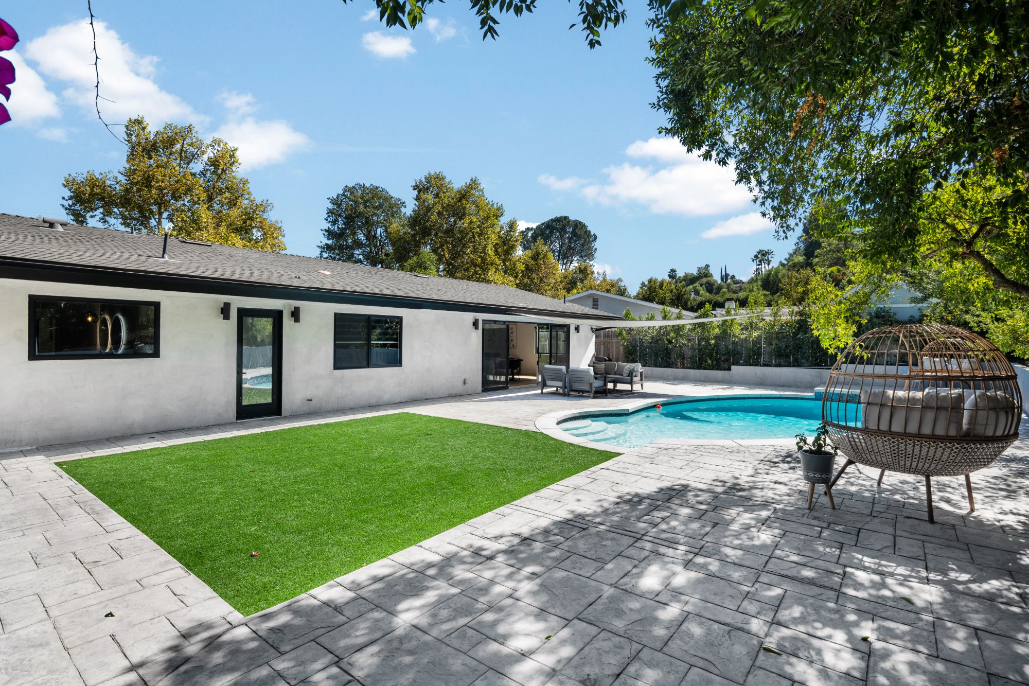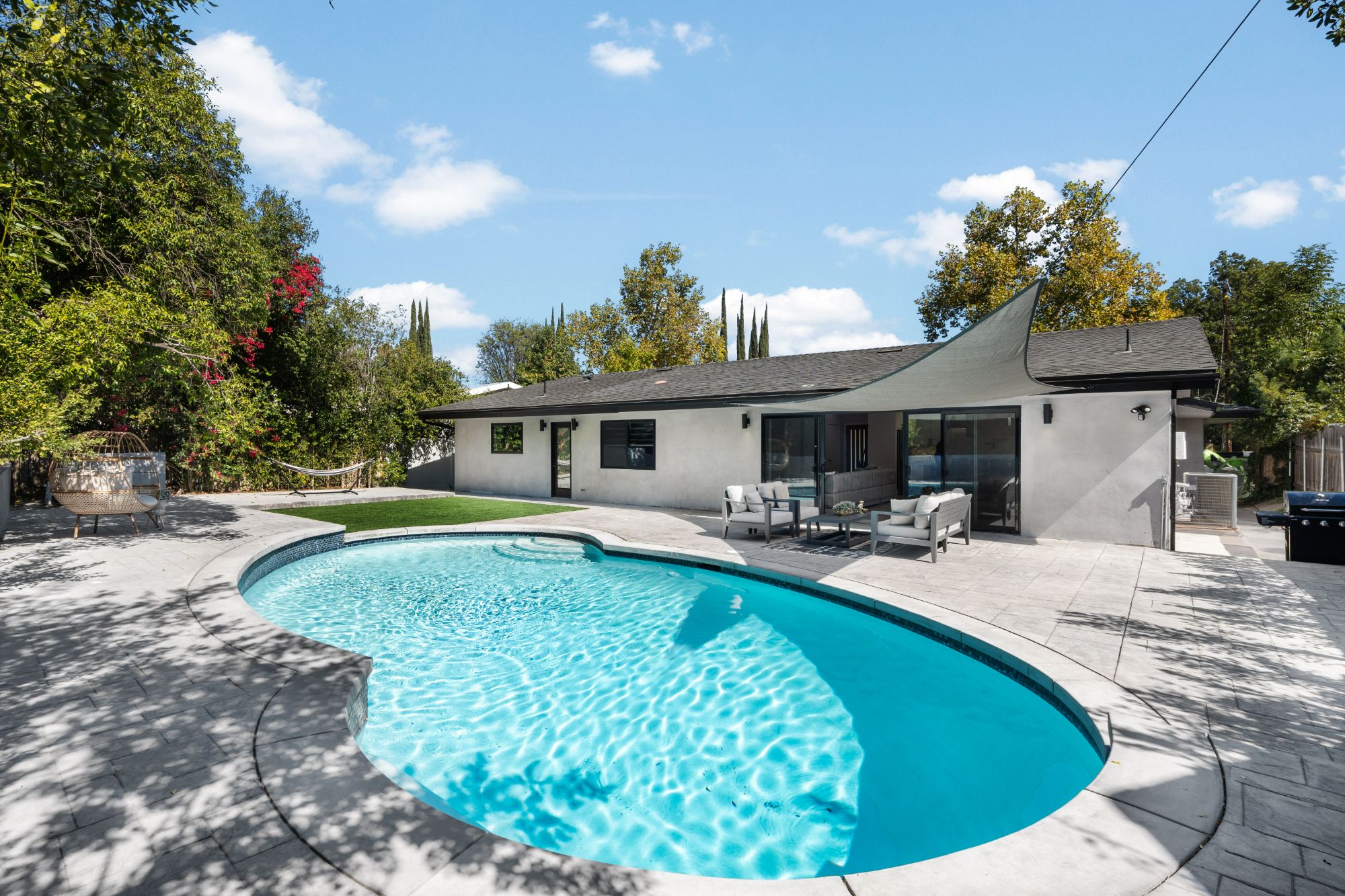 Experience unparalleled luxury in this exquisite newly remodeled modern masterpiece, located in one of the most prestigious enclaves of Woodland Hills, bordering the exclusive Hidden Hills. Behind the striking stucco and glass gates lies a meticulously crafted 4-bedroom, 3-bath estate where contemporary elegance meets timeless sophistication. Designed by a renowned contractor for his own family, no expense has been spared in curating an unparalleled living experience with only the finest materials and exceptional attention to detail. Upon entering, you are greeted by an expansive, open-concept floor plan that exudes both warmth and grandeur. The heart of the home, the gourmet kitchen, is a culinary showpiece, featuring an oversized island, state-of-the-art appliances, and custom cabinetry. The formal dining room and living area, bathed in natural light, seamlessly flows onto the outdoor sanctuary. Step outside and find yourself immersed in a private paradise, where a newly constructed pool glistens amidst manicured landscaping, offering serene views of the. hillside. This outdoor haven is designed for both lavish entertaining and tranquil relaxation. The master suite is a retreat with a spa-like en-suite bathroom featuring a custom glass walk-in shower with dual shower heads, a large soaking tub, and designer finishes throughout offering a space that is both indulgent and serene. Each additional bedroom and bathroom includes custom vanities, bespoke built-in closets, and carefully curated finishes to elevate the home. Perfectly situated in one of the most sought-after neighborhoods of Woodland Hills, this residence is just moments away from highly acclaimed schools. This is more than just a home. It is a lifestyle where every element has been thoughtfully designed to offer the pinnacle of luxury living. This remarkable residence is destined to captivate the most discerning buyers.