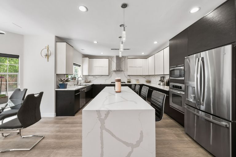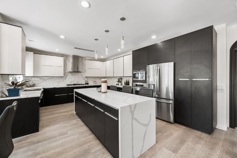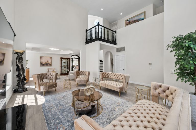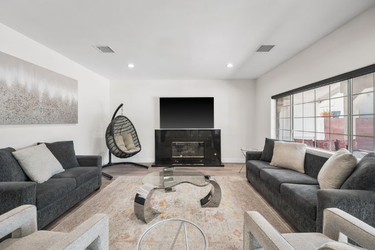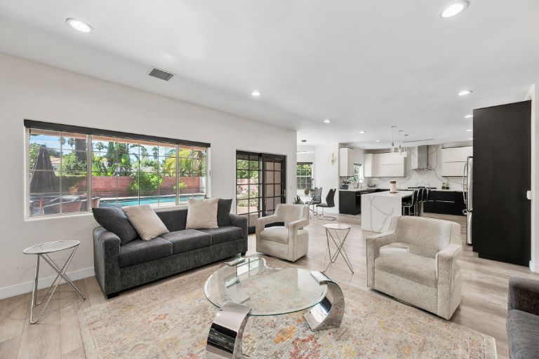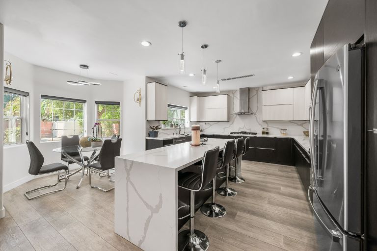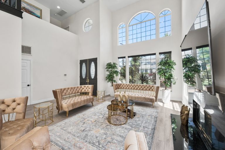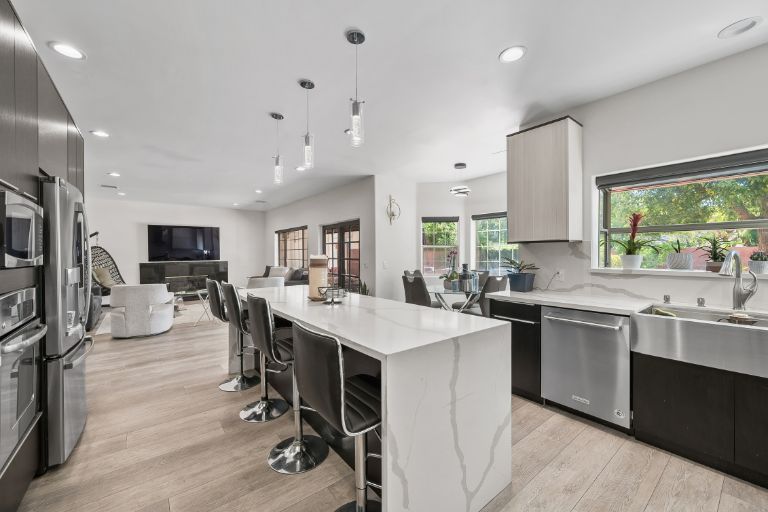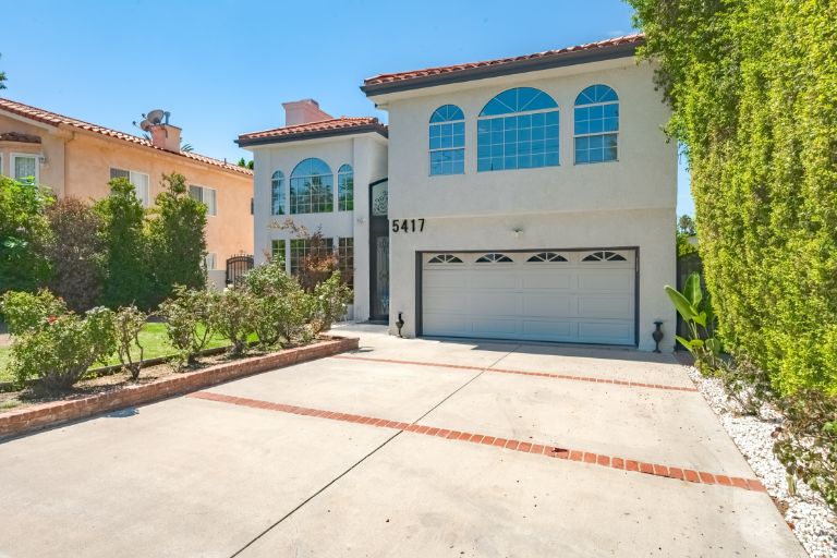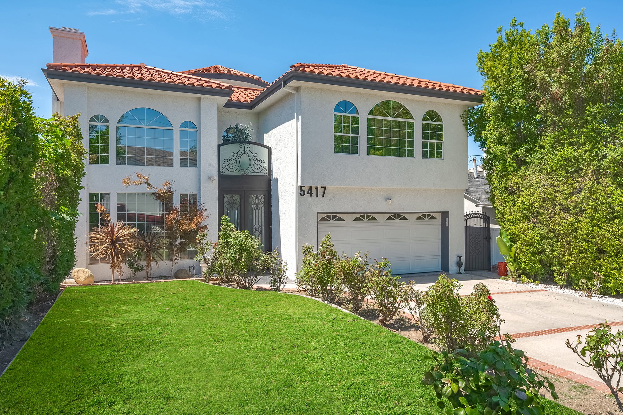 Situated just South of the boulevard, sits this stunning 5 bed, 5 bath, 3800 square feet Mediterranean masterpiece. From the moment you enter the gorgeous double doors, you will notice the immaculate attention to detail. From the 18 foot high ceilings to the gorgeous finishes, this fully remodeled gem is sure to impress. Directly left of the foyer sits the formal living room with a modern marble stone fireplace. Living room gives way to what is dressed as a beautiful sitting area, but could double as a formal dining room. This overlooks the impressive spiral staircase. A set of grand double doors opens to a large family room and custom chefs kitchen. Kitchen features large carrera quartz island, brand new Italian cabinetry, large stainless steal farm sink & all new stainless steal appliances. Also features a fabulous seating area / breakfast nook. Family room also features a marble fireplace and views of the luxurious recently refinished pool. Downstairs also features a king sized bedroom with en-suite bathroom and walk in closet. Adjacent sits the laundry room and a powder room. Winding up the spiral staircase you will arrive at a generous landing. Directly to the right you ll enter through a set of double doors into the grand primary bedroom, which features a fireplace, 2 oversized walk in closets, a massive balcony and a beautiful en-suite bathroom. Bathroom features a jacuzzi soaking tub, dual sinks, and standup natural stone shower, which features dual shower heads. Upstairs also features 3 more king sized bedrooms with ample closet space and newly remodeled en-suite bathrooms. Making your way outside you will be stunned by this gorgeous pool and spa along with beautiful sitting areas & pergola for you endless enjoyment. This home also features a resurfaced 2 car garage and has a large driveway to accommodate additional parking. Home is in close proximity to Ventura Blvd, shops, restaurant, entertainment & 101 freeway access.