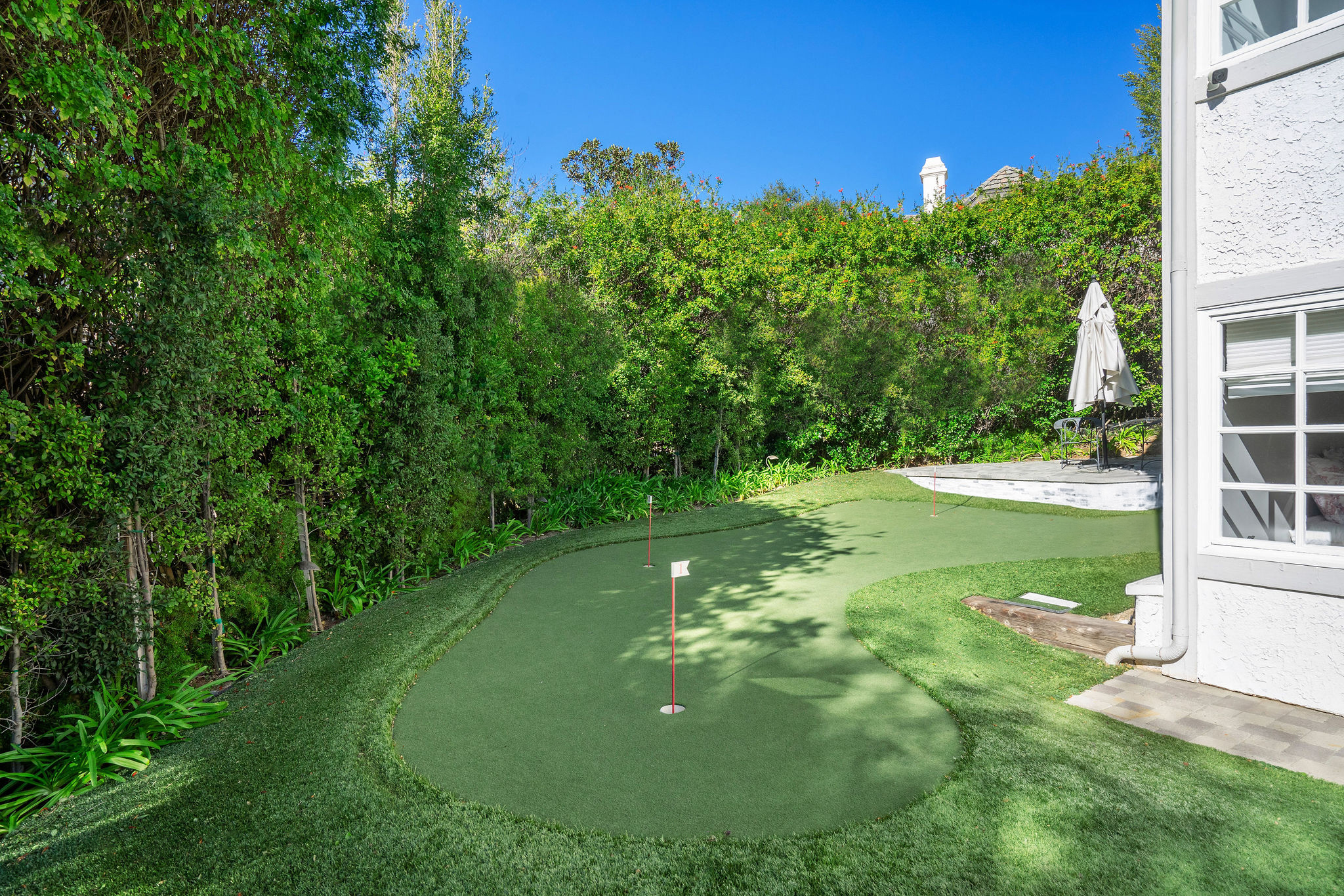 Located at the end of a peaceful cul-de-sac in the coveted North Ranch neighborhood, this fully furnished home offers 4 bedrooms and 4.5 bathrooms. Step through the double doors into the main living area featuring a family room, dining room, library, gourmet kitchen, upgraded laundry room, and a luxurious master suite. The expansive balcony connects the kitchen, living room, and master bedroom, providing seamless outdoor access across the main level. The master bathroom and closet have been beautifully renovated with modern finishes and heated floors for added comfort. The third level offers a private office space with a full bathroom, perfect for working from home or easily converted into a guest bedroom. The lower level boasts three spacious bedrooms, one of which has been transformed into a fully equipped gym that can easily be reverted to a bedroom, along with a large family room featuring double doors that open to a private, serene backyard with views of the Santa Monica mountains and Simi Peaks. The outdoor space is an entertainer's dream, complete with a resort style pool, putting green, and outdoor kitchen, ideal for relaxing or hosting guests. Additional features include a three-car garage with 2 Tesla chargers, extra storage space and a secondary fridge.