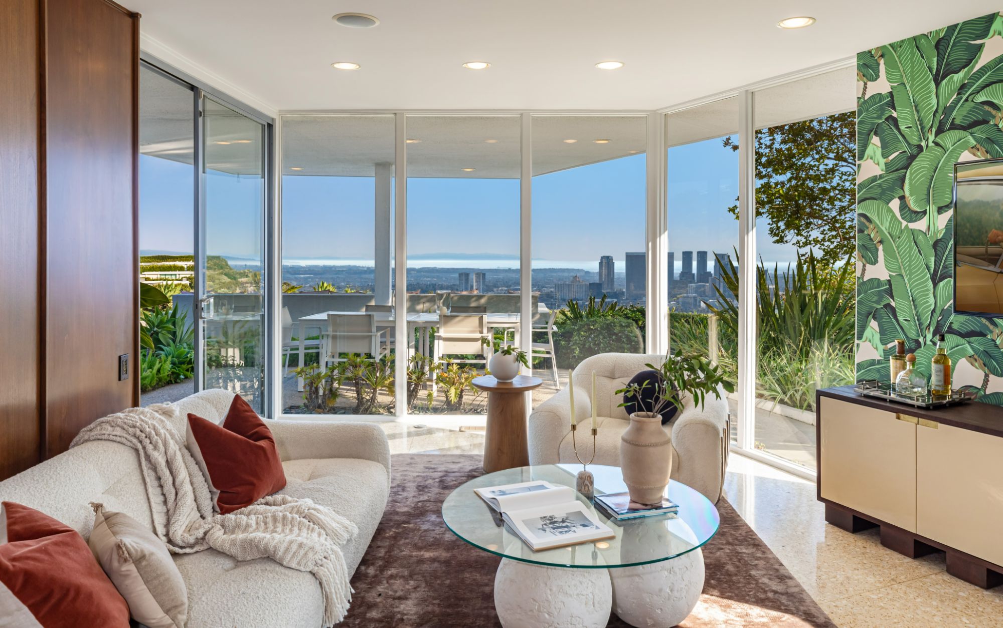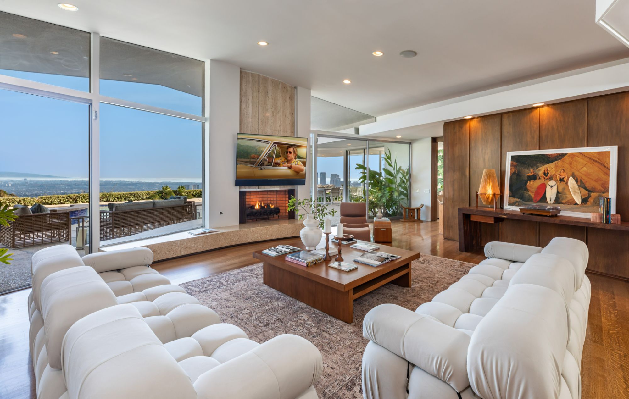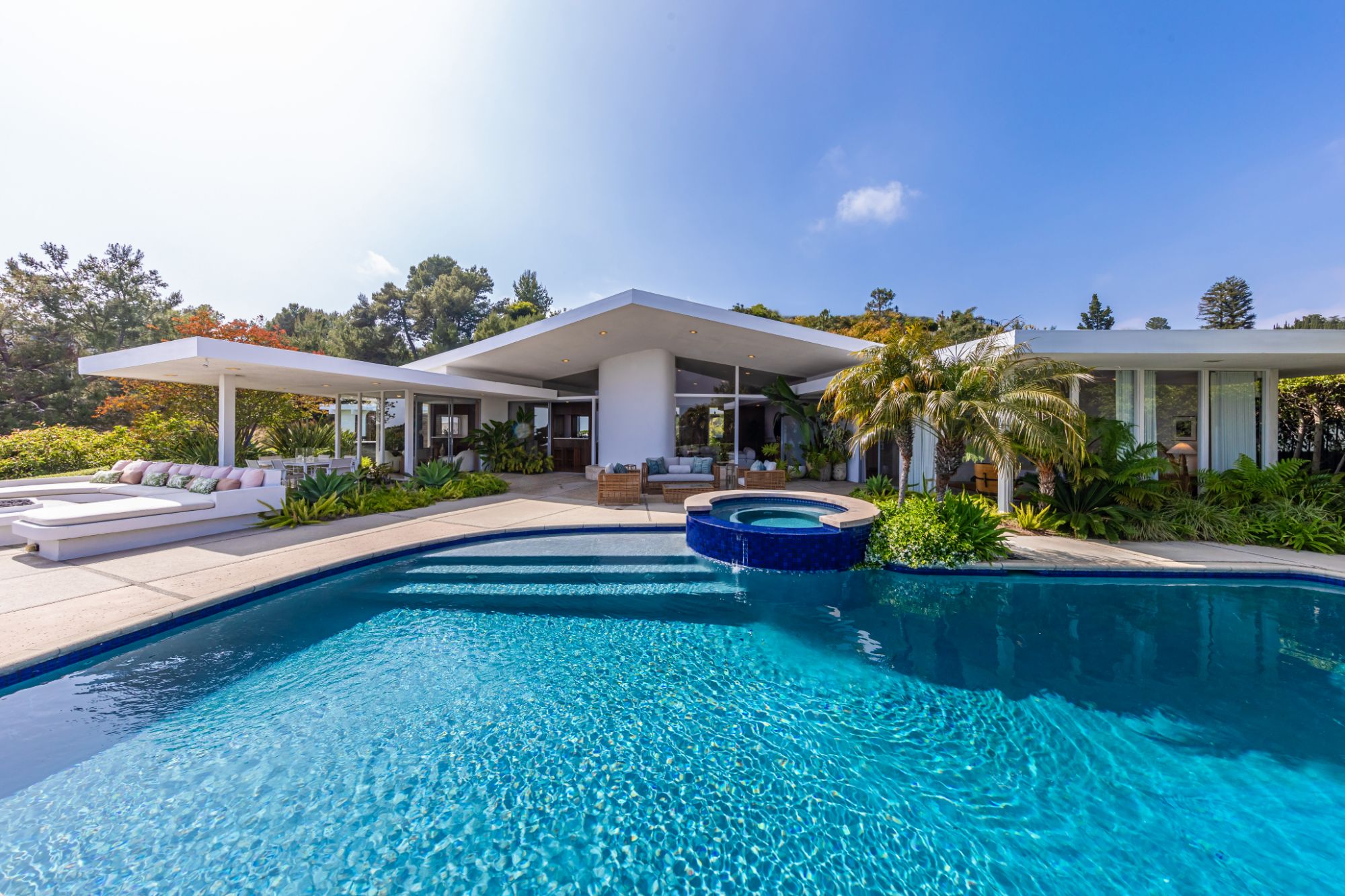 Restored Trousdale mid-century masterpiece hovering on a promontory with massive unobstructed city to ocean views. Soaring A-frame high ceilings, wonderful open floor plan with great proportions, and one of the best views in Trousdale. On one of the most exclusive and quiet streets, Haynes. Secured, private, and a very peaceful setting. Trousdale has a rare few gems, and an architectural marvel like this comes up once in a lifetime. By architect David Hyun, who designed the famous Japanese Village Plaza in Little Tokyo and worked with Schindler and Neutra. Here is your chance to own a piece of history in the number one location in all of Los Angeles. Opportunities like this very rarely come available.