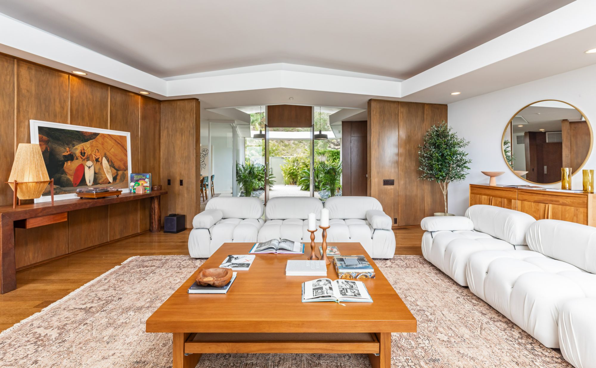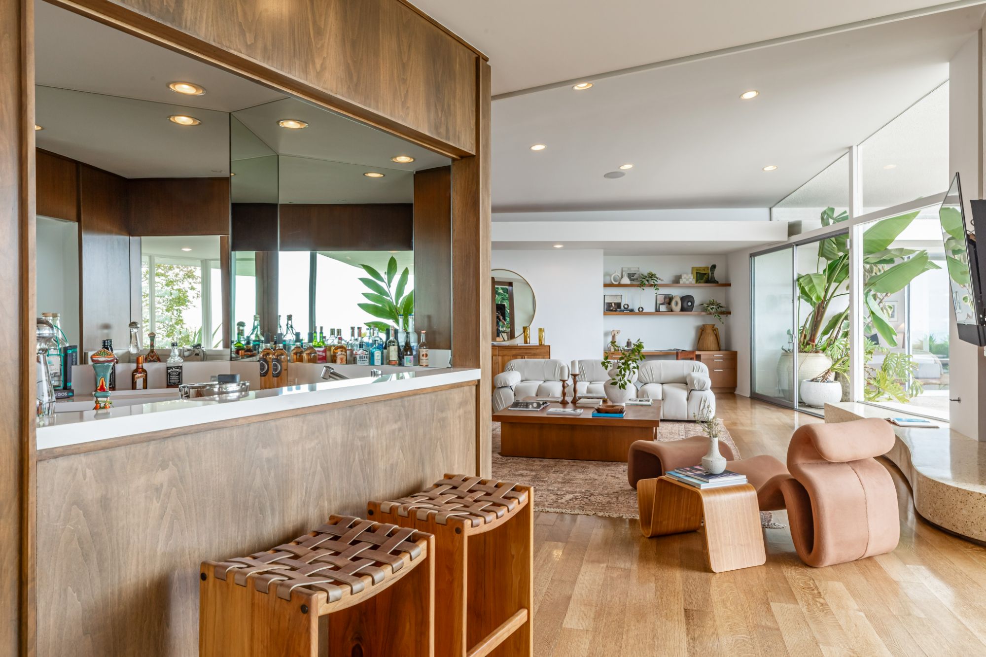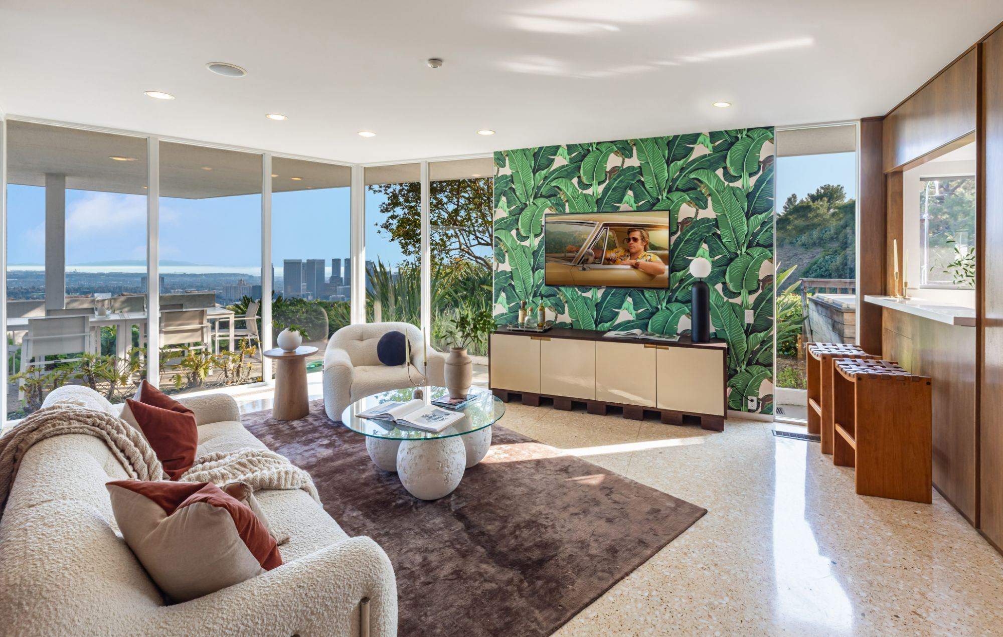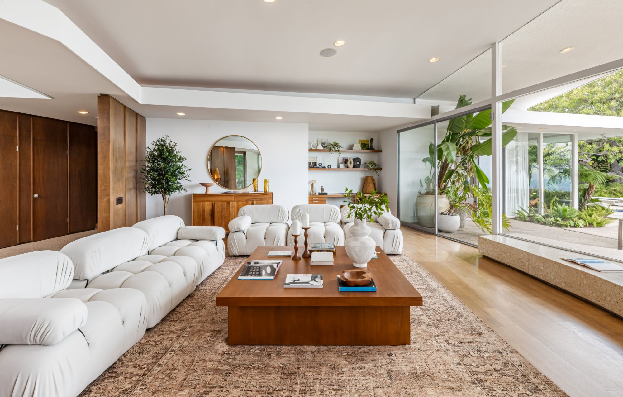 Restored Trousdale mid-century masterpiece hovering on a promontory with massive unobstructed city to ocean views. Soaring A-frame high ceilings, wonderful open floor plan with great proportions, and one of the best views in Trousdale. On one of the most exclusive and quiet streets, Haynes. Secured, private, and a very peaceful setting. Trousdale has a rare few gems, and an architectural marvel like this comes up once in a lifetime. By architect David Hyun, who designed the famous Japanese Village Plaza in Little Tokyo and worked with Schindler and Neutra. Here is your chance to own a piece of history in the number one location in all of Los Angeles. Opportunities like this very rarely come available.