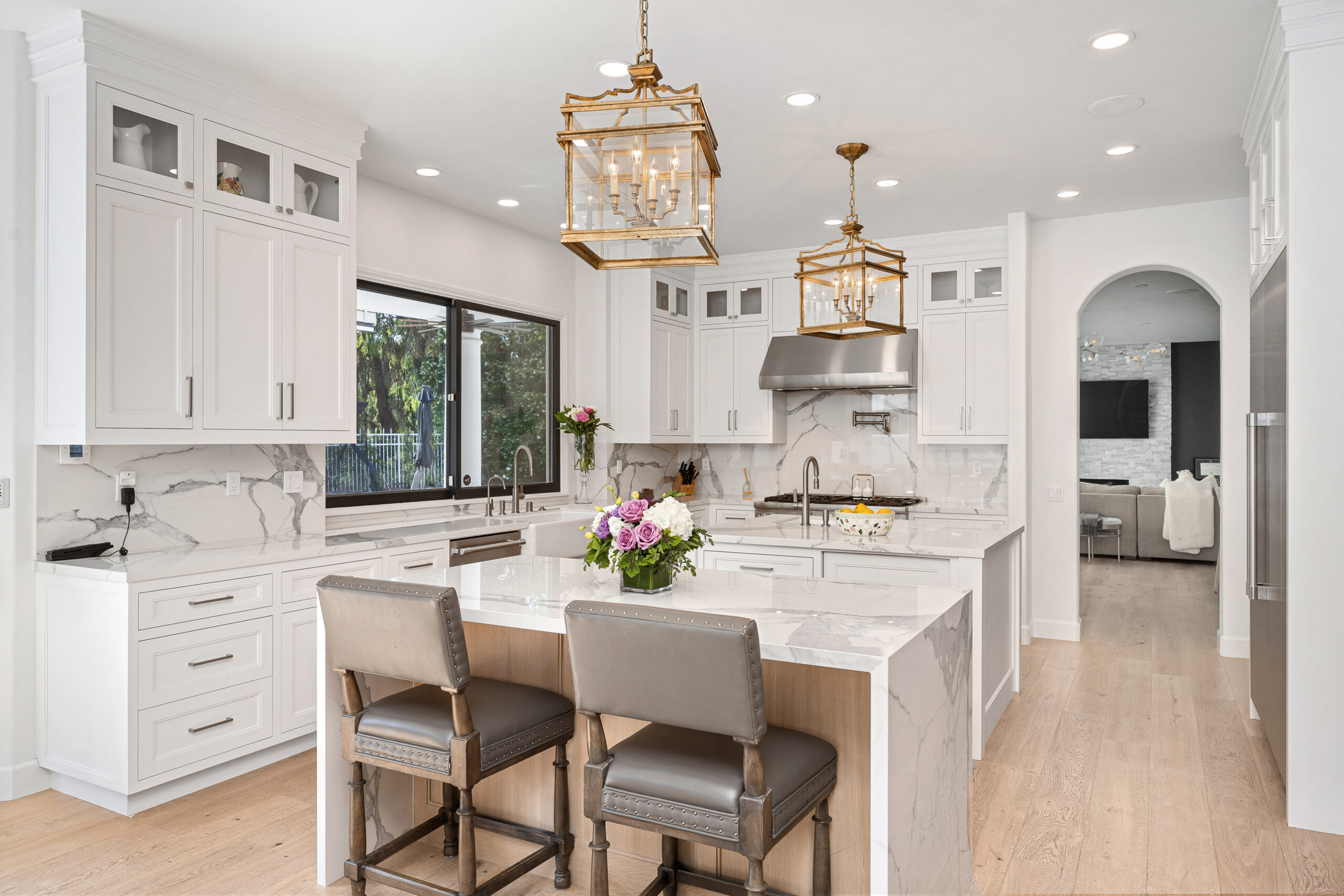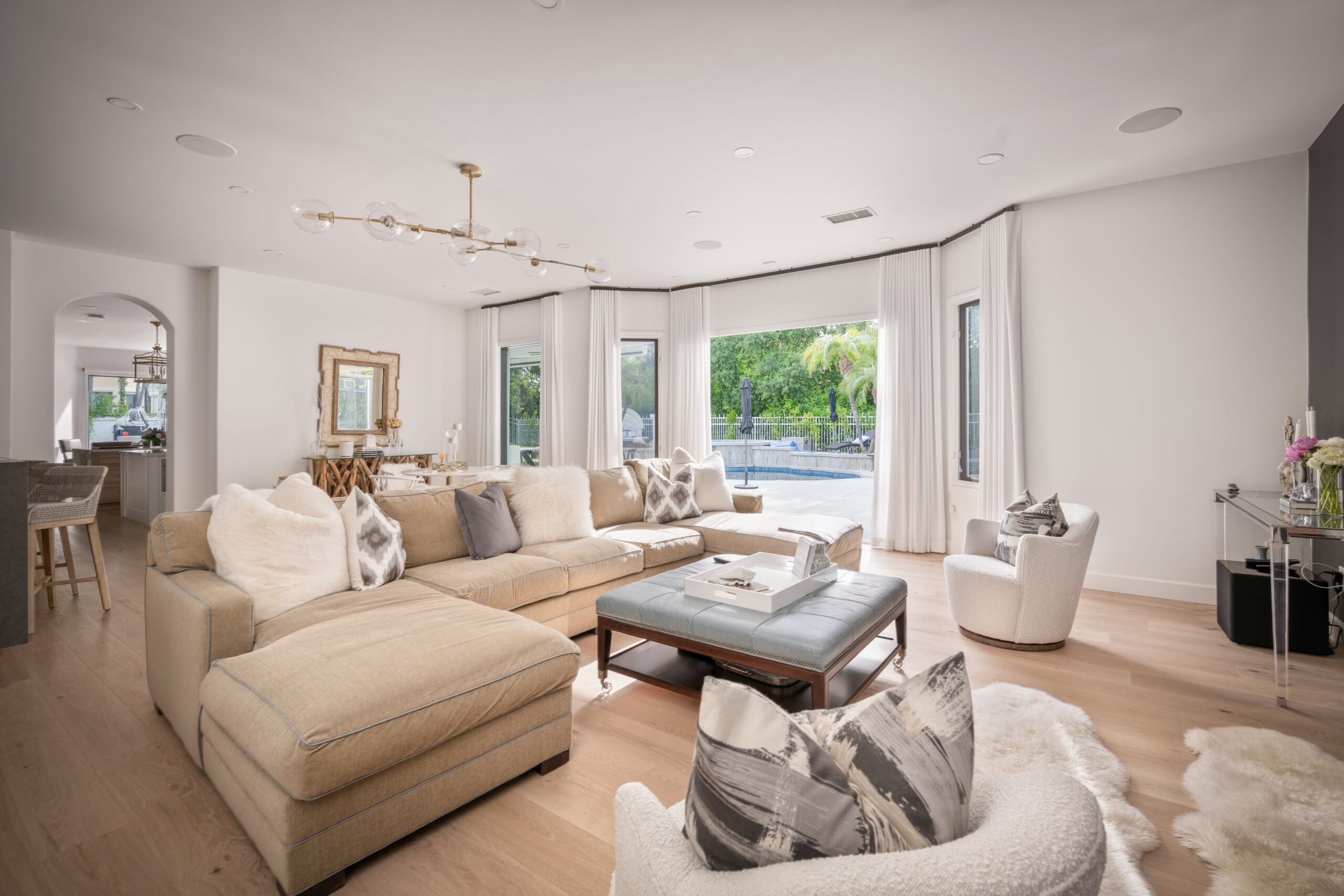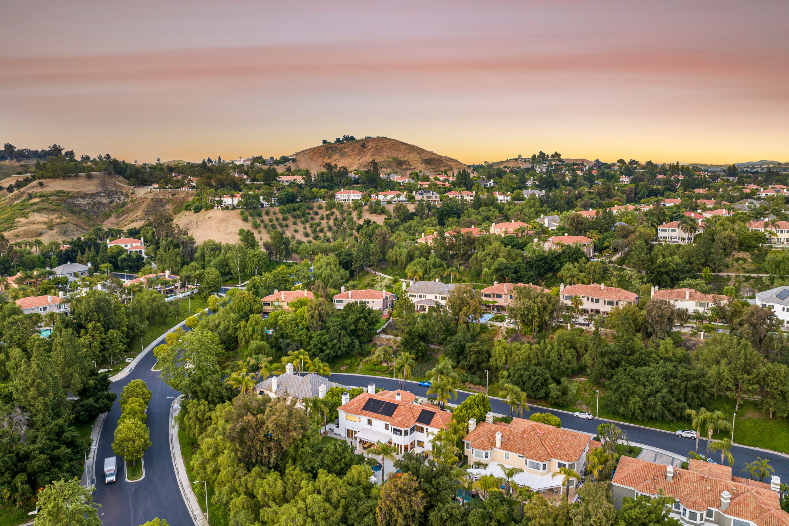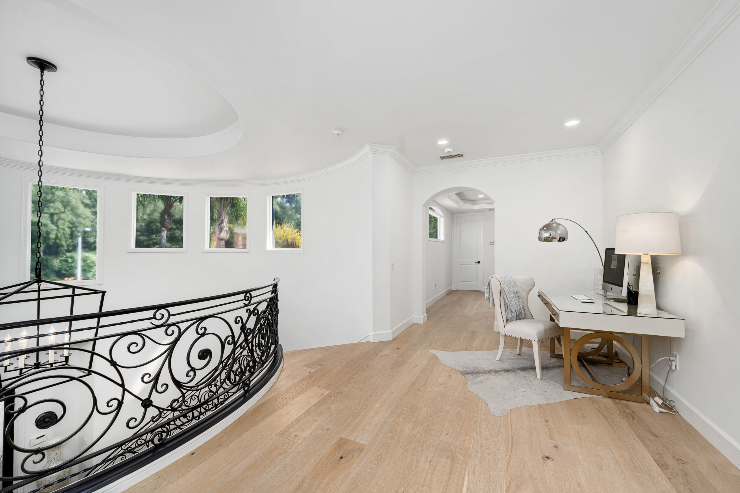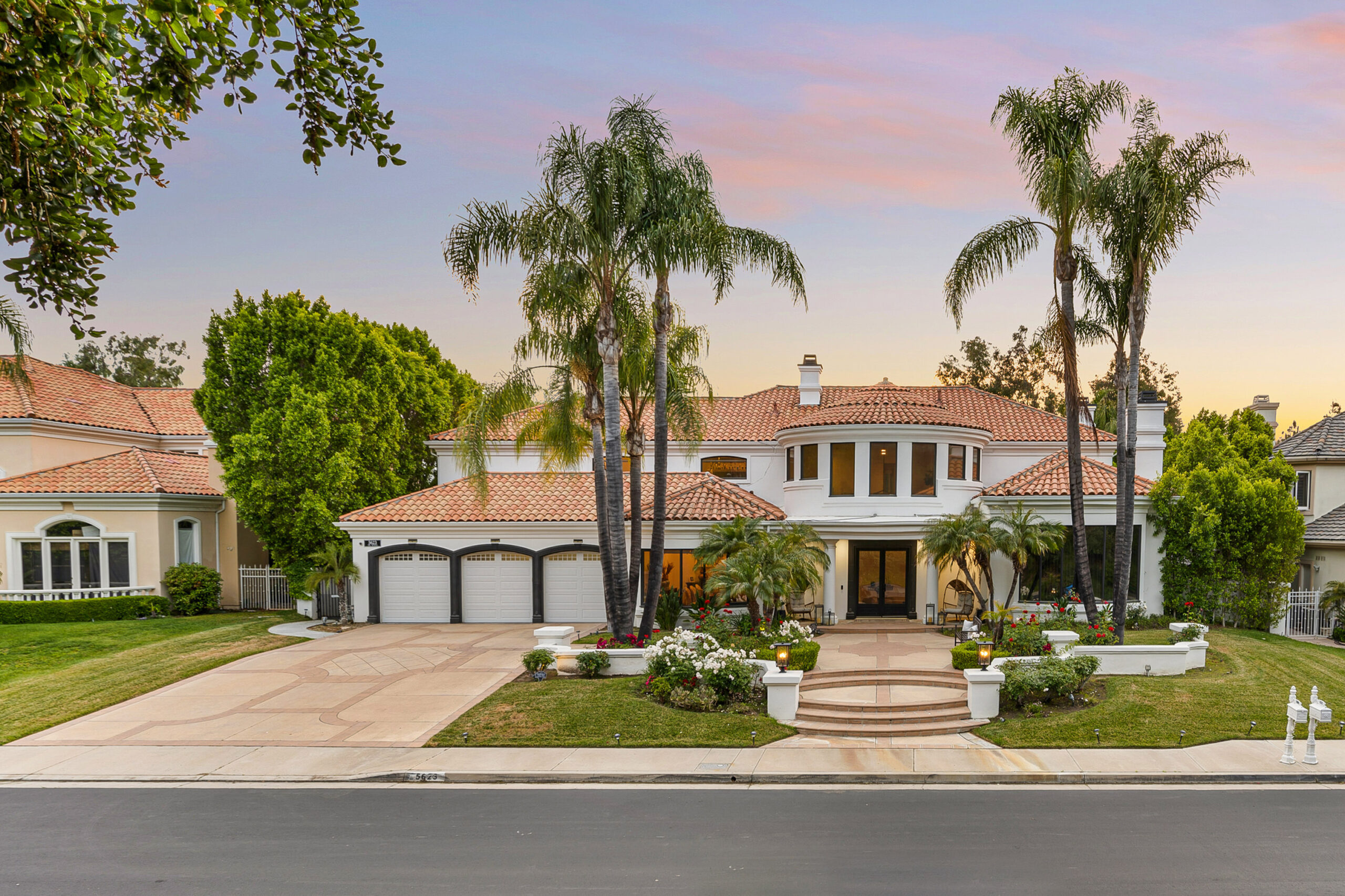 Fully remodeled custom contemporary mediterranean home on a quiet cul-de-sac in guard-gated Mountain View Calabasas. This 6 bed 7 bath home is elegantly appointed with the finest of finishes and an open floor plan designed for sophistication and functionality. Enter through the grand foyer, anchored by a sculptural staircase and windows which bathe the home in natural light. An exceptionally scaled great room is lined with windows and accordion doors and flows into the oversized kitchen which boasts custom cabinetry, Miele appliances, stone counters, duel islands, large walk-in and butler's pantries, & an eating area. The primary suite is complete with two oversized custom closets, massive steam shower, soaking tub, and fireplace. Three additional ensuite bedrooms and a media area complete the upper level. The lushly landscaped grounds create privacy and serenity amongst the open seating, outdoor bbq/kitchenette, basketball court, putt putt area, and a resort style pool and spa. Additional amenities include a bar area, gym, theater, 3 car garage wired with EV, surround sound system, and a short walk to community tennis courts. Also available for lease.