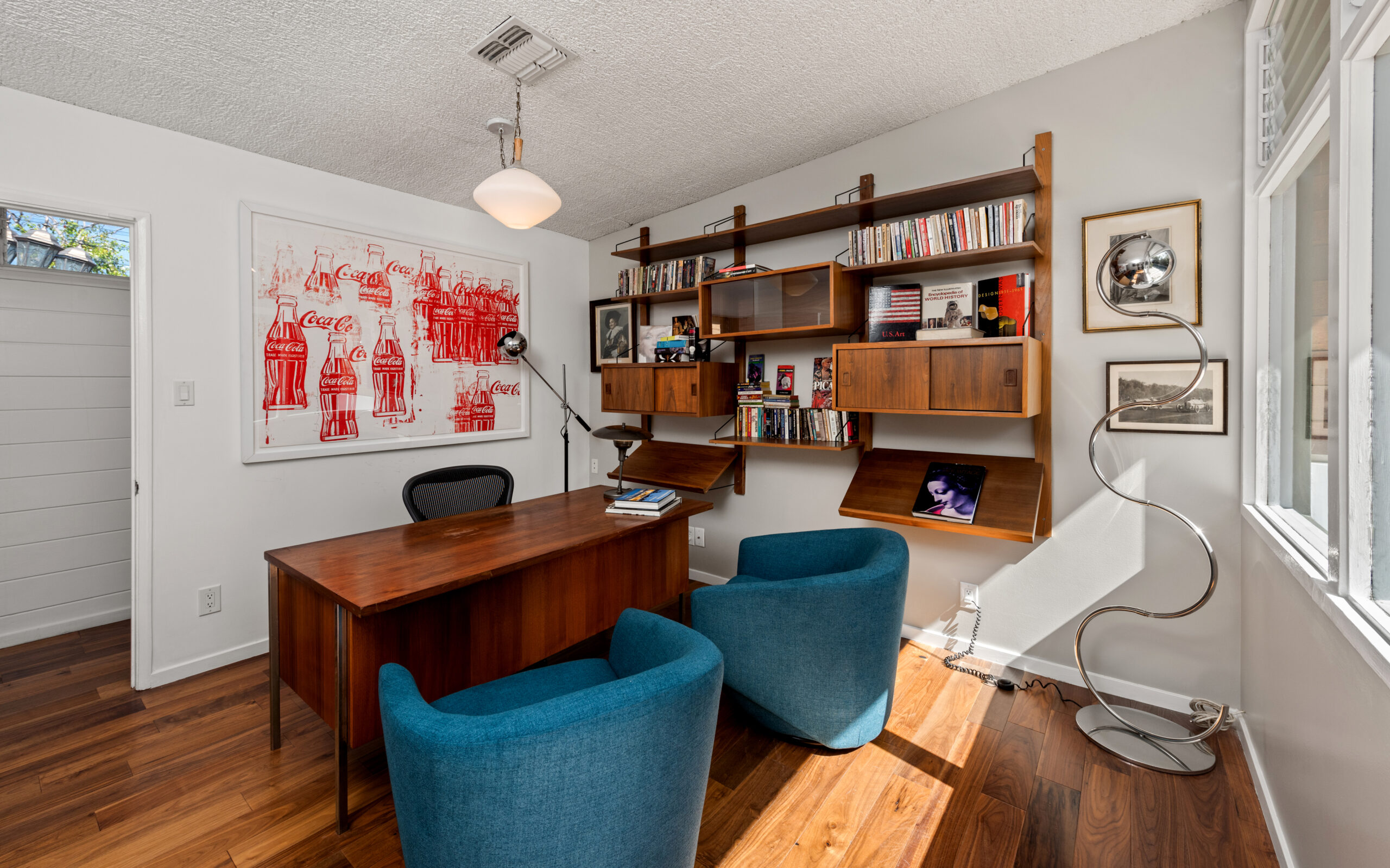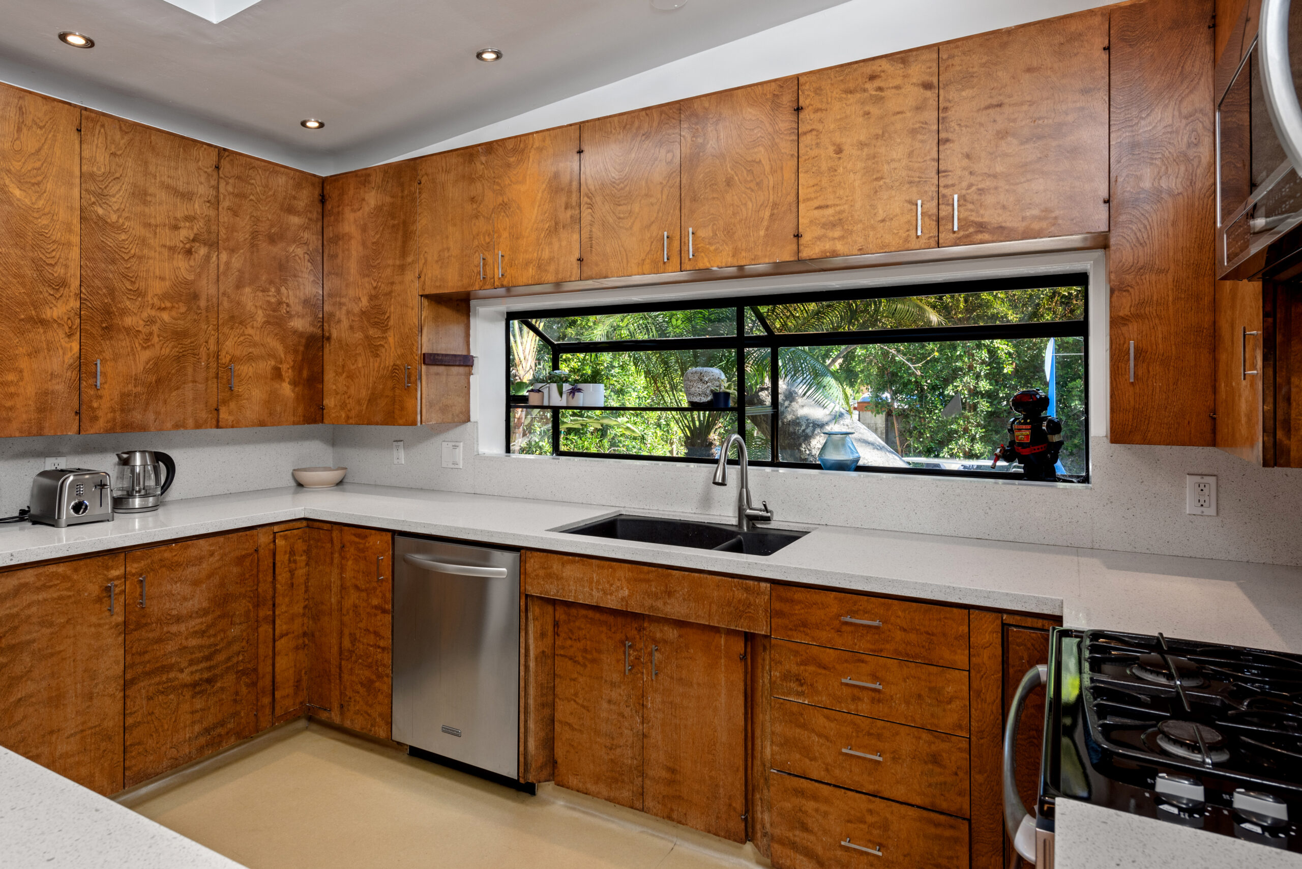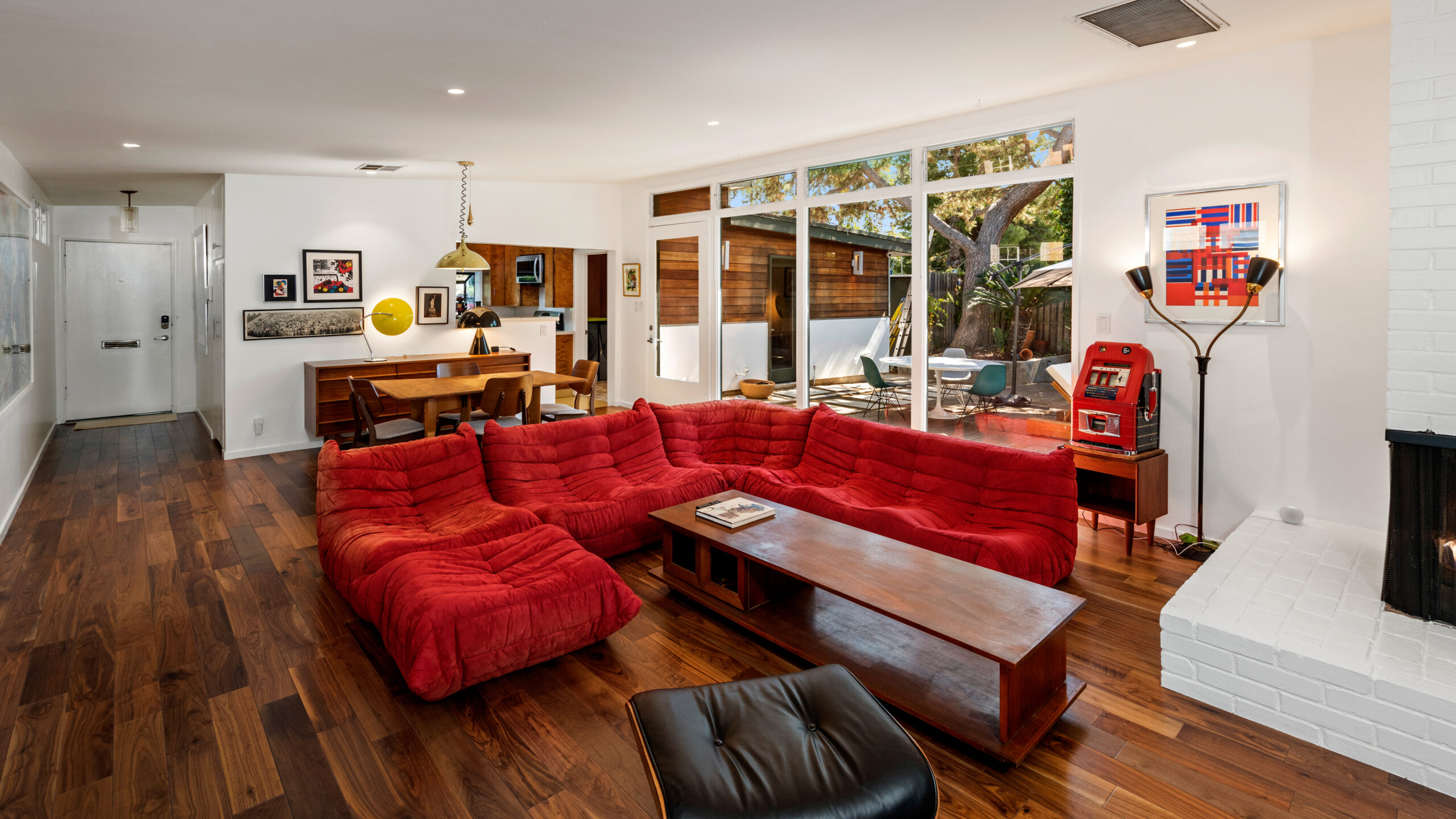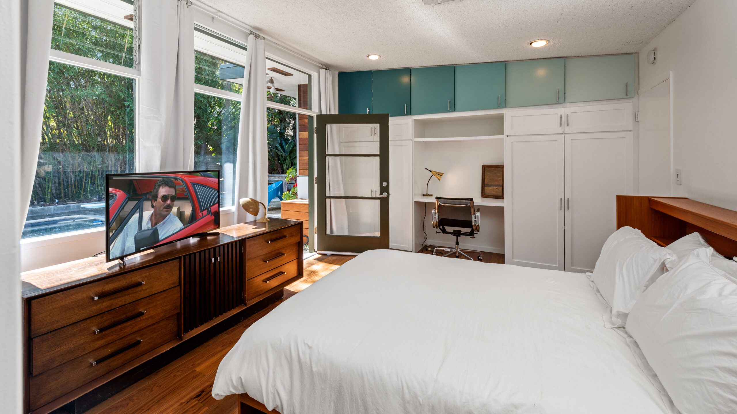 Experience the charm of this impeccably designed 3-bedroom, 2-bathroom Mid Century residence nestled on a spacious lot with a large pool in a prime North Hollywood. Set behind tall ficus, Fully private from the street discover this serene retreat boasting vintage architectural accents seamlessly blended with modern upgrades. Flooded with natural light, the airy living/dining area connects effortlessly to the well-appointed kitchen featuring vintage cabinetry, upgraded appliances, and a sunny bay herb growing window. Each bedroom offers direct access to the lush yard large pool with a baja shelf and desirable diving board, embraced by an ipe wood deck and verdant foliagean ideal setting for outdoor gatherings. The tranquil primary suite boasts generous closets and a renovated bathroom adorned with a skylight and designer touches. With off-street parking, a separate laundry room, and a garage for added convenience, this home epitomizes the quintessential California lifestyle you've been longing for.