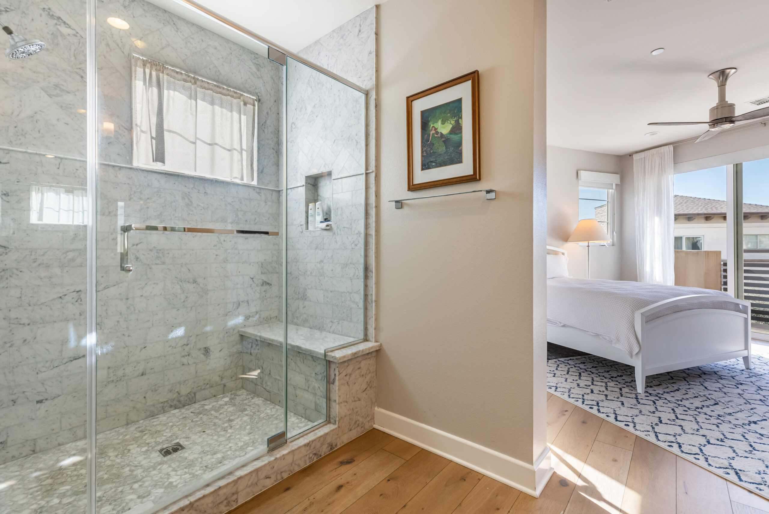 This stunning home welcomes you with an open floor plan designed for effortless living. Consider your lounge level perfect for entertaining, featuring expansive living and dining areas that flow seamlessly to a private balcony-ideal for morning coffee or evening relaxation. The gourmet kitchen is beautifully appointed with top-of-the-line appliances, an oversized island, and ample space to gather. The primary suite is a serene sanctuary, filled with natural light and offering a spa-like ensuite bath, a spacious closet, and private balcony access with picturesque courtyard and bluff views. Outdoor living is just as exceptional, with a built-in BBQ, fire pit with seating, and multiple spaces to gather with loved ones. Additional highlights include wood flooring throughout, generous guest bedrooms, a dedicated office nook, powder room, laundry room, solar panels, a two-car garage, and extra guest parking. Located in the heart of Silicon Beach, just moments from Whole Foods, shops, dining, parks, and entertainment, this Playa Vista gem perfectly blends coastal charm with modern convenience.