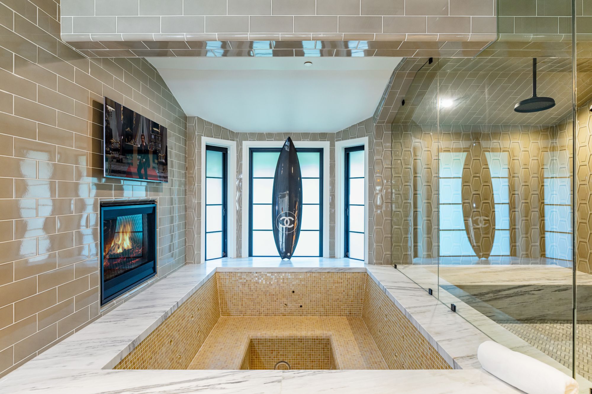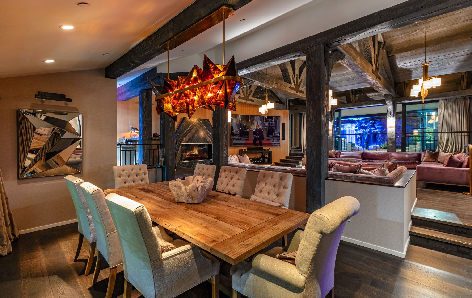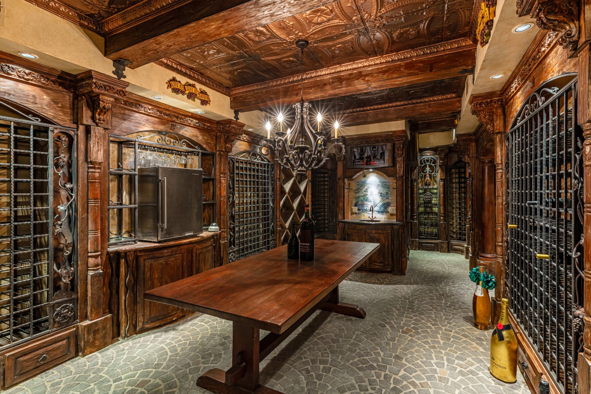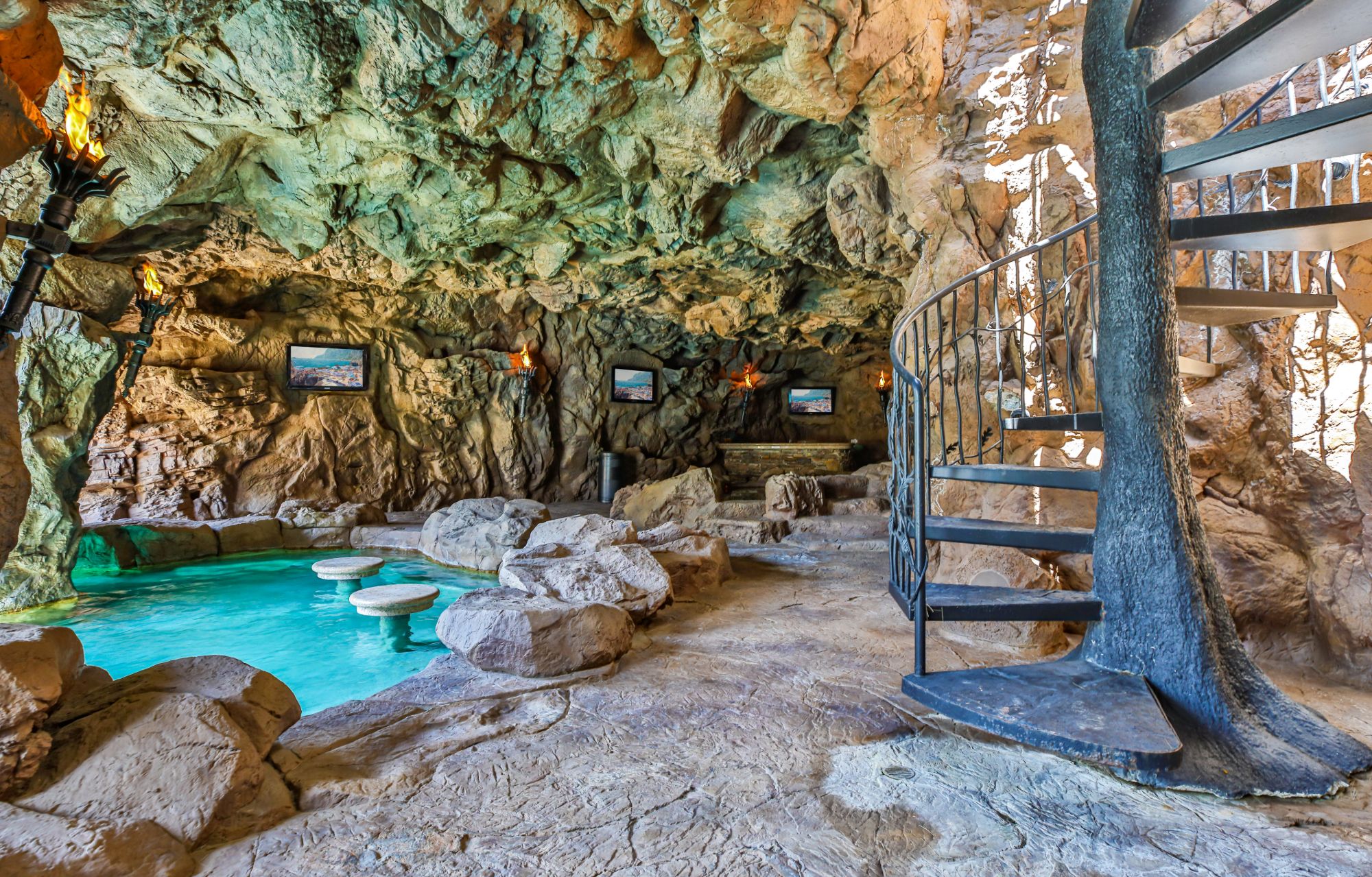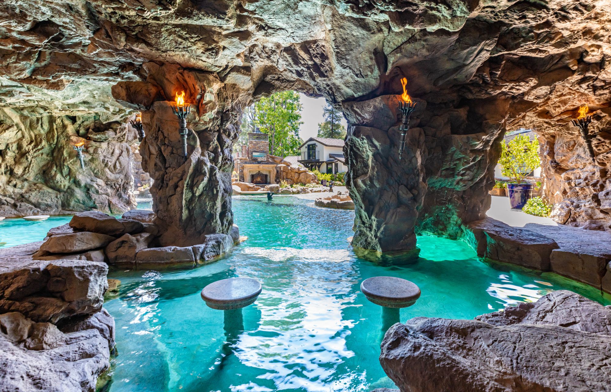 The Yolo Estate—a jaw-dropping 3 acre resort-style home tucked away in the ultra-exclusive, guard-gated enclave of Hidden Hills. Set on a private cul-de-sac & surrounded by equestrian trails, this English Tudor is the perfect blend of rustic charm & modern convenience. The 12,500SF home features coffered & beamed ceilings, 6 fireplaces & an exquisite wine cellar w/separate tasting room. A wood-paneled bookshelf opens to reveal a nearly 2,000SF primary suite w/luxurious partners spa ft. marble surrounded soaking tubs & dual vanities. Retreat to your private oasis boasting massive swimming pool w/spa grotto, swim-up bar, cascading waterfalls, an 80ft-long rock waterslide & surrounded by TVs to watch the big game or enjoy a float-in movie. Estate also offers a champion tennis/basketball court, sand volleyball court, horse stable & equestrian ring, a mechanical riding bull & 25-seat theater. Have every amenity at your fingertips while you live & entertain in this star-studded community.