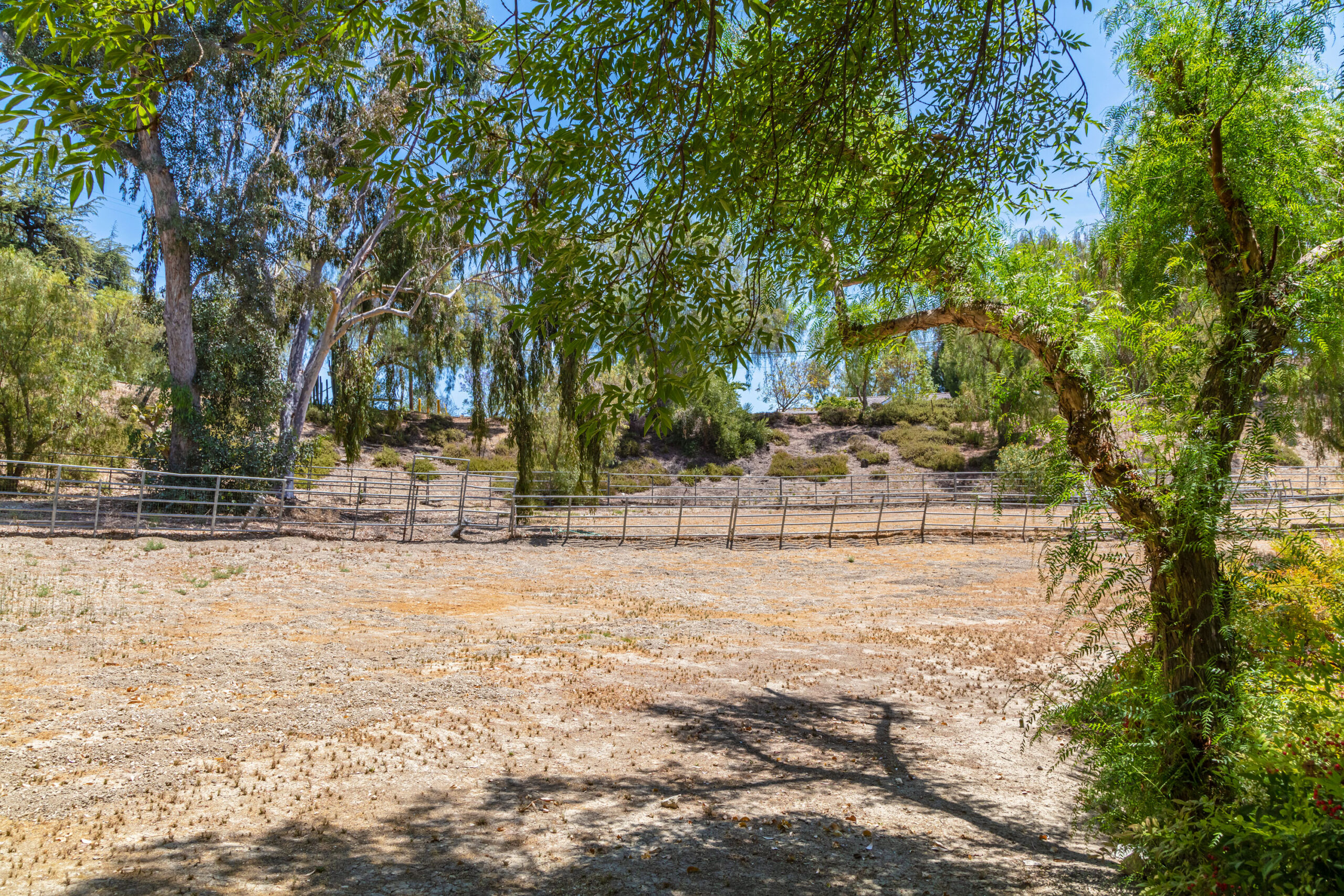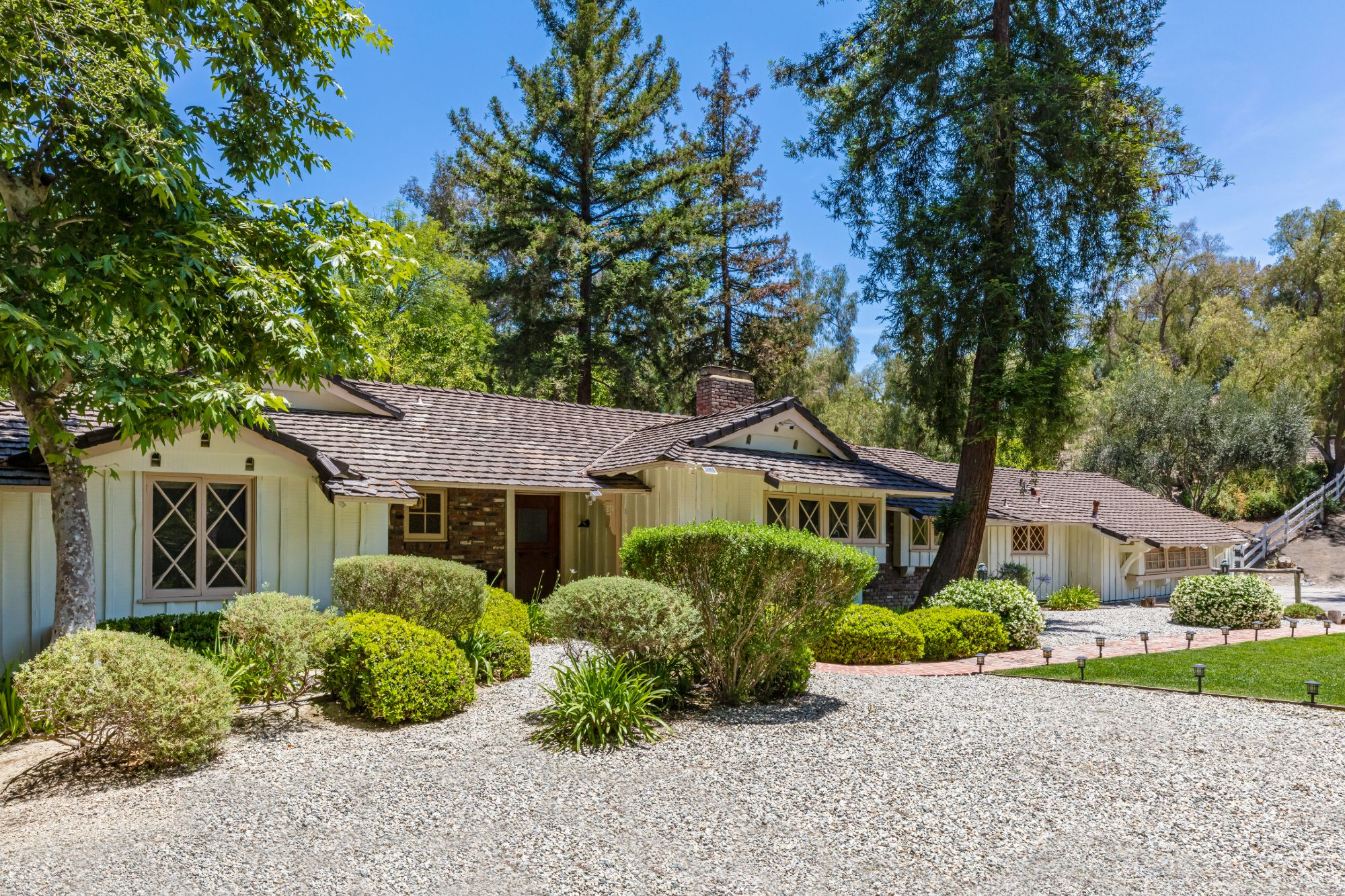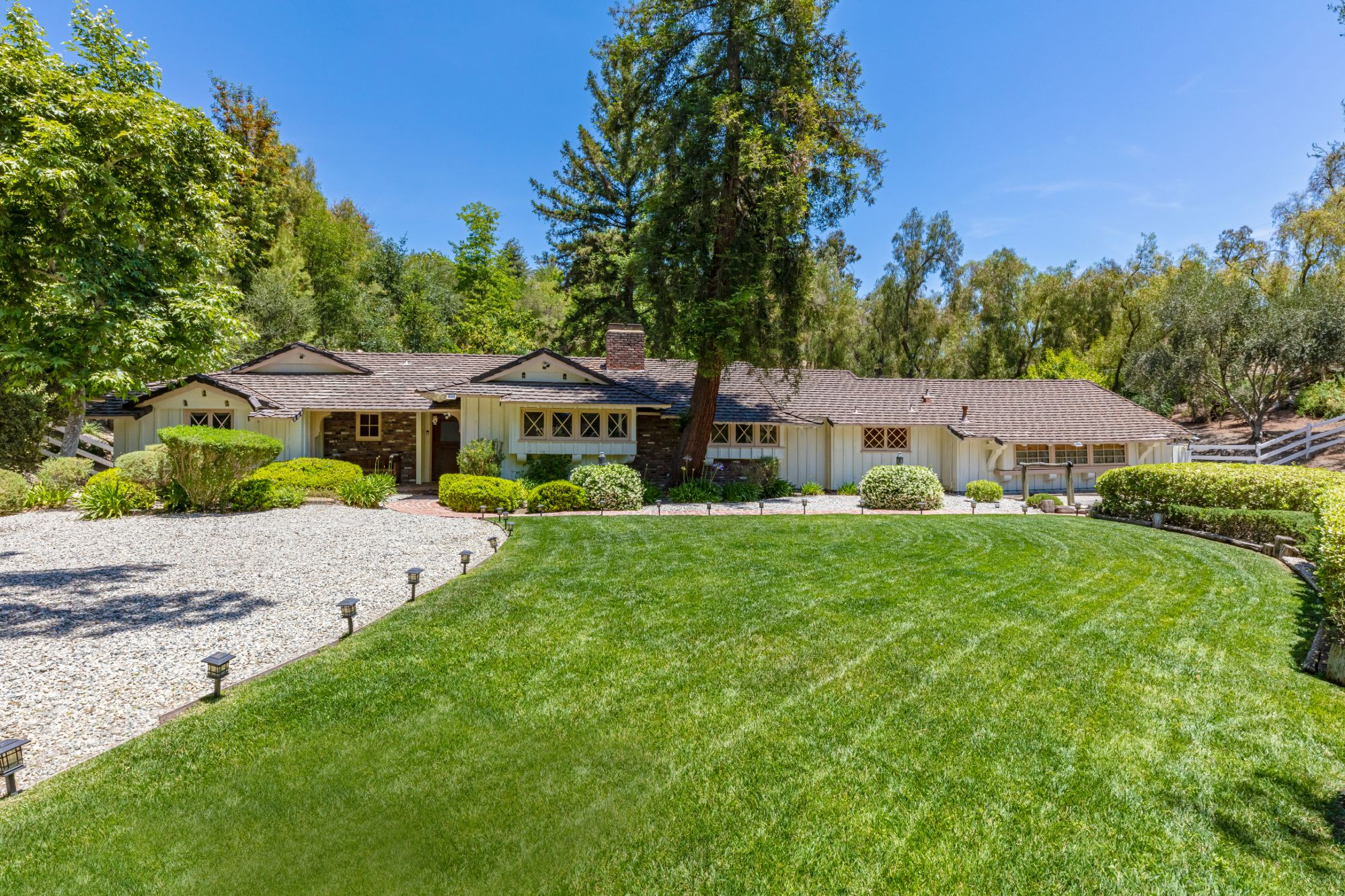 This charming ranch-style home is nestled on 2 serene acres filled with mature pine, sycamore, pomegranate, citrus, and California pepper trees. Privately located at the end of a secluded cul-de-sac within the prestigious, guard-gated Hidden Hills community, the property offers a peaceful, natural setting. The 3-bedroom, 3-bathroom residence features rustic touches throughout, including vaulted and exposed beam ceilings and a large antique brick fireplace in the living room. Expansive outdoor entertaining areas include a lush front yard and a vast backyard with a private horse trail. Just a short walk away are the community's pool, tennis courts, sports court, and theater allowing you to fully enjoy the Hidden Hills lifestyle. Ideal for end users looking to create their dream home or investors seeking a prime redevelopment opportunity.