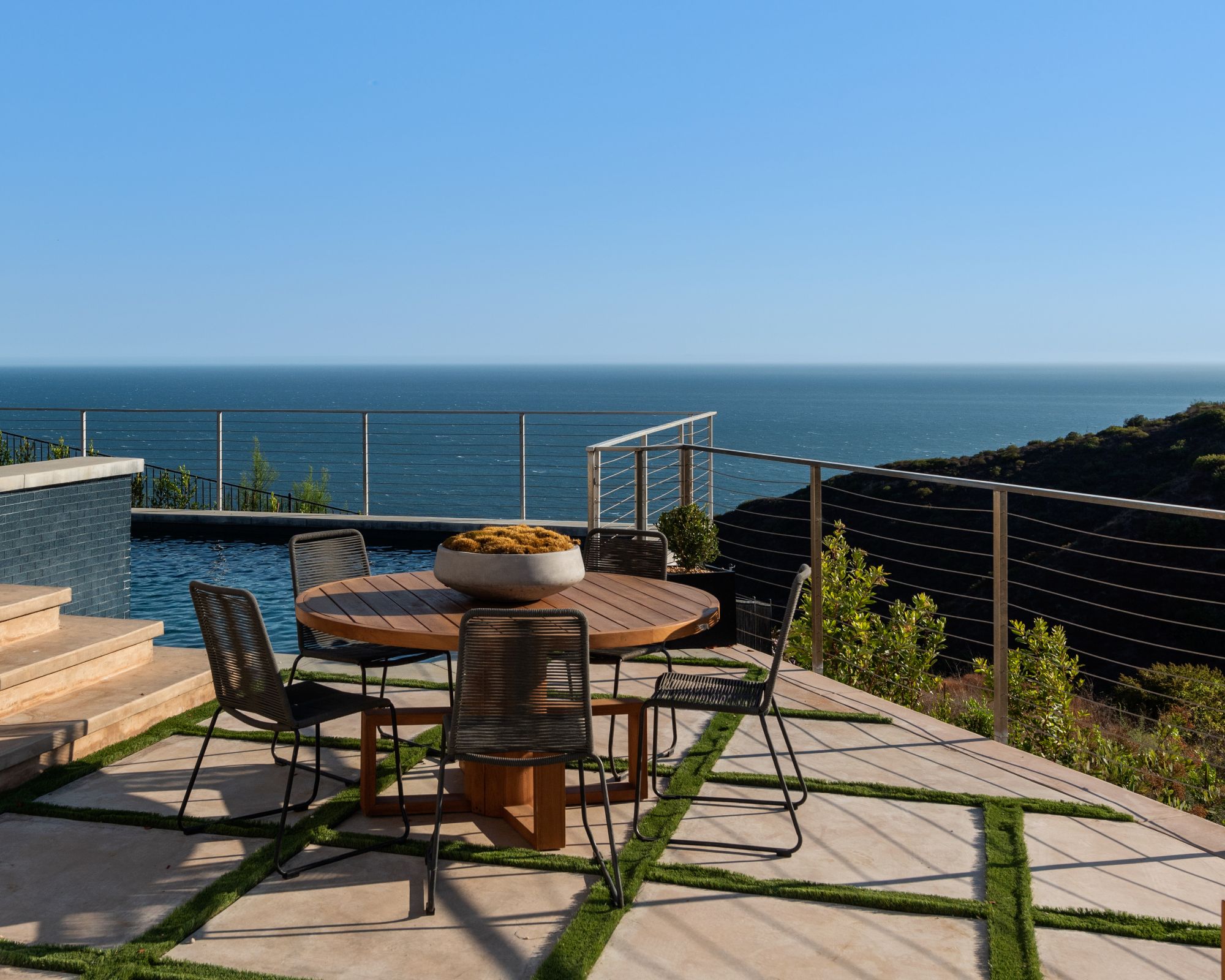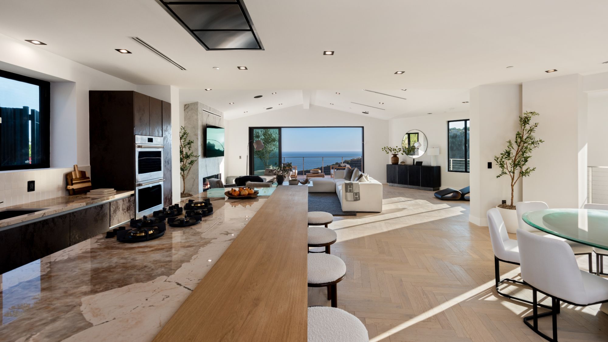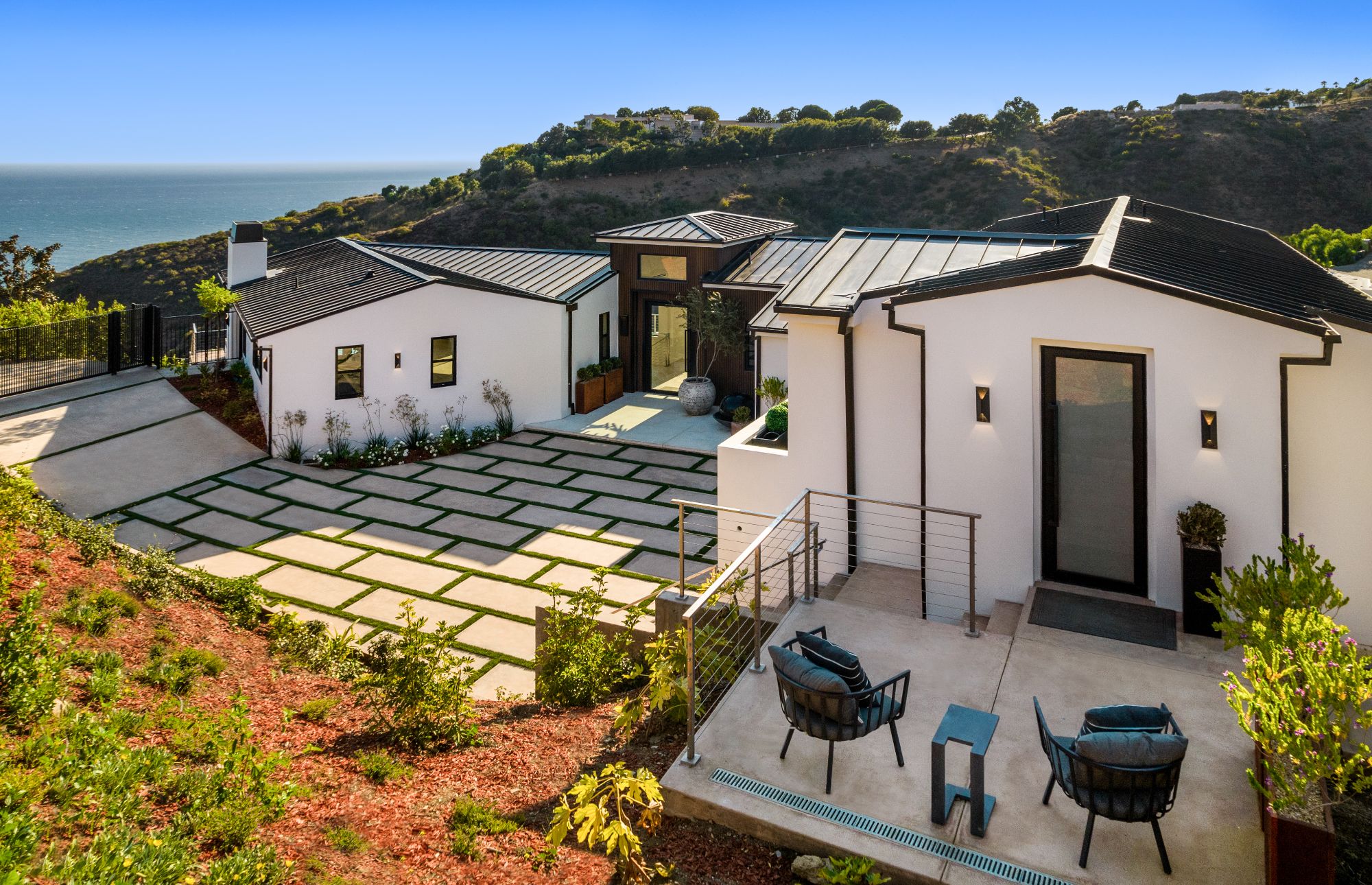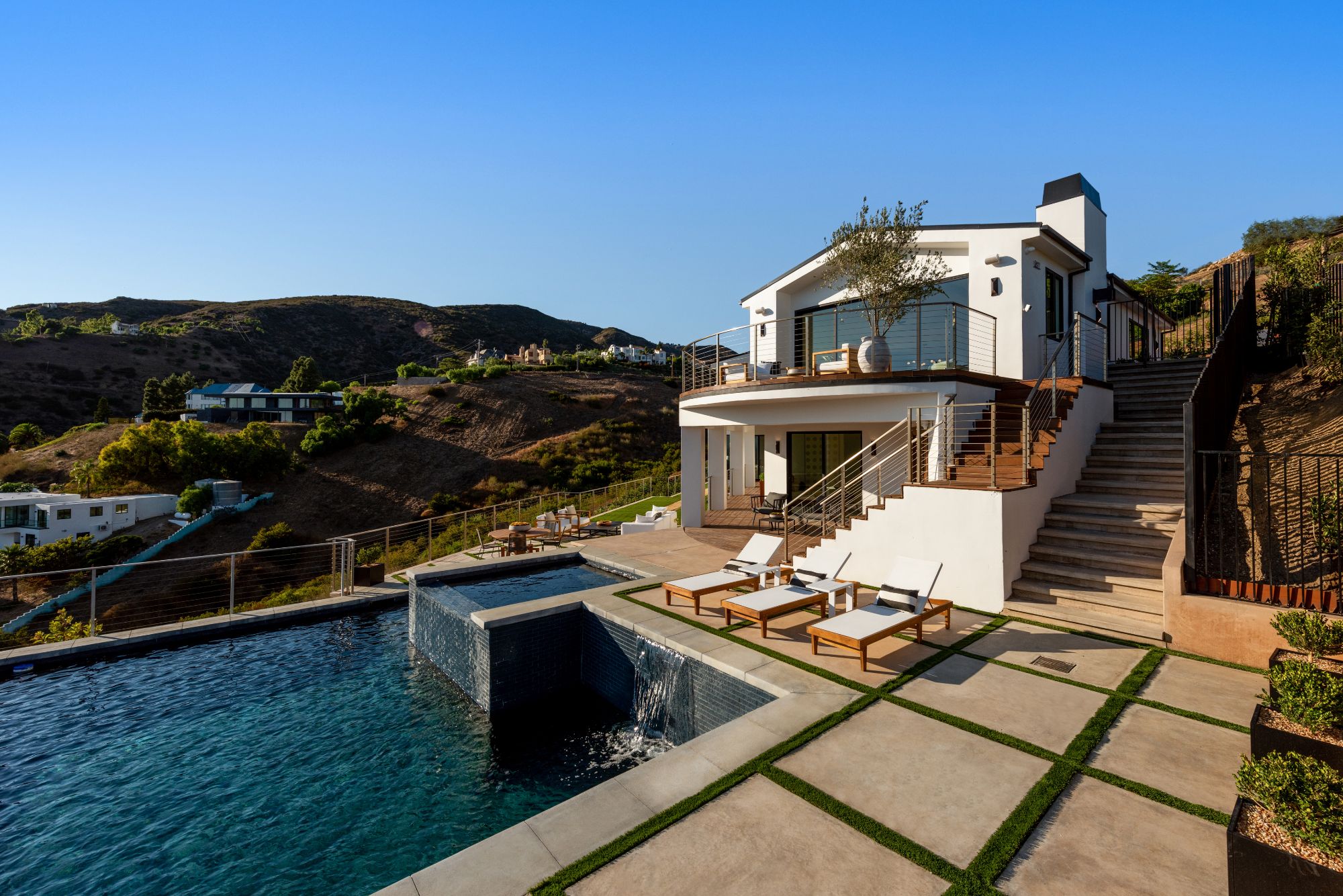 Perched atop a pristine acre in the heart of Malibu, this newly constructed modern estate with whitewater views redefines coastal luxury. Upon arrival, you are greeted by a long, gated driveway leading to a grand entrance, where one is greeted with an IPAE Brazilian wood entry. Opening to an expansive open floor plan that artfully connects the kitchen, dining, and family room area. Framed by floor-to-ceiling glass walls, this space offers captivating ocean vistas that serve as the perfect backdrop for sunset gatherings. Boasting two state-of-the-art Bauformat kitchens adorned with high-end Dektone countertops, and fitted with a plum wine dispenser, catering to both everyday living and gourmet culinary experiences. The luxurious primary suite offers sweeping ocean views, a spa-like primary bathroom complete with rainfall shower head and dual closets. The adjoining one-bedroom, one-bathroom guest house offers privacy and modern amenities. Outdoor living is an experience unto itself, with a large swimming pool and spa offering endless relaxation and landscaping. Every detail has been meticulously designed to elevate your living experience. Offering the perfect blend of privacy, security, and stunning natural beauty, this Malibu masterpiece invites you to step into a world where every moment is framed by breathtaking views and extraordinary design. Built in 2024, this Malibu sanctuary masterfully combines sophistication and tranquility, inviting you to experience a lifestyle of unmatched elegance and comfort.