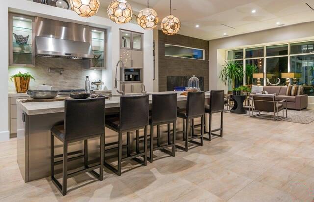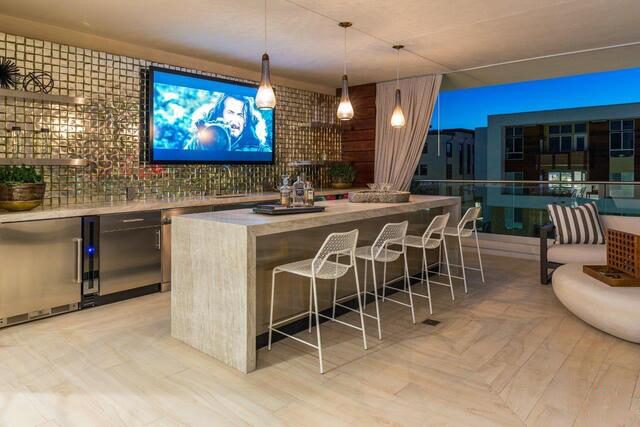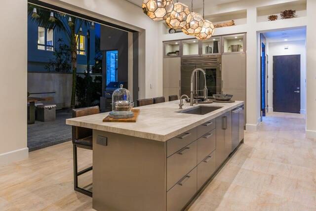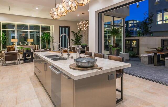 A former Jewel Model home, 5900 Village is unparalleled in Silicon Beach with the level of finish and design. An open floor plan creates a perfect flow between the great room and the fully appointed kitchen complete with Miele appliances, 48" Sub Zero refrigerator & stunning Taj Mahal Leather counters. The show stopping entertainer's wine room showcases backlit quartz along with 4 Miele Wine Coolers - The only one of its kind in Playa Vista. Venture up to the second floor where three bedrooms are situated around an open lounge area. The Master Suite impresses with two walk in closets, a walk out deck, and Master Bath escape with dual sinks, walk in shower, and free standing tub. An open and airy 3rd floor loft space leads to a fully loaded covered deck. A stunning office rounds out the floor with glass style barn doors, and Lux-Guyana gloss wall paneling. This one of a kind showcase home has too many features to mention.
