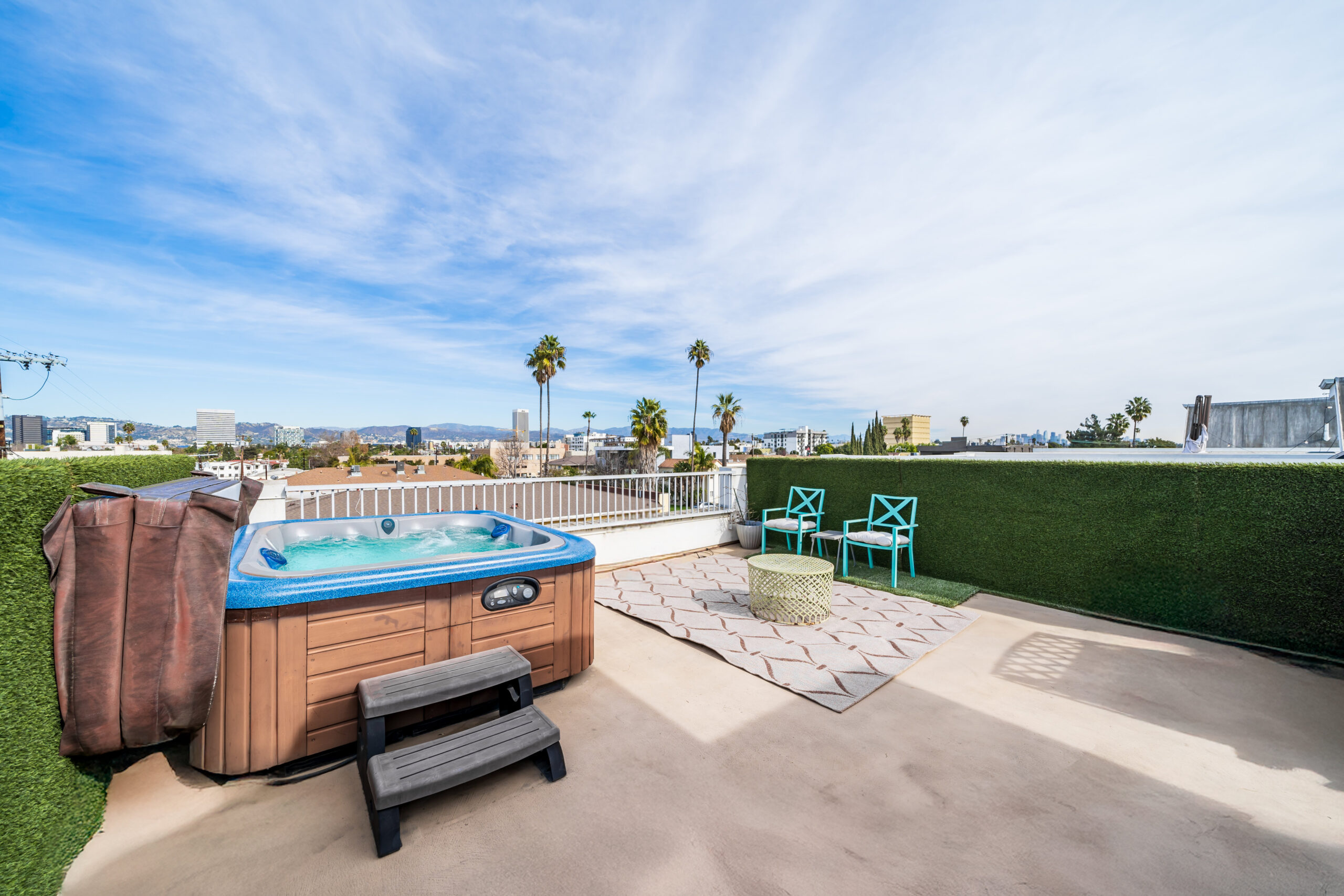 Discover modern living at its finest with this stunning 2,000-square-foot home in the highly sought-after Faircrest Heights neighborhood. Boasting 4 bedrooms and 3 bathrooms, this contemporary masterpiece offers the perfect blend of style, space, and functionality. The exterior makes a bold statement, featuring clean lines, oversized windows, and high ceilings. Sunlight floods the open-concept living spaces, highlighting the upscale finishes that define every corner of this home. The kitchen features Caesarstone countertops, sleek glass-front cabinetry, self-closing drawers, and a walk-in pantry. Outfitted with GE stainless steel appliances, it's perfect for everything from casual meals to gourmet creations. The bathrooms are equally impressive, with luxurious touches like tiled surrounds and double vanities in the primary suite's spa-inspired ensuite. At the top of the home, a 400-square-foot rooftop deck with a hot tub awaits a true entertainer's paradise with panoramic city and mountain views. Additional conveniences include a private two-car garage + Driveway to 50 AMP Electrical Panel ready for an electric car. This home has NO HOA, for greater freedom and flexibility. Nestled in a warm and welcoming community, this home offers the perfect balance of tranquility and accessibility to everything West LA has to offer. Additional features: Pre-wired for Solar Panels.