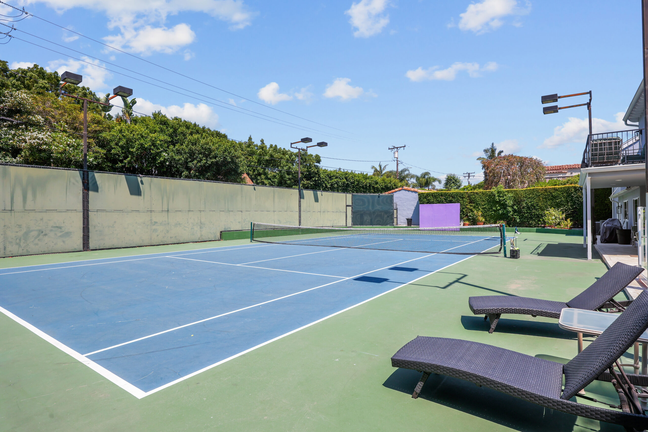 Come stay in a one-of-a-kind furnished luxurious estate in The Beverly Hills Flats! This updated property boasts Sub-Zero appliances, new cabinets, hardwood floors throughout and has a regulation sized tennis court! With two living rooms, there is endless space for relaxation and indoor outdoor living. Enjoy the resort-like backyard featuring a private pool with a glass enclosure for safety, a hot tub, a poolside lounge area, tanning beds, and a regulation-size tennis court. The loggia with a fire pit and a den that opens to create an indoor-outdoor living experience add to the charm. The beautiful Master Suite includes a King bed, lounge furniture, an indoor fireplace, and a private balcony overlooking the beautiful backyard and tennis court. There are an additional 3 bedrooms upstairs, all en suite.This property perfectly combines space and comfort and is located within minutes from all the shops on Rodeo Dr., Beverly Hills Schools, world class restaurants and Cedars-Sinai Medical Center. Available furnished and unfurnished.