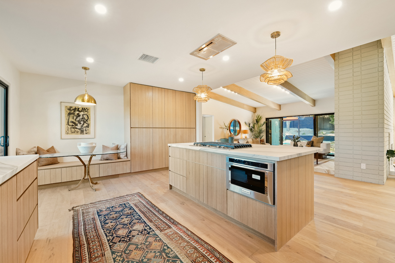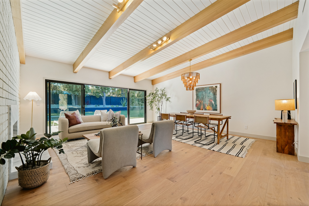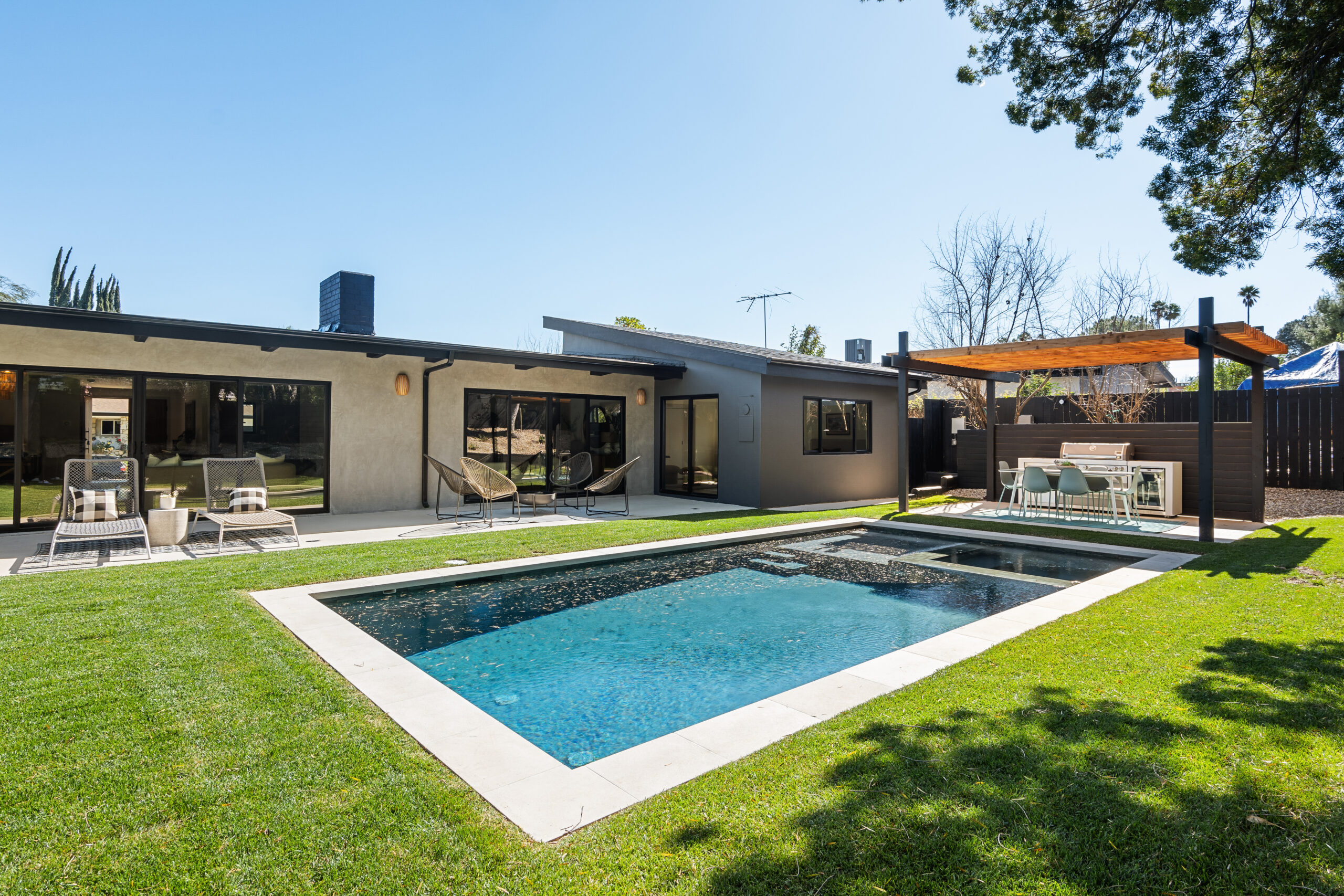 Welcome to this impeccably reimagined Mid-Century Modern masterpiece designed by renowned architect Charles Du Bois in the heart of Woodland Hills, where timeless design meets contemporary luxury. Nestled on an expansive 11,000 sq ft lot, this nearly 2,900 sq ft showpiece offers 4 bedrooms, 3 bathrooms, and the ultimate indoor-outdoor lifestyle.Step inside to a sun-drenched open floor plan, where soaring vaulted ceilings with exposed wood beams, designer lighting, and a striking double-sided fireplace create an inviting ambiance. The chef's kitchen is a dream, featuring state-of-the-art appliances, sleek marble countertops, and custom cabinetry perfect for both everyday living and entertaining.The primary suite is a private oasis, complete with a spa-inspired en-suite bath and a generous walk-in closet, while the additional bedrooms provide comfort, style, and versatility. Outside, your personal paradise awaits with a brand-new resort-style pool, an outdoor kitchen beneath a covered patio, and a lush, private grassy yard offering the ideal setting for gatherings, relaxation, and play.Perfectly positioned near Calabasas' premier shopping and dining and within a top-rated school district, this rare gem seamlessly blends luxury, location, and lifestyle. Don't miss your chance to own a one-of-a-kind retreat that truly has it all!
