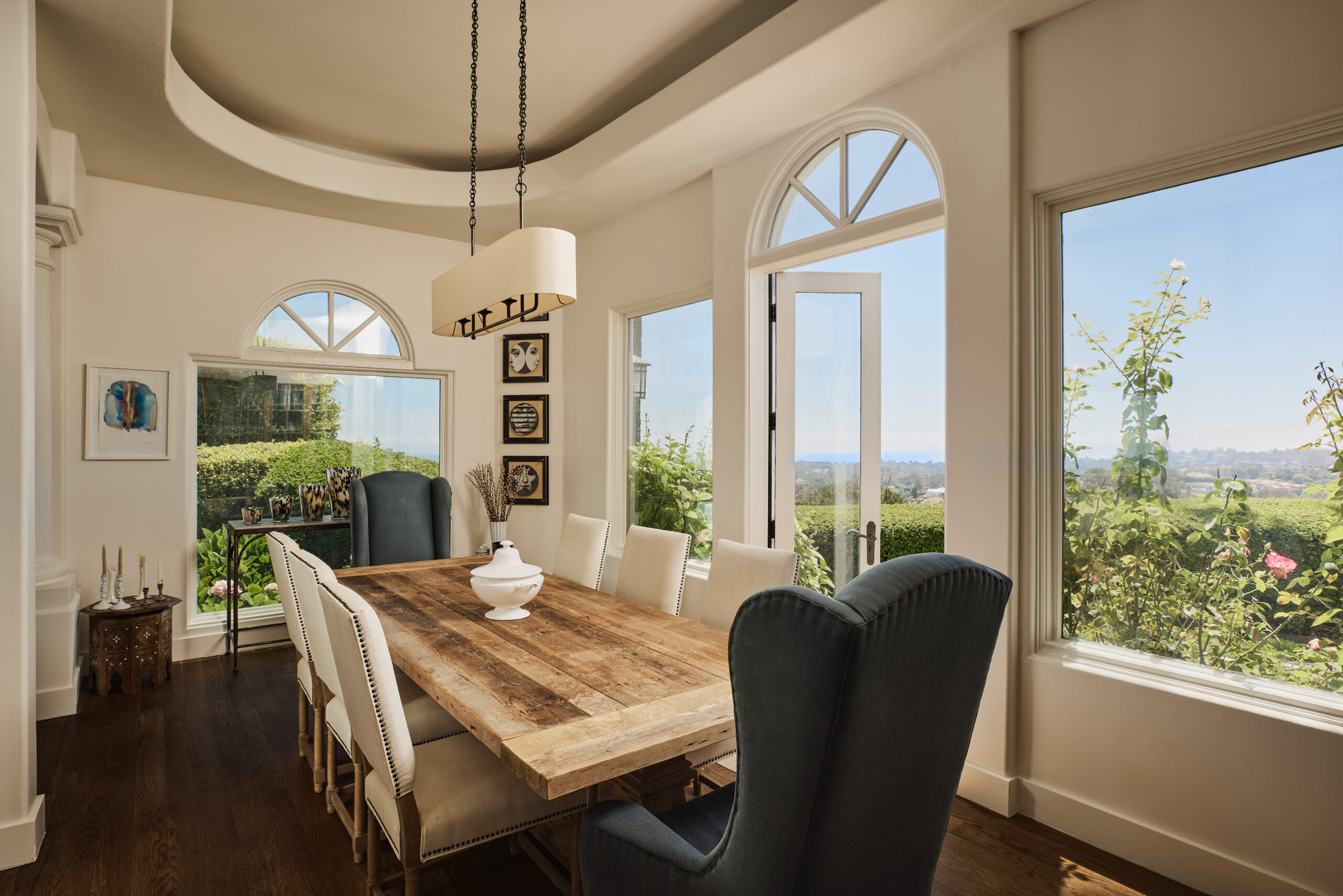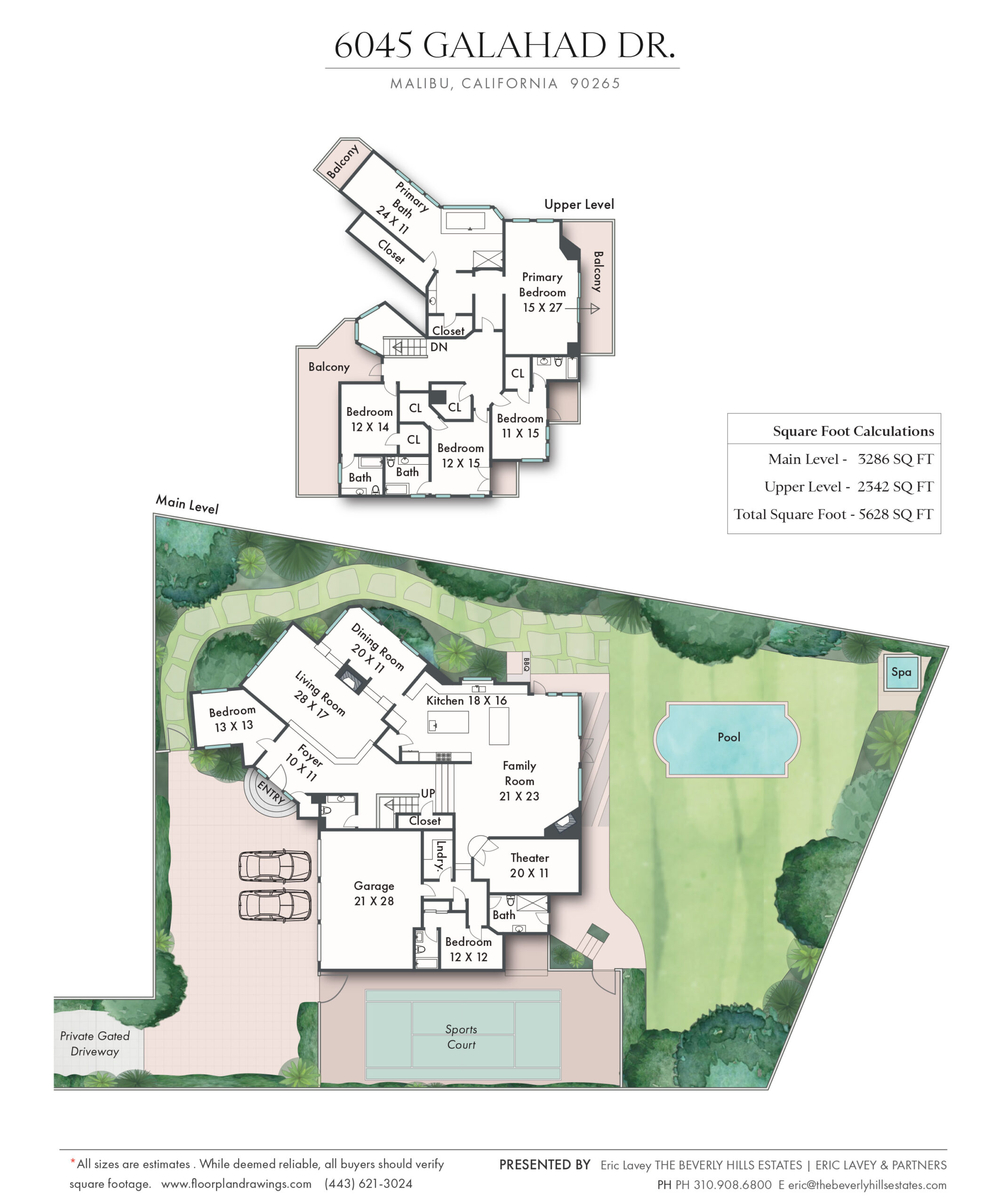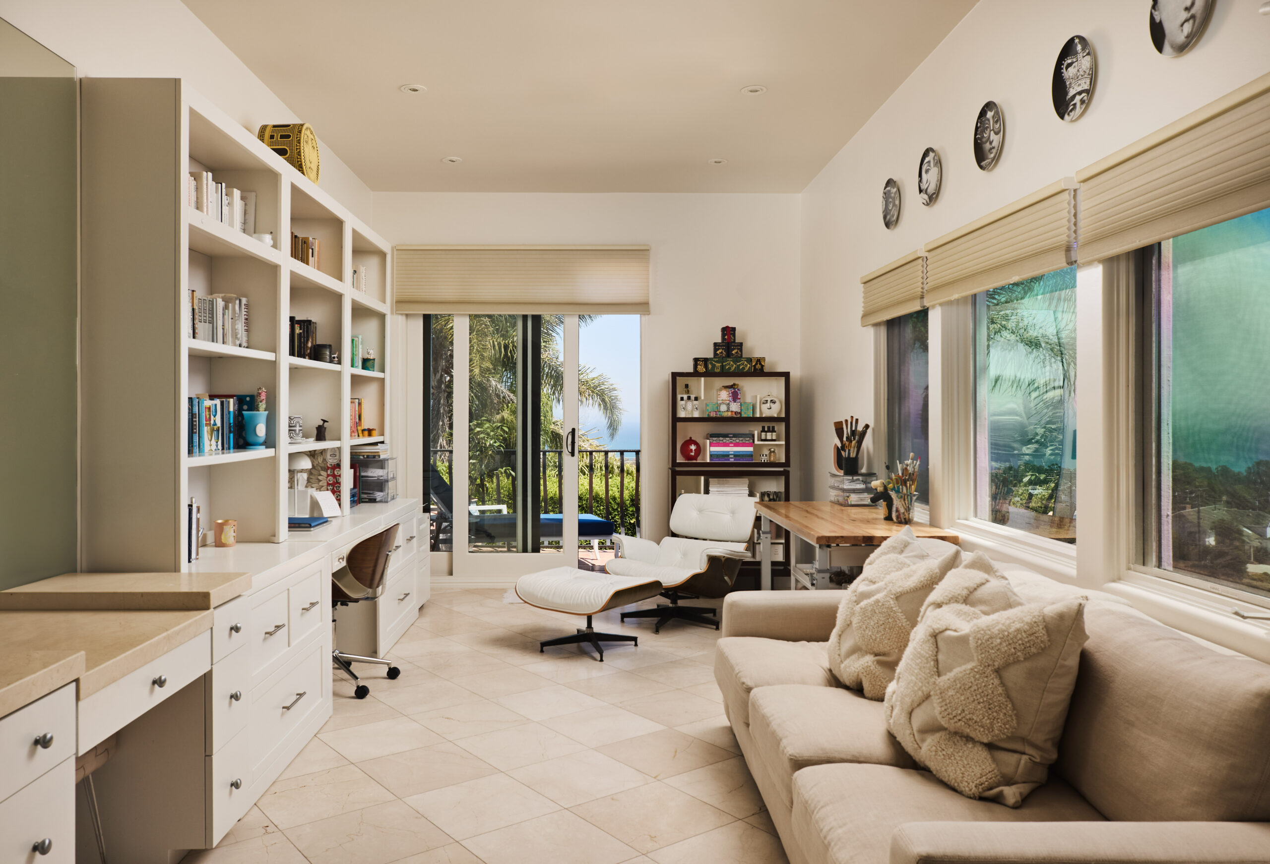 Tucked behind gates at the end of a long, privacy hedge-lined driveway, 6045 Galahad sits on over half an acre of mostly level grounds with a prime vantage above Malibu's iconic Point Dume. Nearly 200 degrees of Pacific ocean views take in the coves of Point Dume and the secluded sands of Little Dumeknown for their clear waters, rugged cliffs, and memorable surf. A quick golf cart ride to the beach, this modern Mediterranean property features a large flat pad with a pool framed by panoramic ocean vistas, a motor court for up to eight cars, and a three-car garage. Inside, 5 ensuite bedrooms (4 up/1 down) a dedicated large office, a dedicated theater room, with light-filled, voluminous social zones opening to terraces, a lighted pickleball court, and manicured lawns around a large pool perfectly designed for the idyllic California coastal lifestyle.