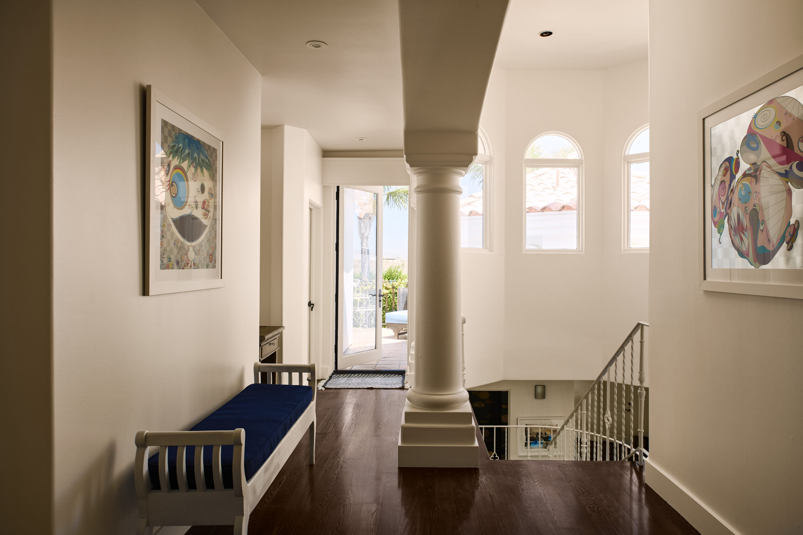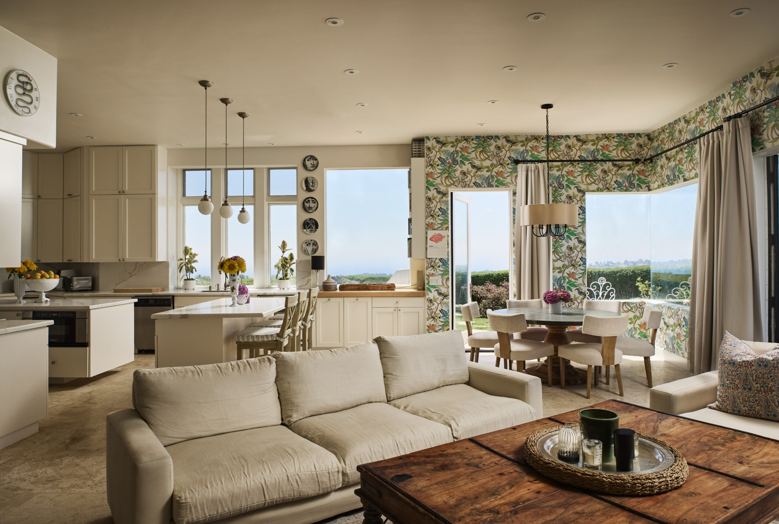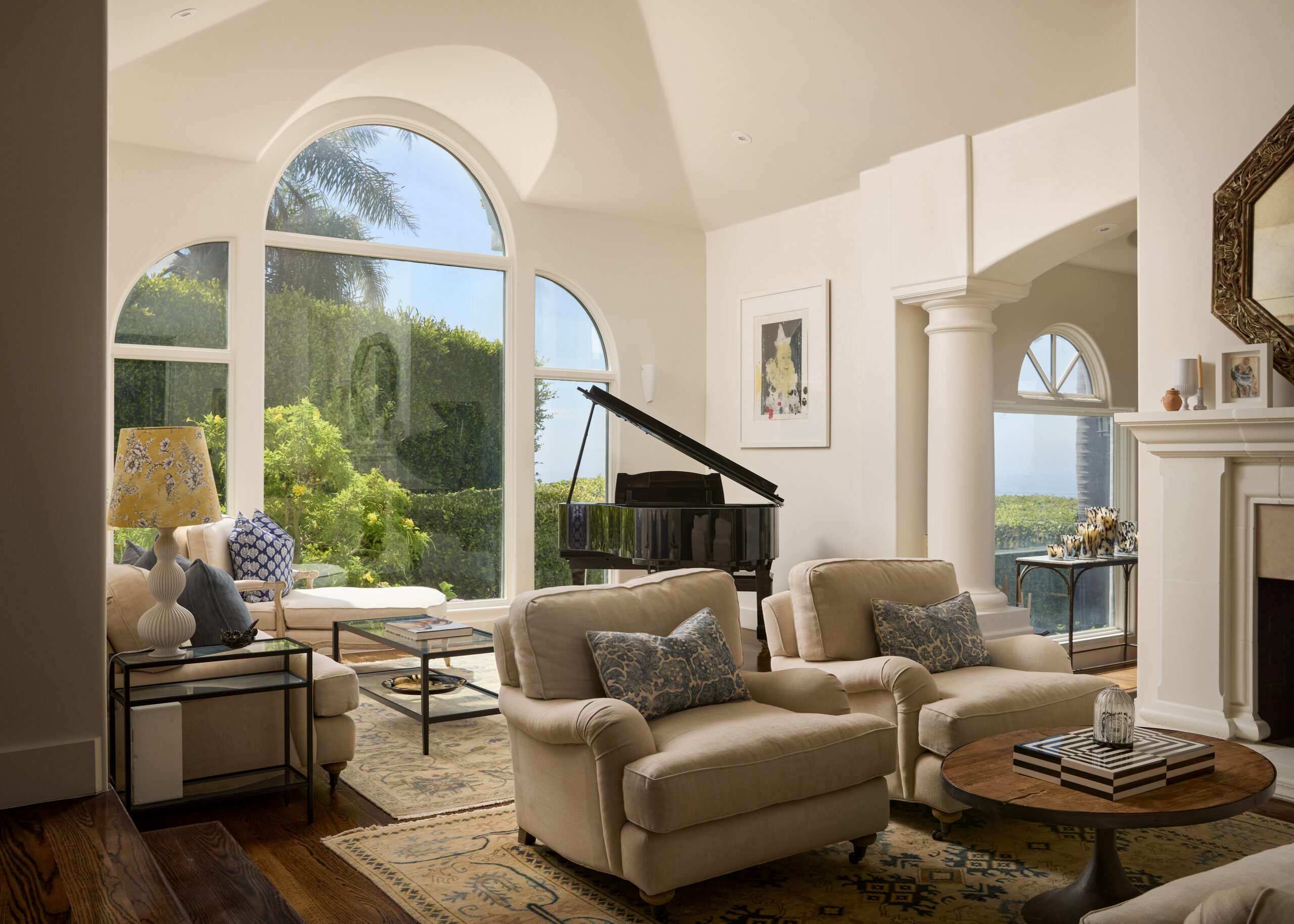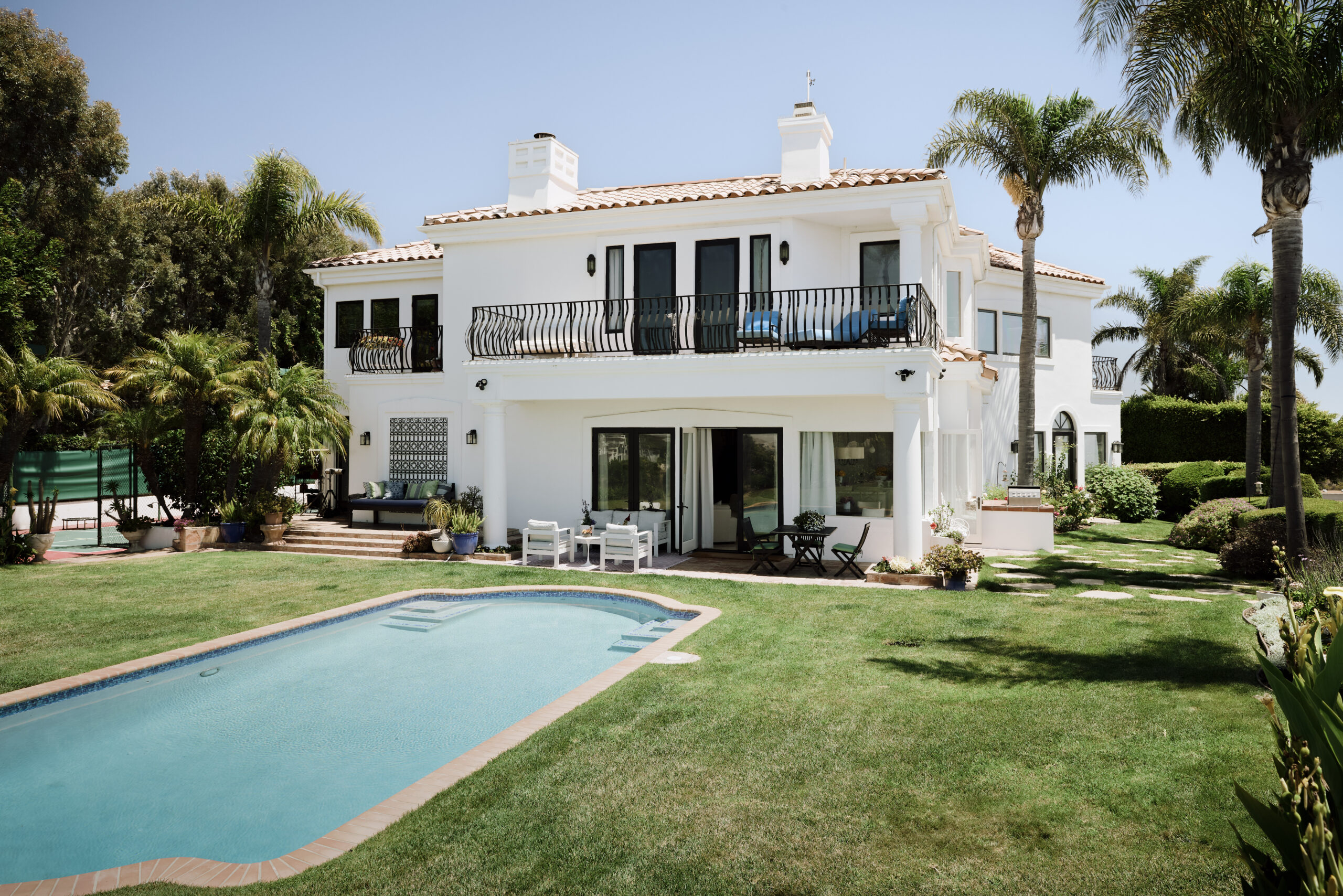 Tucked behind gates at the end of a long, privacy hedge-lined driveway, 6045 Galahad sits on over half an acre of mostly level grounds with a prime vantage above Malibu's iconic Point Dume. Nearly 200 degrees of Pacific ocean views take in the coves of Point Dume and the secluded sands of Little Dumeknown for their clear waters, rugged cliffs, and memorable surf. A quick golf cart ride to the beach, this modern Mediterranean property features a large flat pad with a pool framed by panoramic ocean vistas, a motor court for up to eight cars, and a three-car garage. Inside, 5 ensuite bedrooms (4 up/1 down) a dedicated large office, a dedicated theater room, with light-filled, voluminous social zones opening to terraces, a lighted pickleball court, and manicured lawns around a large pool perfectly designed for the idyllic California coastal lifestyle.