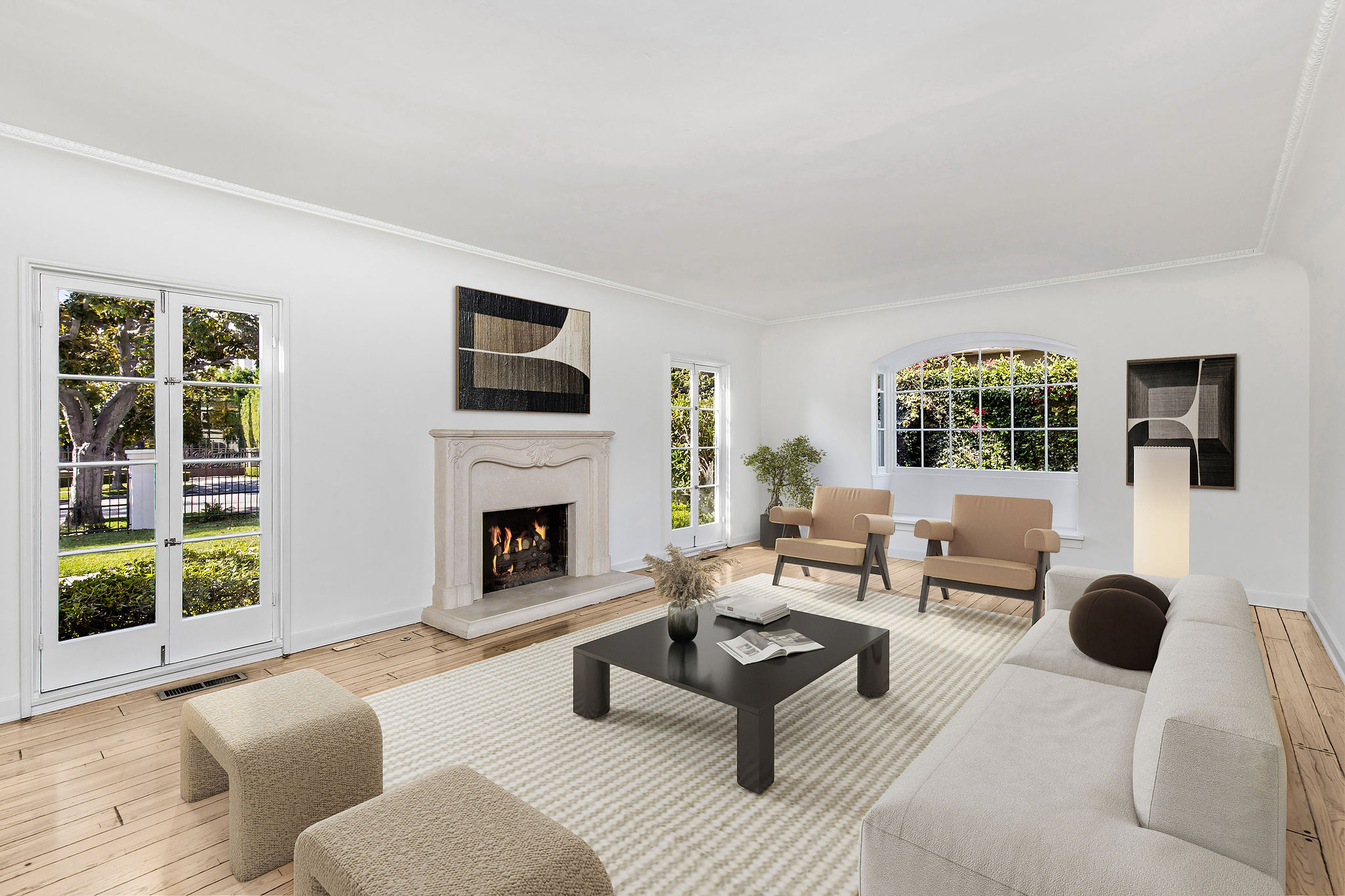 This stunning Traditional estate is nestled in the heart of Beverly Hills, offering the perfect blend of classic elegance and modern amenities. Set behind gates with a grand circular driveway and a lush front yard, this two-story residence boasts 5 bedrooms, 5.5 bathrooms, and newly installed natural light wood floors throughout. The upstairs level features 4 spacious bedrooms, each with high ceilings, ensuite bathrooms, and oversized bay windows that frame beautiful views of the sparkling pool and meticulously landscaped gardens. The downstairs bedroom and bathroom, ideal for a maid's room or in-law suite, offer privacy and convenience.Enter through a charming foyer with a graceful staircase, leading to an inviting formal living room with a cozy fireplace. The expansive family room, also with a fireplace, features large bay windows that overlook the pool and vibrant flower gardens, creating a serene and picturesque setting. The kitchen is a chef's dream, complete with new white marble countertops, a butler's pantry, and a charming breakfast room with sliding doors that open to the BBQ patio area and pool deck, perfect for al fresco dining. Additionally, a spacious dining room and a versatile room off the kitchen-ideal for a home office or playroom-provide ample space for entertaining or relaxation. The private, lush backyard is a true oasis, with pomegranate and lemon trees, a grassy lawn, and a sparkling pool. For added luxury, two fully remodeled cabana guest homes, each with full bathrooms, offer separate accommodations for family or guests. This exquisite Beverly Hills estate is a rare find, blending timeless charm with modern updates, making it the perfect home for those seeking comfort, privacy, and style.