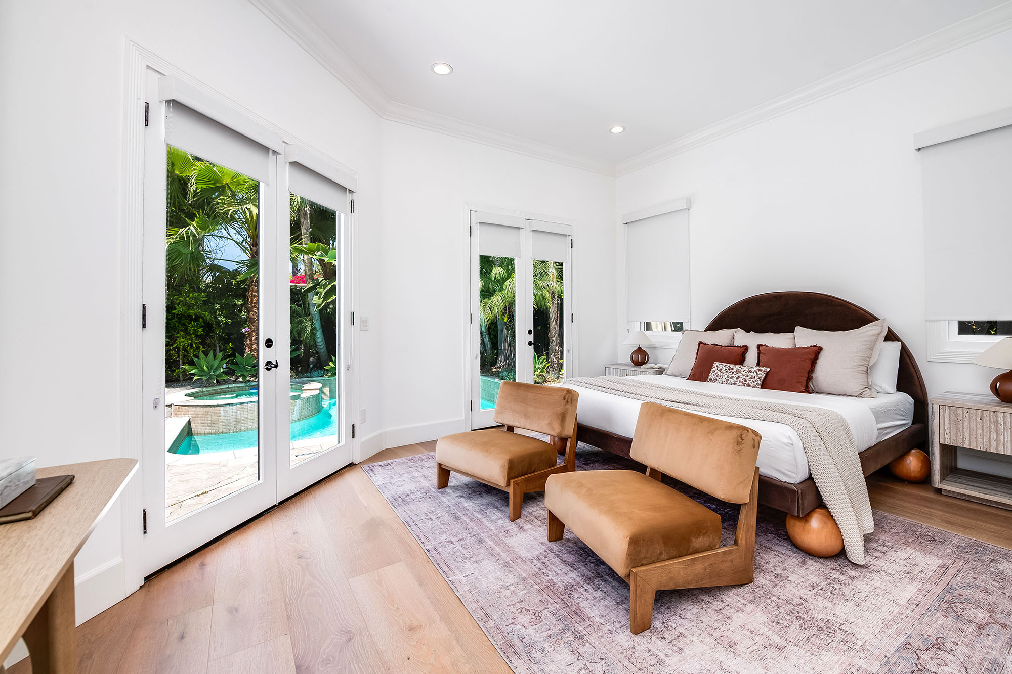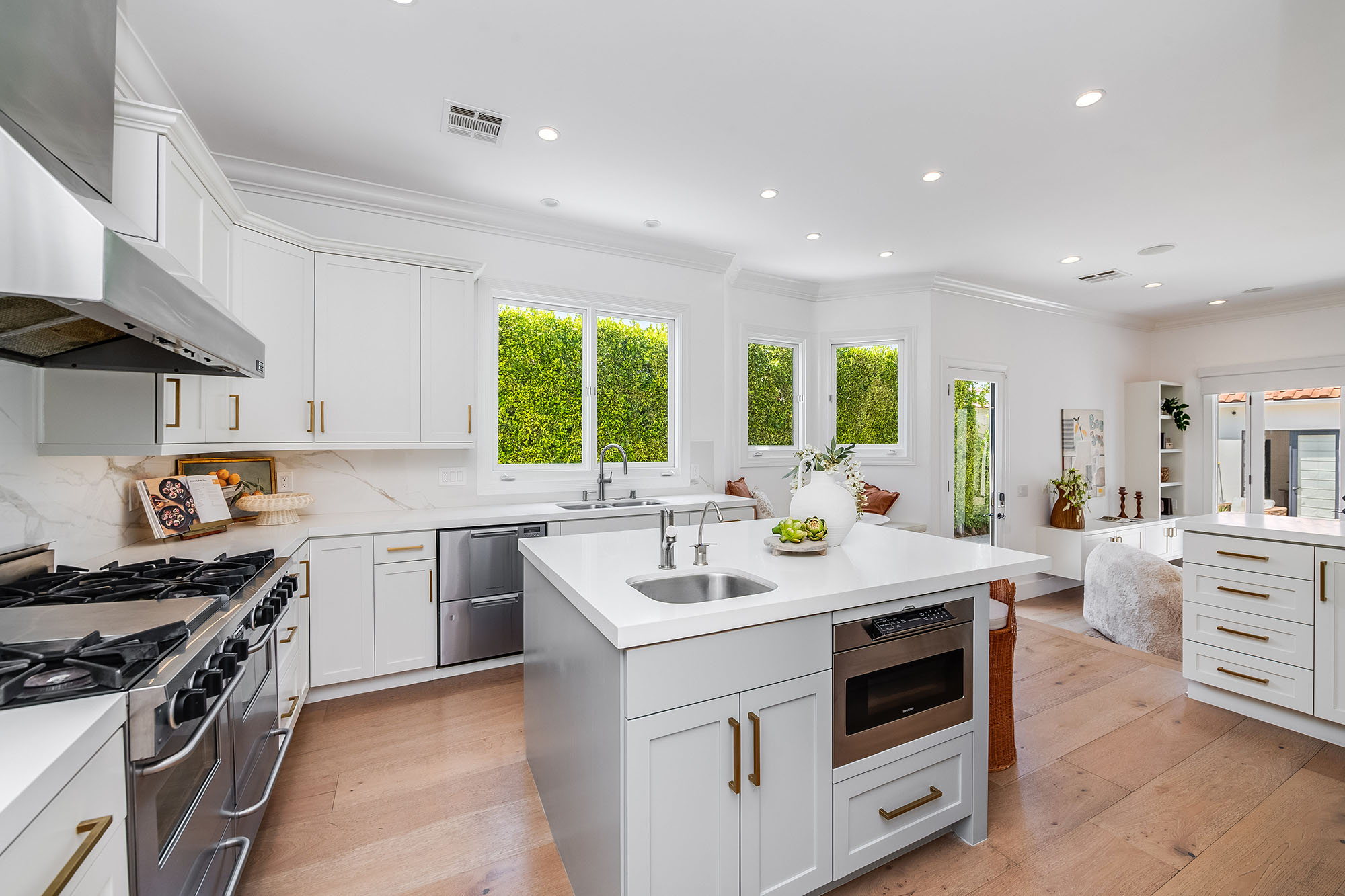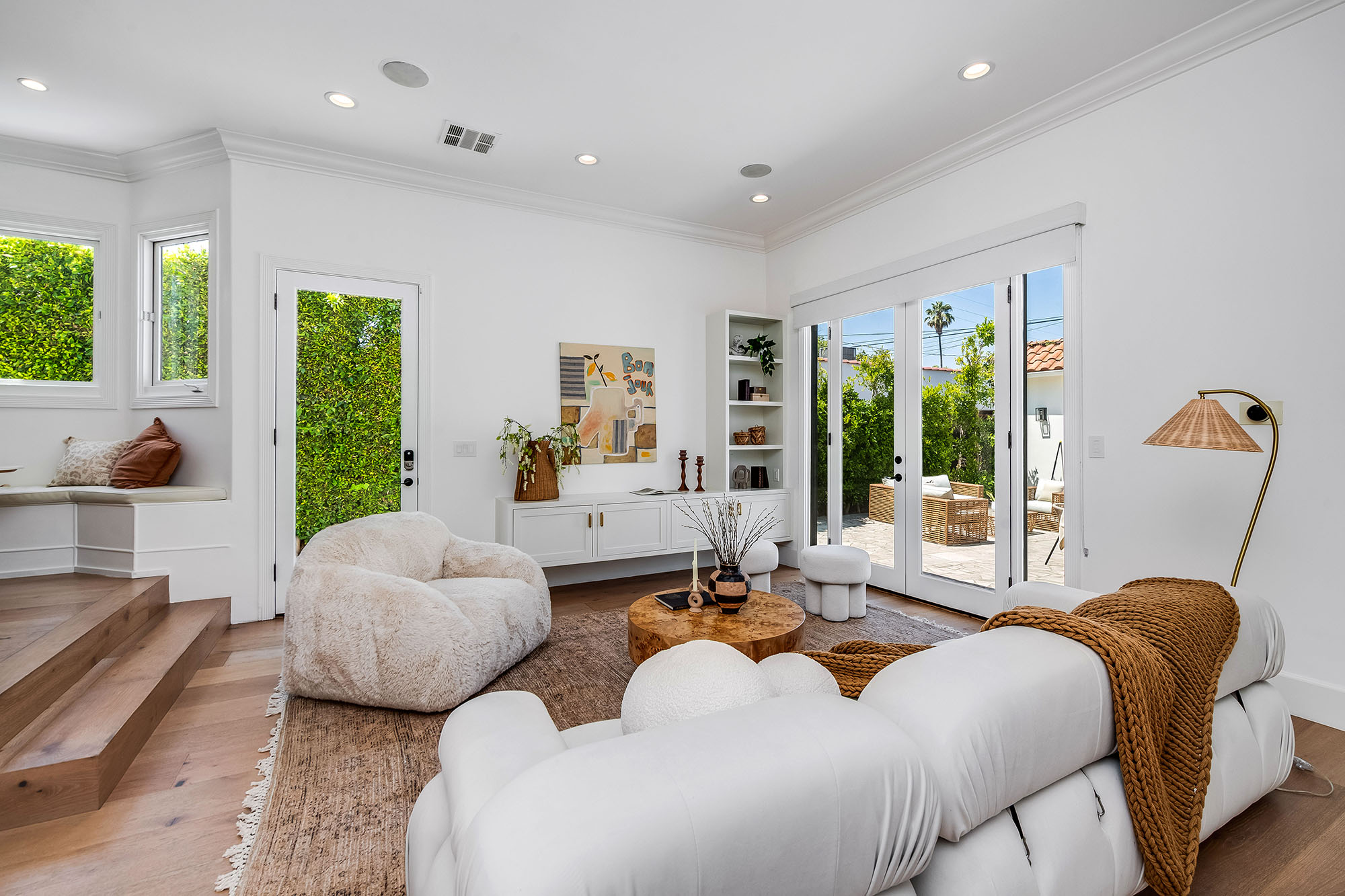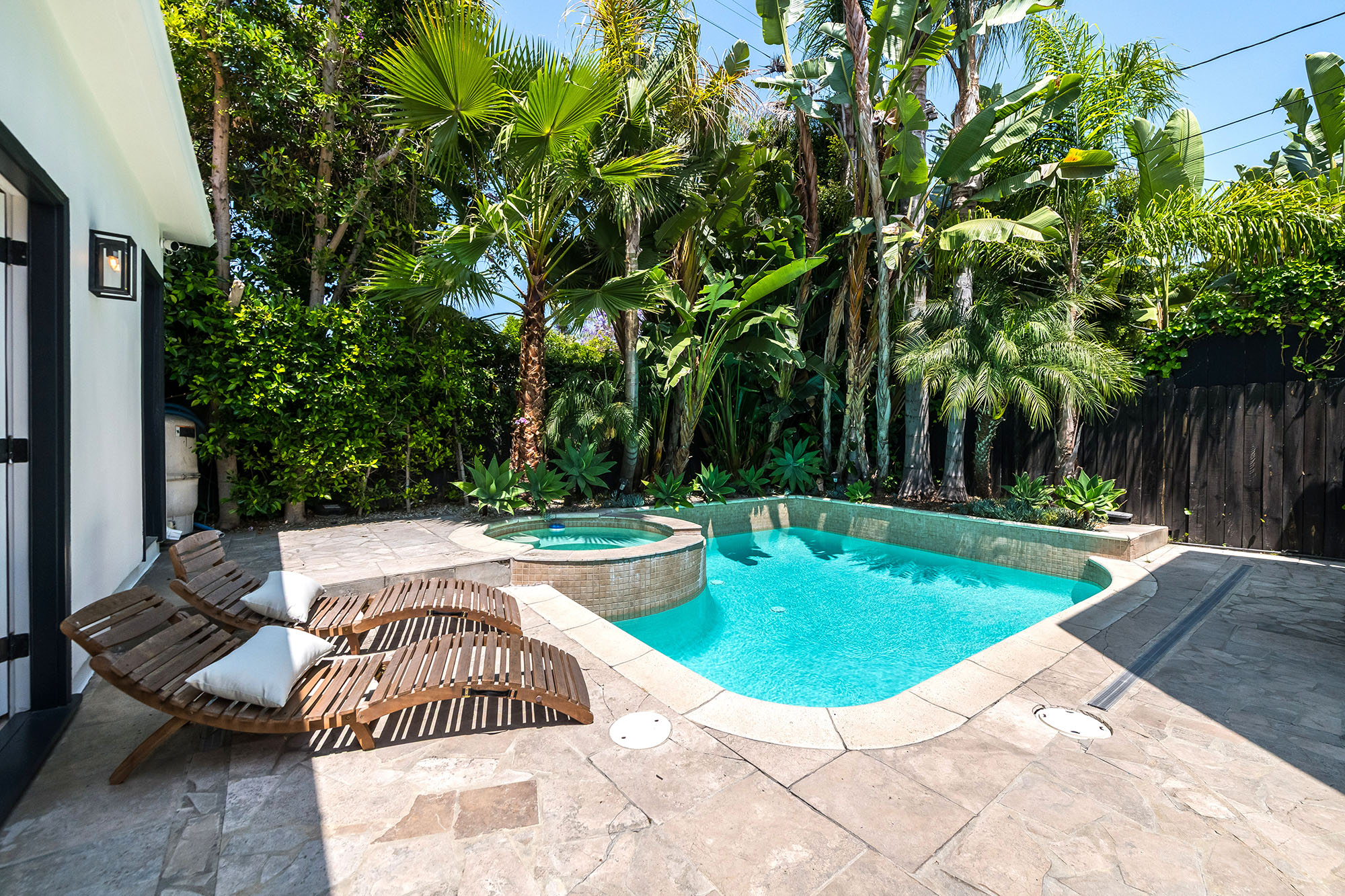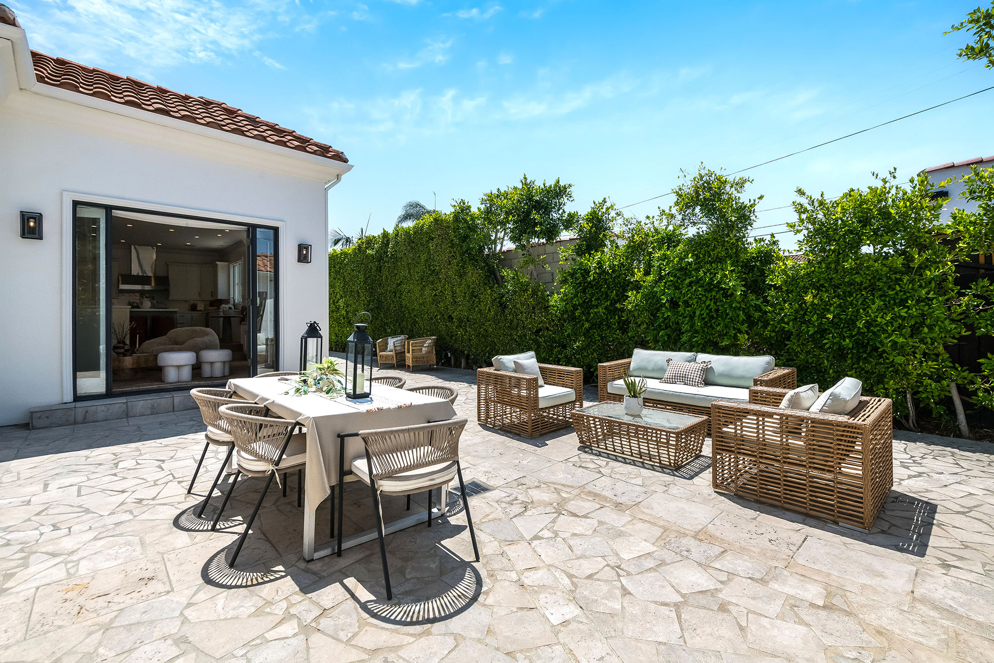Hedged and gated for ultimate privacy and tranquility, this fully renovated and meticulously maintained Spanish/Contemporary home is sure to impress even the most discerning buyers. Located in one of West Hollywood's most desirable pockets, this stunning turn-key residence offers unique architectural character, soaring ceilings, and abundant natural light throughout. The open floor plan is designed for entertaining, with French doors that seamlessly connect the expansive great room to the al fresco dining area and private pool. The primary suite features a massive walk-in closet, serene views of the lush landscaping and pool, and spa-like bathroom retreat. A designer-done chef's kitchen, well-appointed guest bedrooms, ample closet space, large entertaining areas, and a sparkling pool are just the beginning. This must-see private oasis is the home you've been searching for...a true dream retreat just seconds from the best shopping, dining, and entertainment LA has to offer! (Main house: 3 bed, 3.5 bath PLUS additional flex/bedroom and full bathroom in the guest house!)
