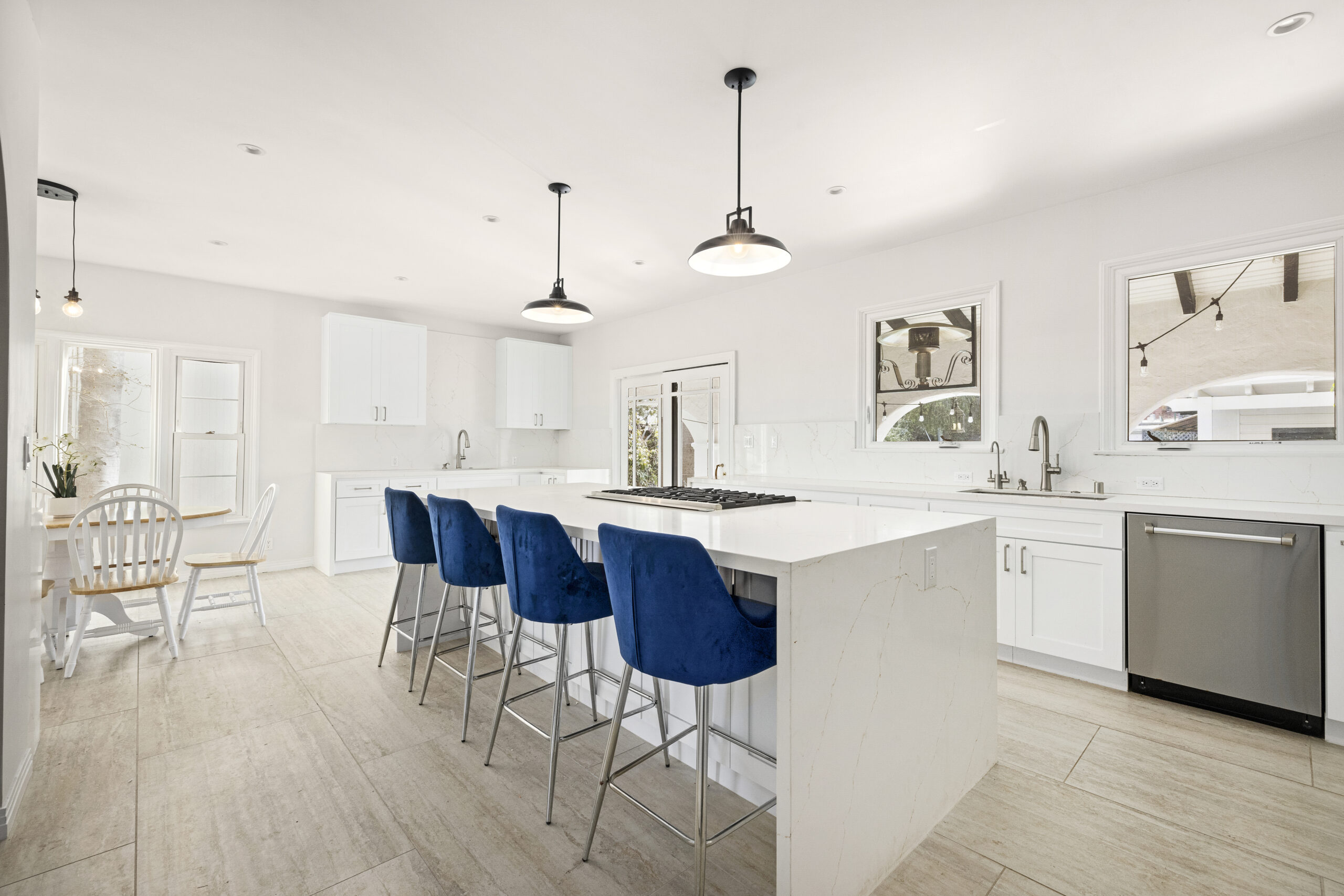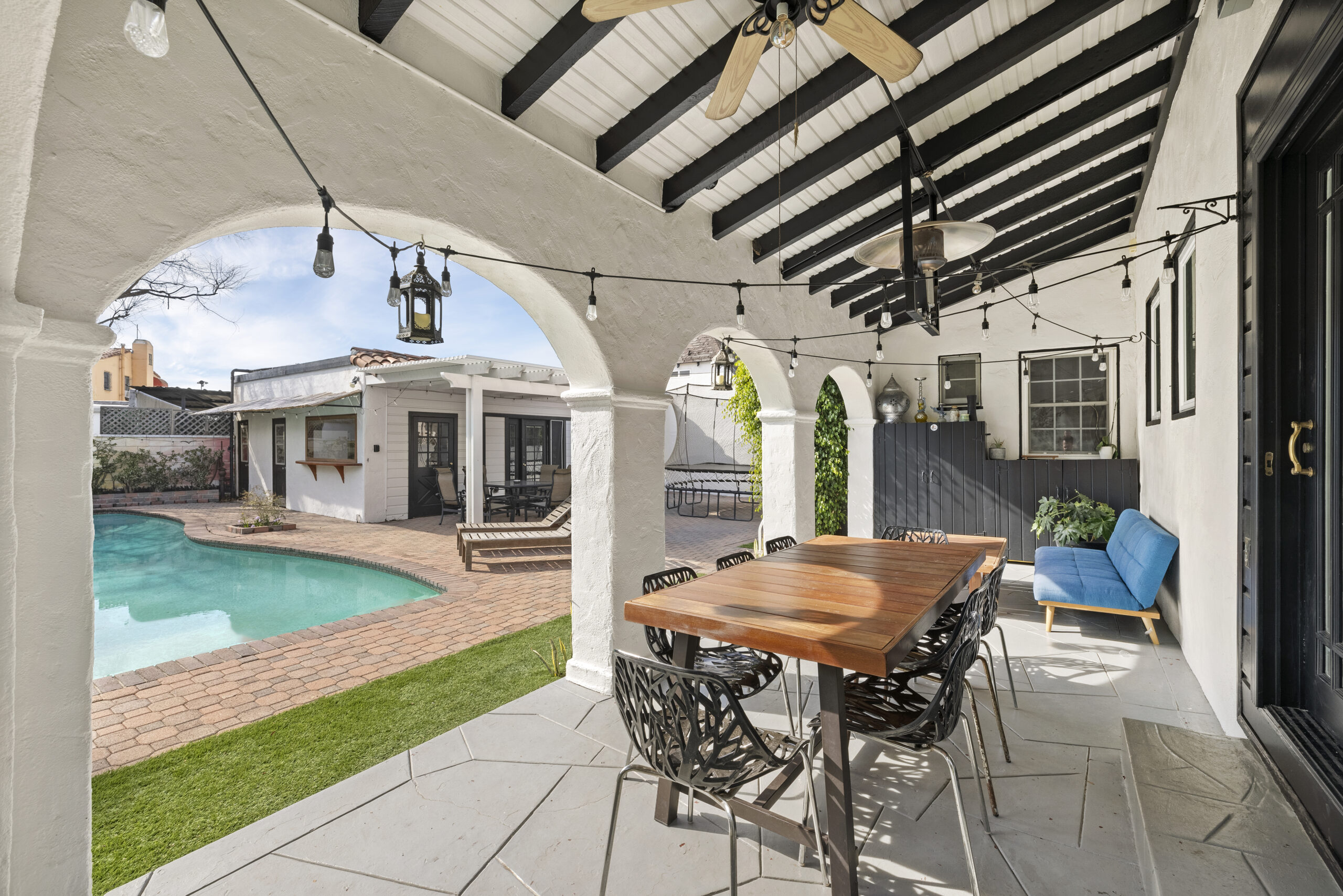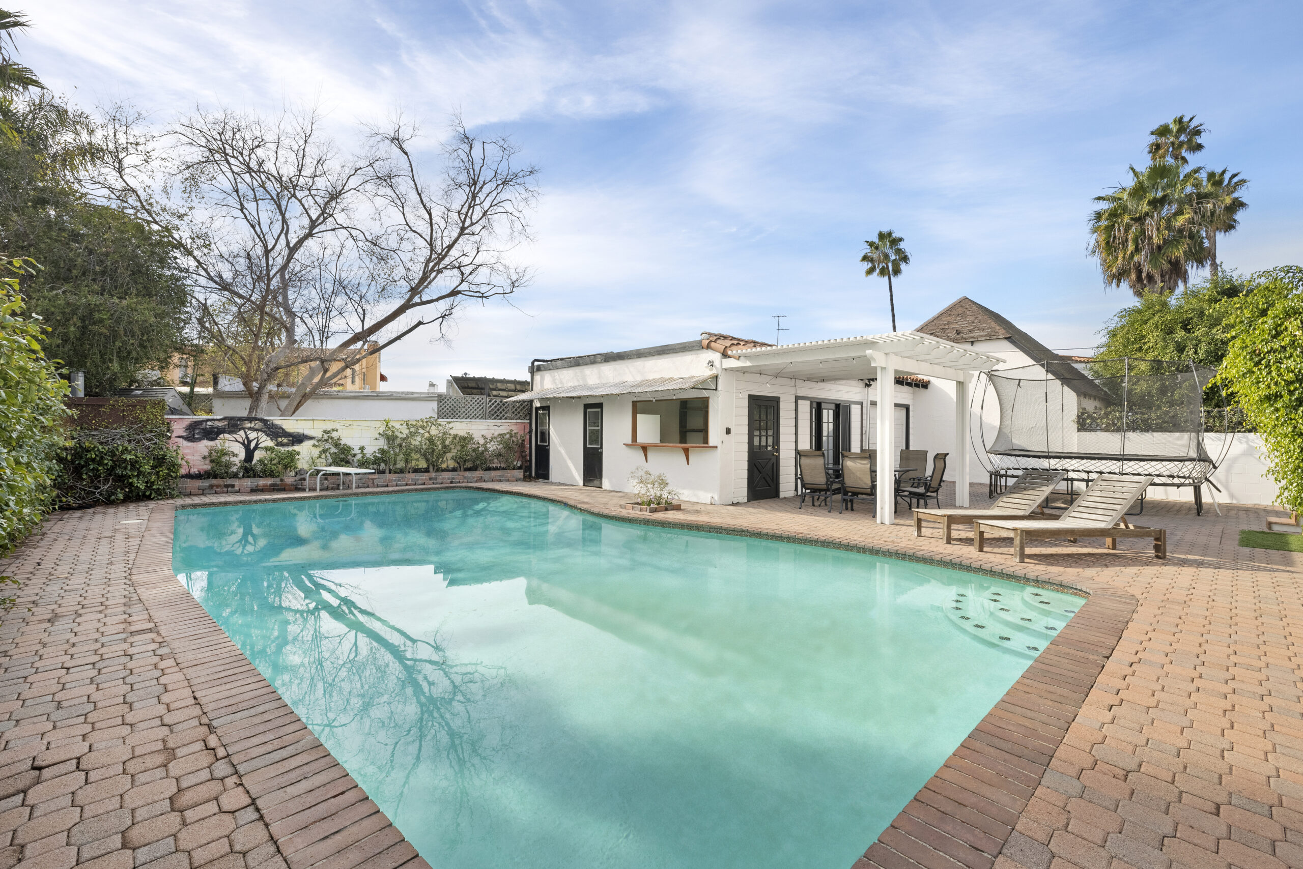 Could not be shown when previously listed, now easy to show and ready to sell! Welcome to 6136 Barrows Dr., a beautifully reimagined traditional Spanish home tucked away on a quiet cul-de-sac in one of Los Angeles most sought-after neighborhoods. Recently renovated with a thoughtful blend of classic elegance and modern comfort, this 3,124 sq. ft. home sits on a generous 7,847 sq. ft. lot and offers a well-designed layout with five spacious bedrooms. Upstairs, you'll find four generously sized bedrooms, while a versatile downstairs suite with a private entrance and full bath provides the perfect setup for guests, in-laws, or a live-in housekeeper. Soaring ceilings in the family room, formal dining room, and kitchen create an airy, inviting atmosphere throughout. The newly redesigned kitchen, bathed in natural light, overlooks the expansive backyard and sparkling pool, making it a true centerpiece of the home. French doors lead to a spacious covered patio, perfect for alfresco dining, entertaining, or simply unwinding in the fresh air. The backyard is a private oasis, featuring a detached garage, a bonus room currently used as an office, an indoor-outdoor pool bar, and two convenient changing rooms, an entertainer s dream designed for seamless indoor-outdoor living. Beyond the home itself, 6136 Barrows Dr. is nestled in a neighborhood celebrated for its strong sense of community, where neighbors connect and support one another, making it a truly special place to call home. Don't miss this opportunity to own a timeless gem that balances charm, character, and modern living in one of LA s most desirable locations!