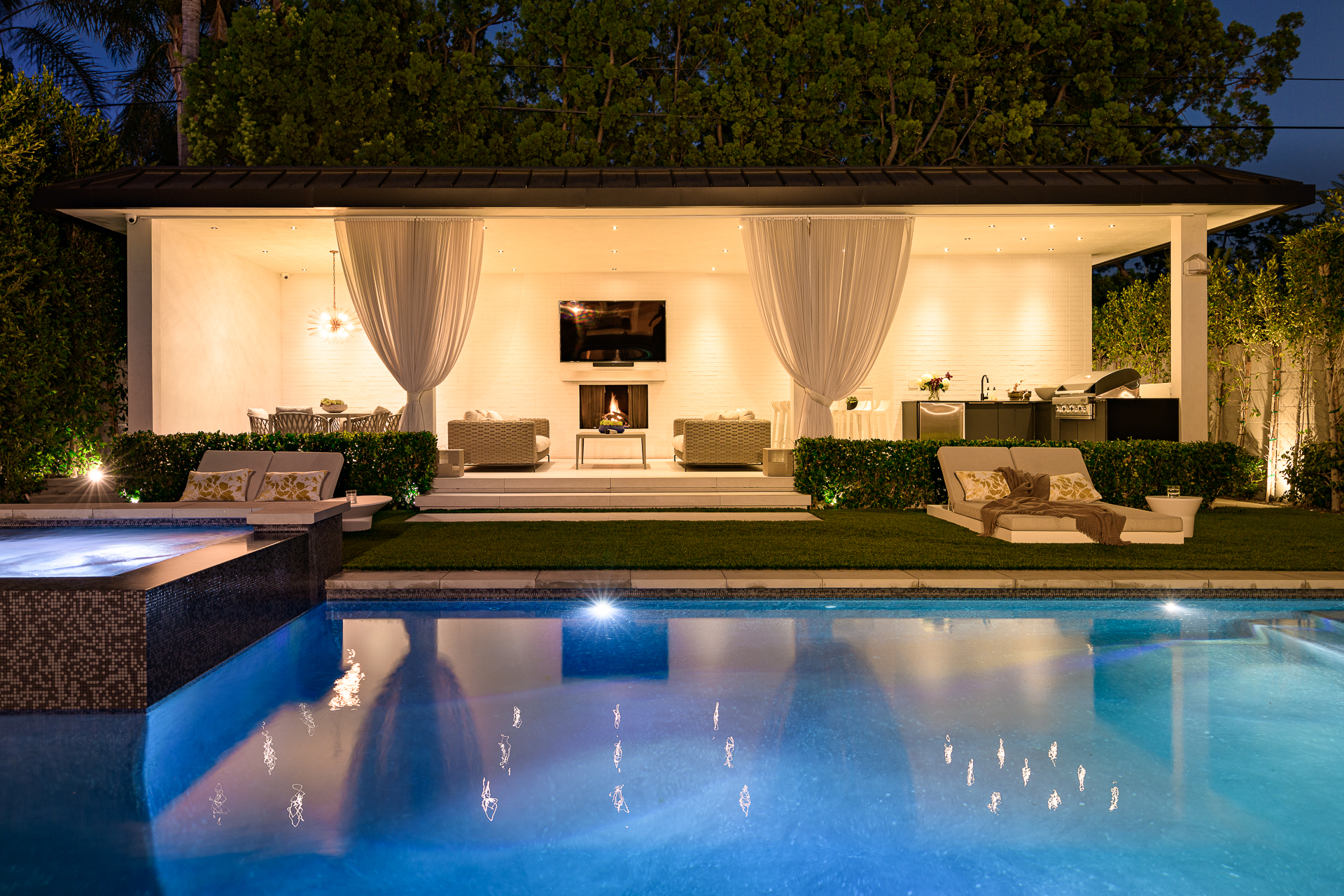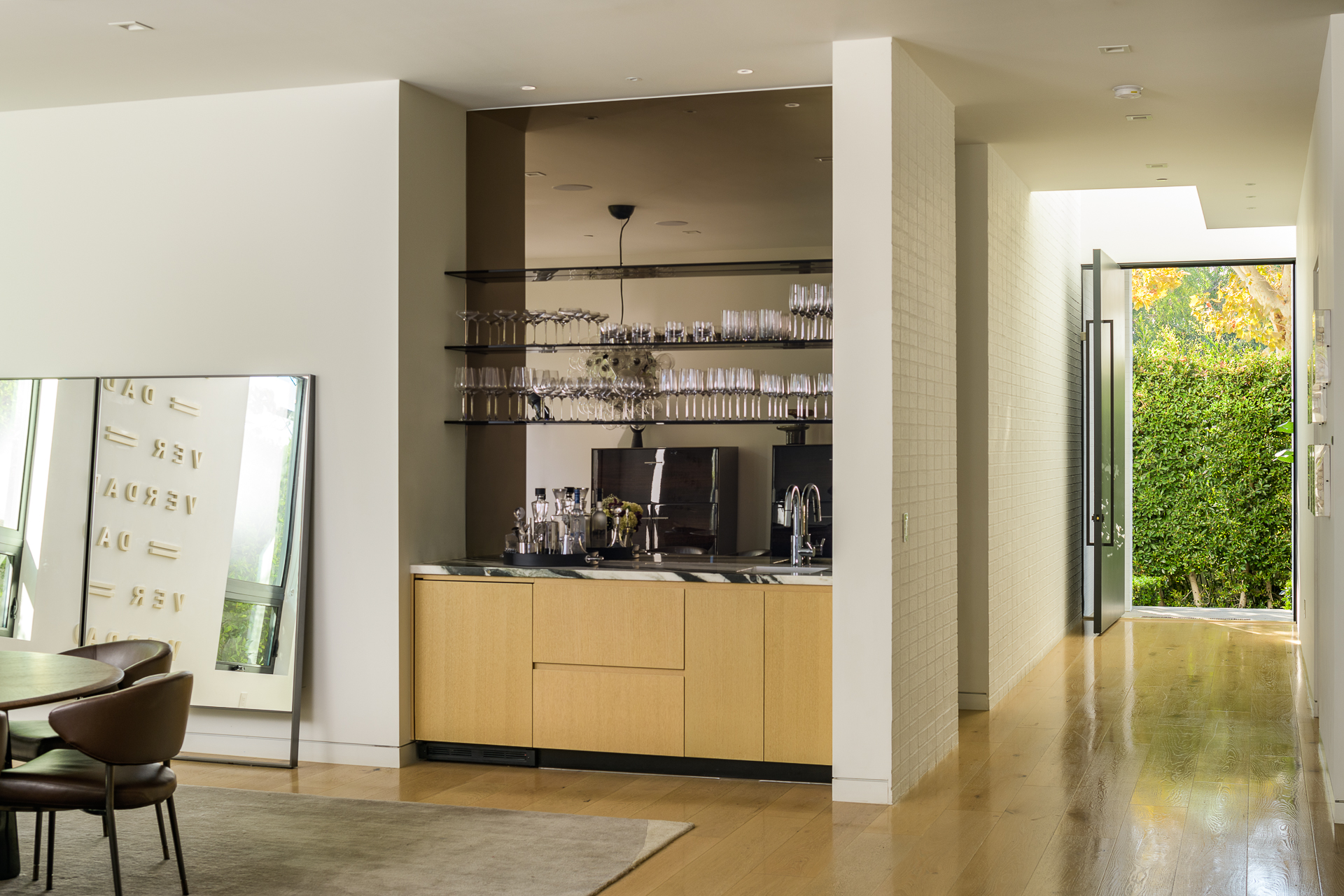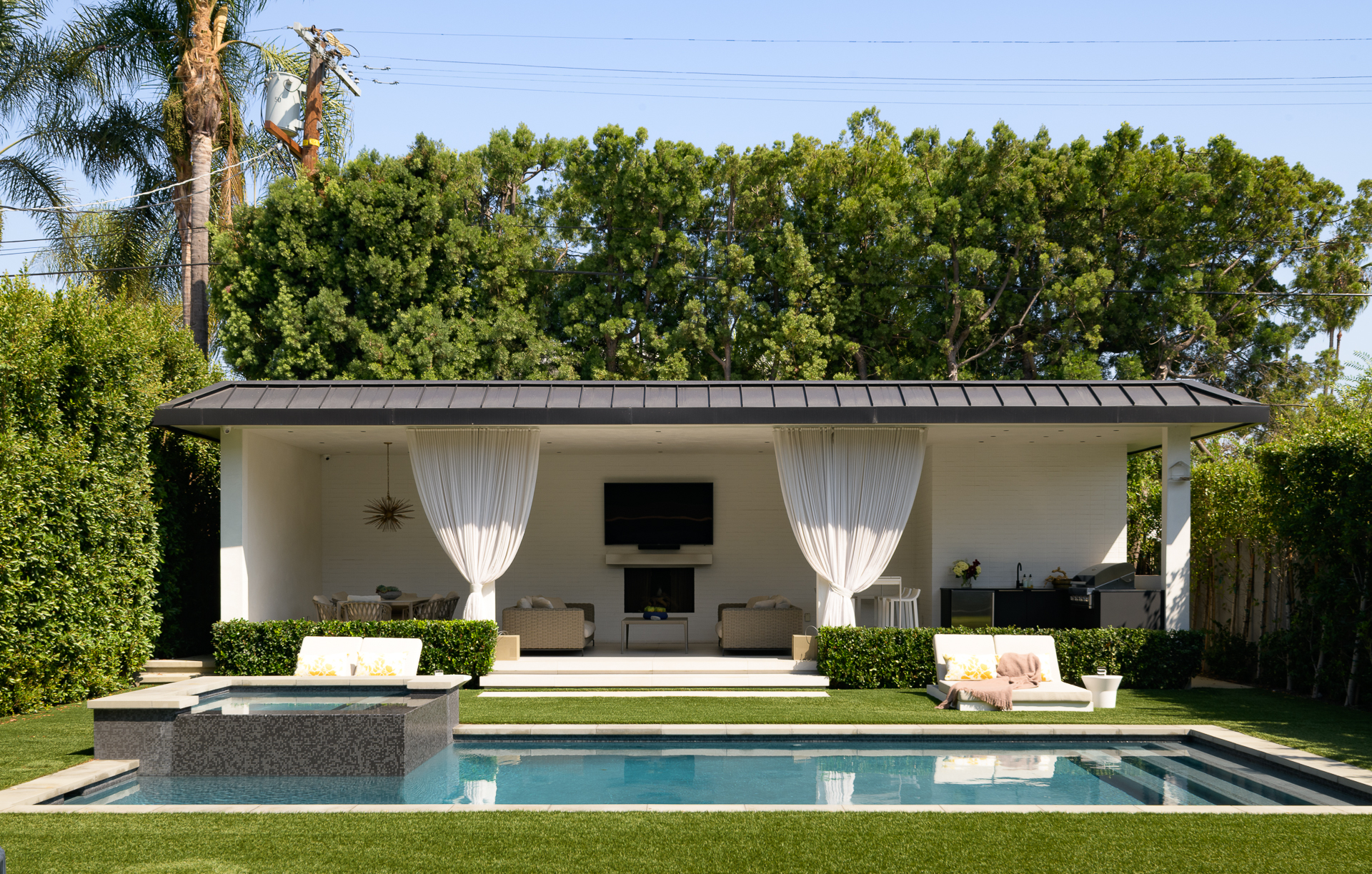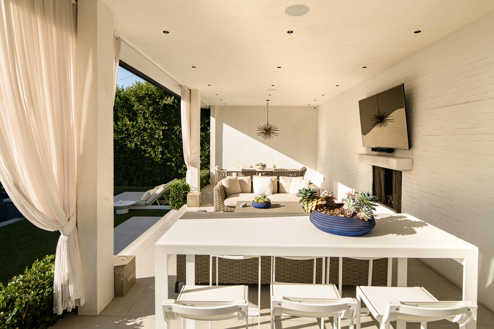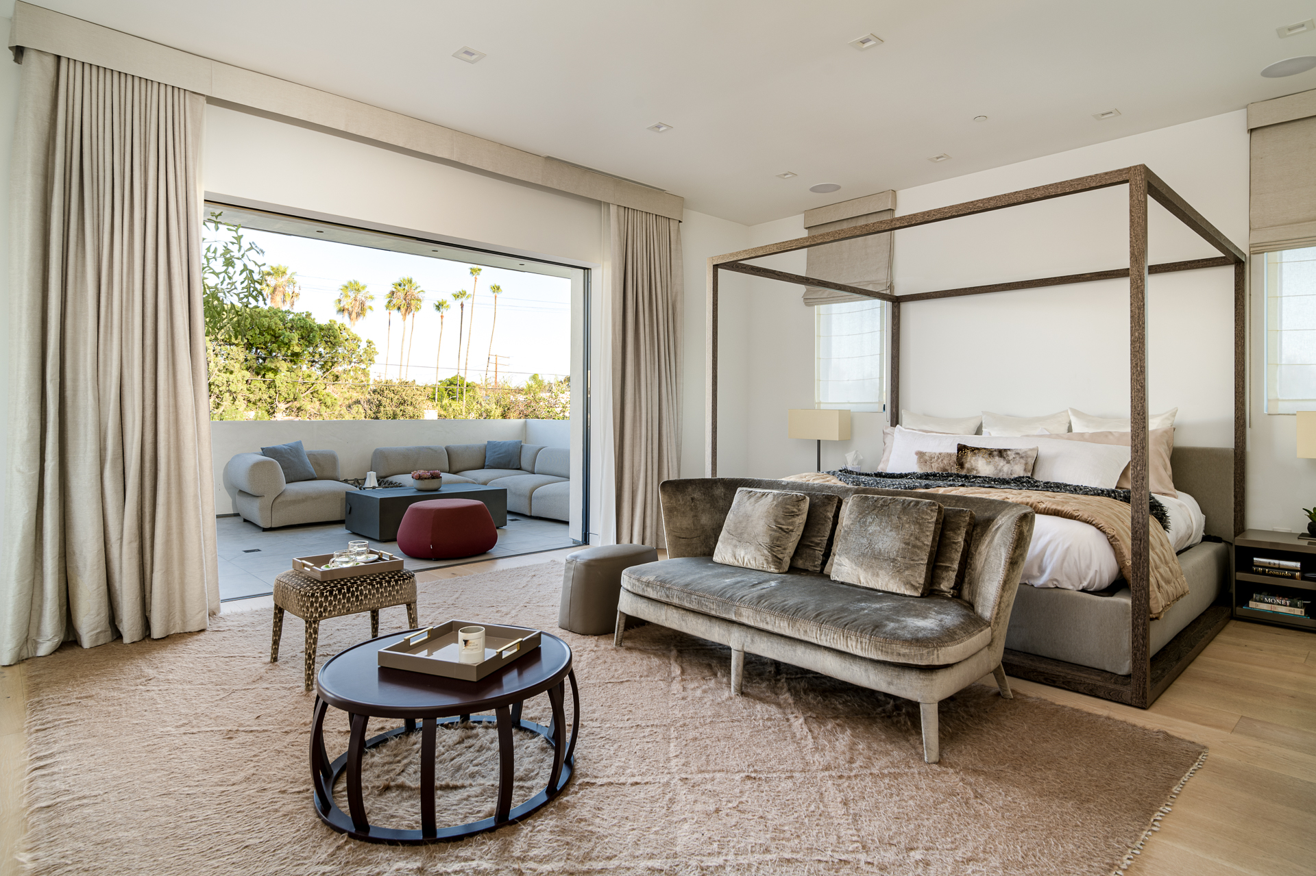 Experience the ultimate privacy, elegance, and prestige in this warm contemporary home set on a rare, oversized, approx 8,228-sqft lot in Melrose Village. Behind lush privacy hedges, natural light and serenity fill every corner of this resort-like oasis where todays design meets the finest organic finishes such as French oak floors. Sophisticated, architectural exterior features a metal roof, white brick walls, and a 10-ft pivot door. Sun-splashed, approx 4,676-sqft of living spaces boasts captivating flowing open floor plan and entertaining features. Wine room, formal dining with a wet bar, entertainers Italian kitchen, and a sensational living room with a fireplace flow together seamlessly. Walls of glass open to spectacular outdoor entertaining spaces, including a well-landscaped terrace, pool, spa, a guest cabana with kitchen, al fresco dining, lounge area by the fireplace, and bathroom. 5 en-suite bedrooms and 7 bathrooms include 3 en-suites upstairs with private balconies and views. The extravagant primary suite features a designer closet, luxurious home spa, private patio, and a fire pit. Lutron-powered smart home with media, security, and dual-zone climate control. Family-friendly. An unrivaled home in the most coveted enclave of culture and entertainment.