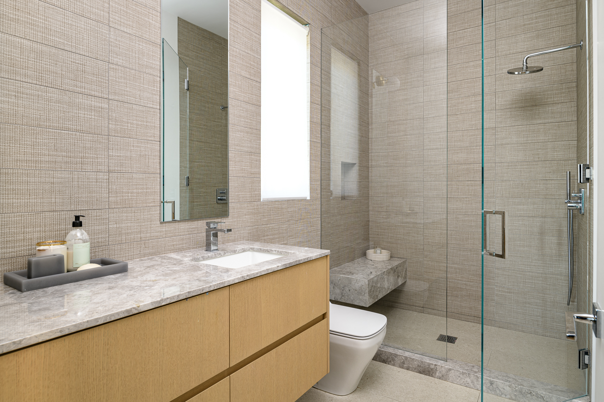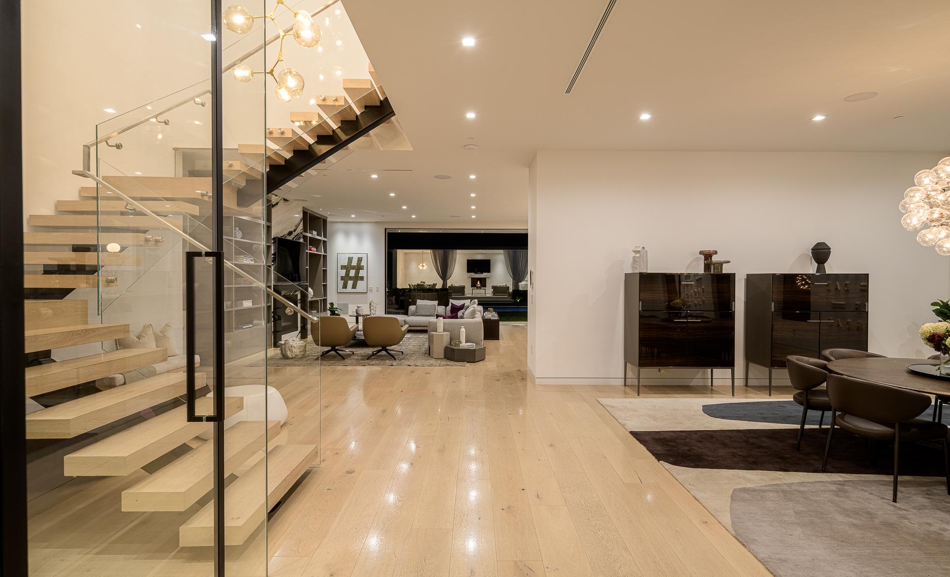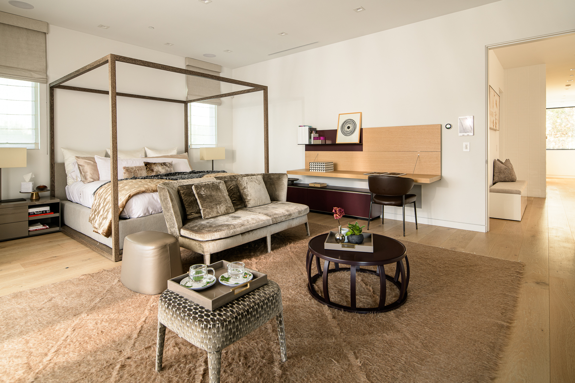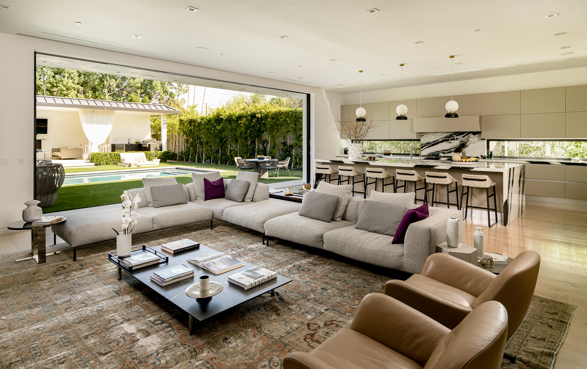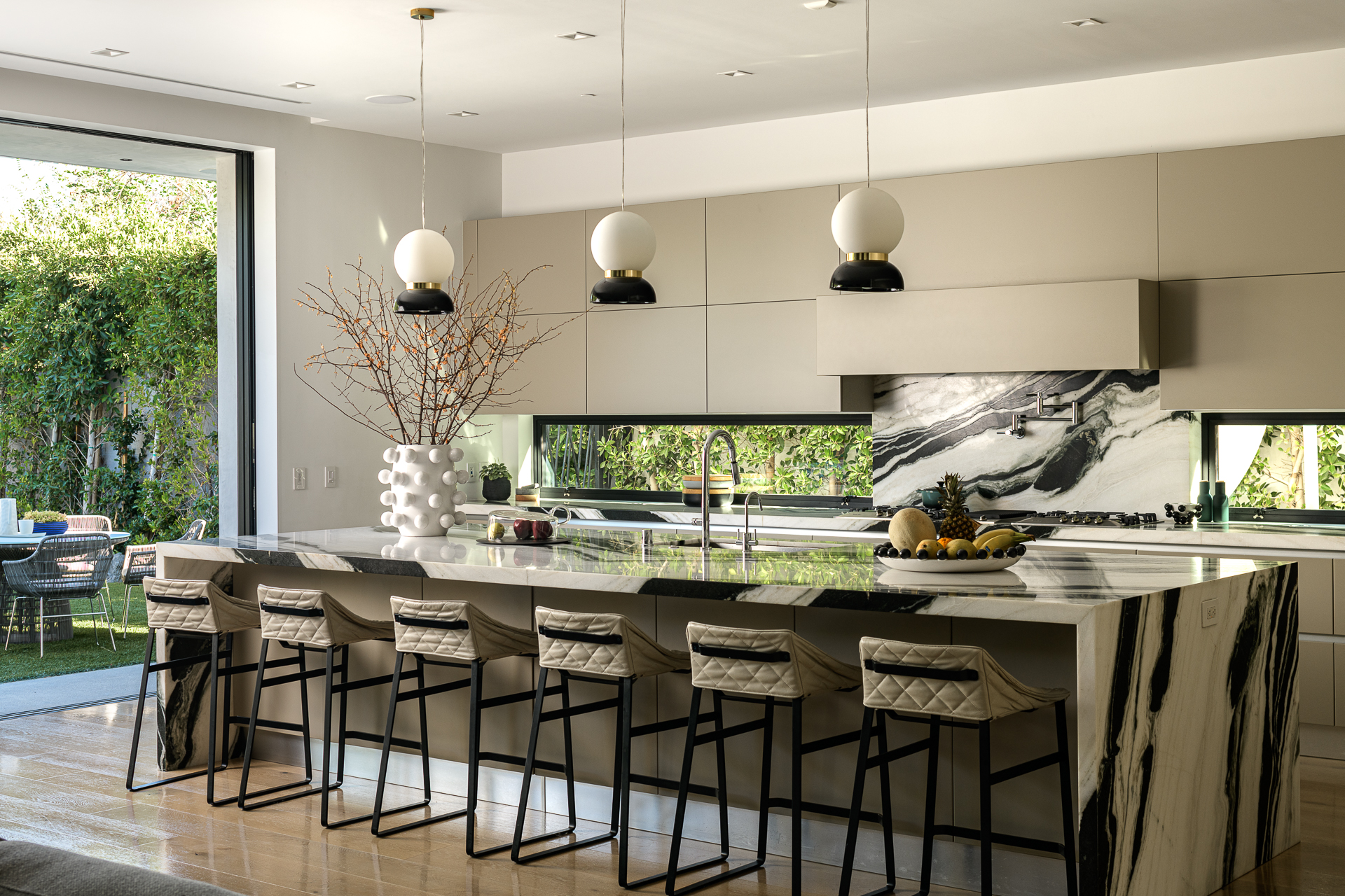 Experience the ultimate privacy, elegance, and prestige in this warm contemporary home set on a rare, oversized, approx 8,228-sqft lot in Melrose Village. Behind lush privacy hedges, natural light and serenity fill every corner of this resort-like oasis where todays design meets the finest organic finishes such as French oak floors. Sophisticated, architectural exterior features a metal roof, white brick walls, and a 10-ft pivot door. Sun-splashed, approx 4,676-sqft of living spaces boasts captivating flowing open floor plan and entertaining features. Wine room, formal dining with a wet bar, entertainers Italian kitchen, and a sensational living room with a fireplace flow together seamlessly. Walls of glass open to spectacular outdoor entertaining spaces, including a well-landscaped terrace, pool, spa, a guest cabana with kitchen, al fresco dining, lounge area by the fireplace, and bathroom. 5 en-suite bedrooms and 7 bathrooms include 3 en-suites upstairs with private balconies and views. The extravagant primary suite features a designer closet, luxurious home spa, private patio, and a fire pit. Lutron-powered smart home with media, security, and dual-zone climate control. Family-friendly. An unrivaled home in the most coveted enclave of culture and entertainment.