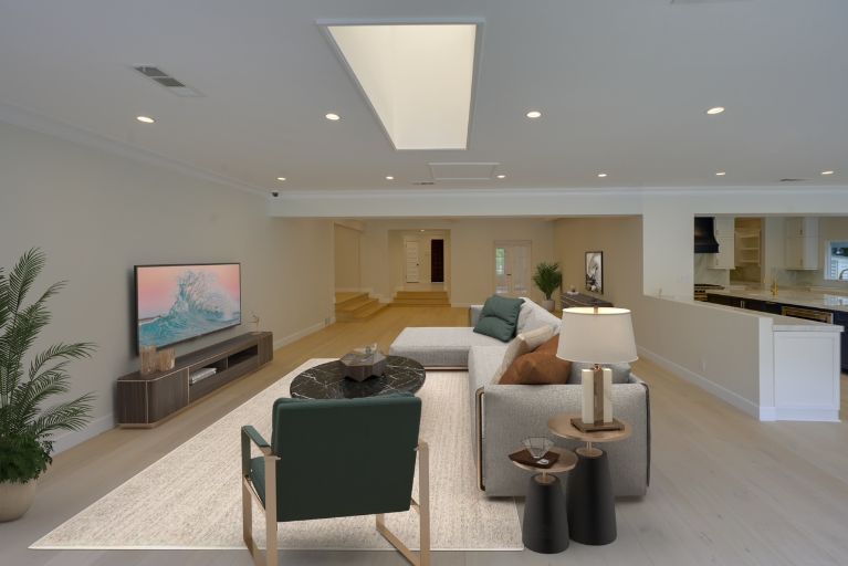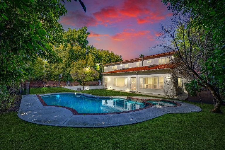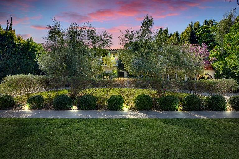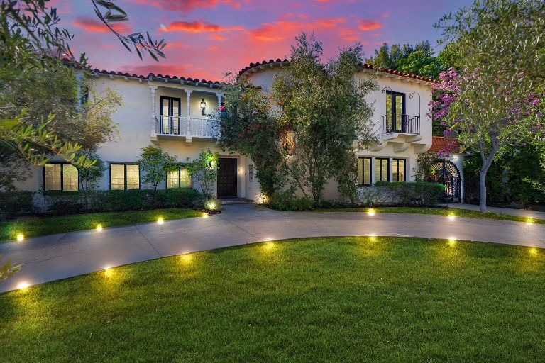 Grand Spanish. Updated comfort on one of the most coveted streets in Beverly Hills Flats. Beamed ceilings, multiple fireplaces, breezy verandas, and a gracious curved stairway with traditional iron work communicate elegance and style. Modern center-island kitchen with granite and stainless steel appliances is a chef's delight. Enjoy entertaining with friends and family in the large formal dining room. 6 generously-sized bedrooms (1 converted to an office) are all en-suite. All 6 ½ bathrooms have been updated with stone, tile and modern fixtures. Recent & stunning transformation of the ballroom-sized family-room demonstrates the value and flexibility of this lovingly cared-for property. This sunny and open room provides an abundance of space perfect for large-scale entertaining, a home theater, office, music, or art studio. Paddle tennis sports-court and a pool for outdoor enjoyment on an aprox 13,456 sf lot per assessor. Easy walk to El Rodeo School.