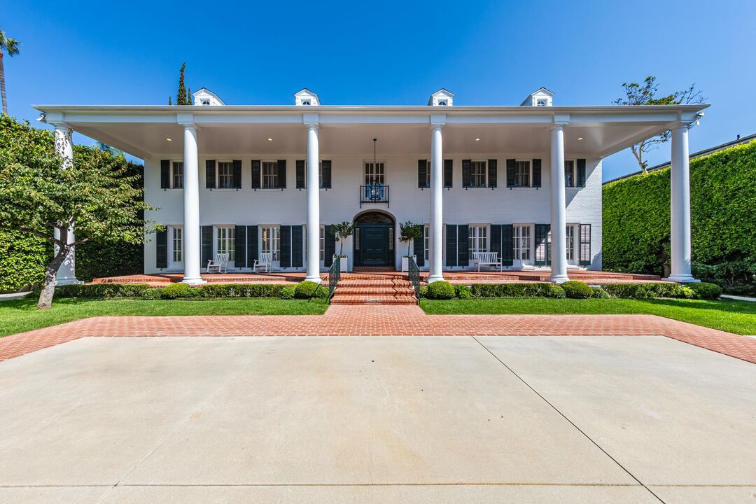 Beverly Hills Trophy Compound on 35,700sqft+ lot. First time available in decades, with renovations by renowned architect Paul Williams. A classic icon on the Flats, rare and exceptional in a most central location. Perfect symmetry greets visitors with a glamorous colonnade and vast gated motor court. Elegant proportions in all public rooms. Signature Oval staircase, light filled living room with fireplace. Adjacent screening room and step-down library/office with French doors to verdant gardens. Formal spacious dining room with fireplace. Veranda overlooks large pool and pool house. Fully lit tennis court with viewing pavilion. Primary suite is a world apart with sitting room, office, marble bath and large walk-in closets. Four additional bedrooms upstairs and 2 staff rooms off kitchen. A vast meadow of grass is the centerpiece of the manicured grounds. 2 bedroom guest house with living room and kitchen is sited above an oversized 3 car garage. Beyond special and unique. Shown to prequalified buyers.