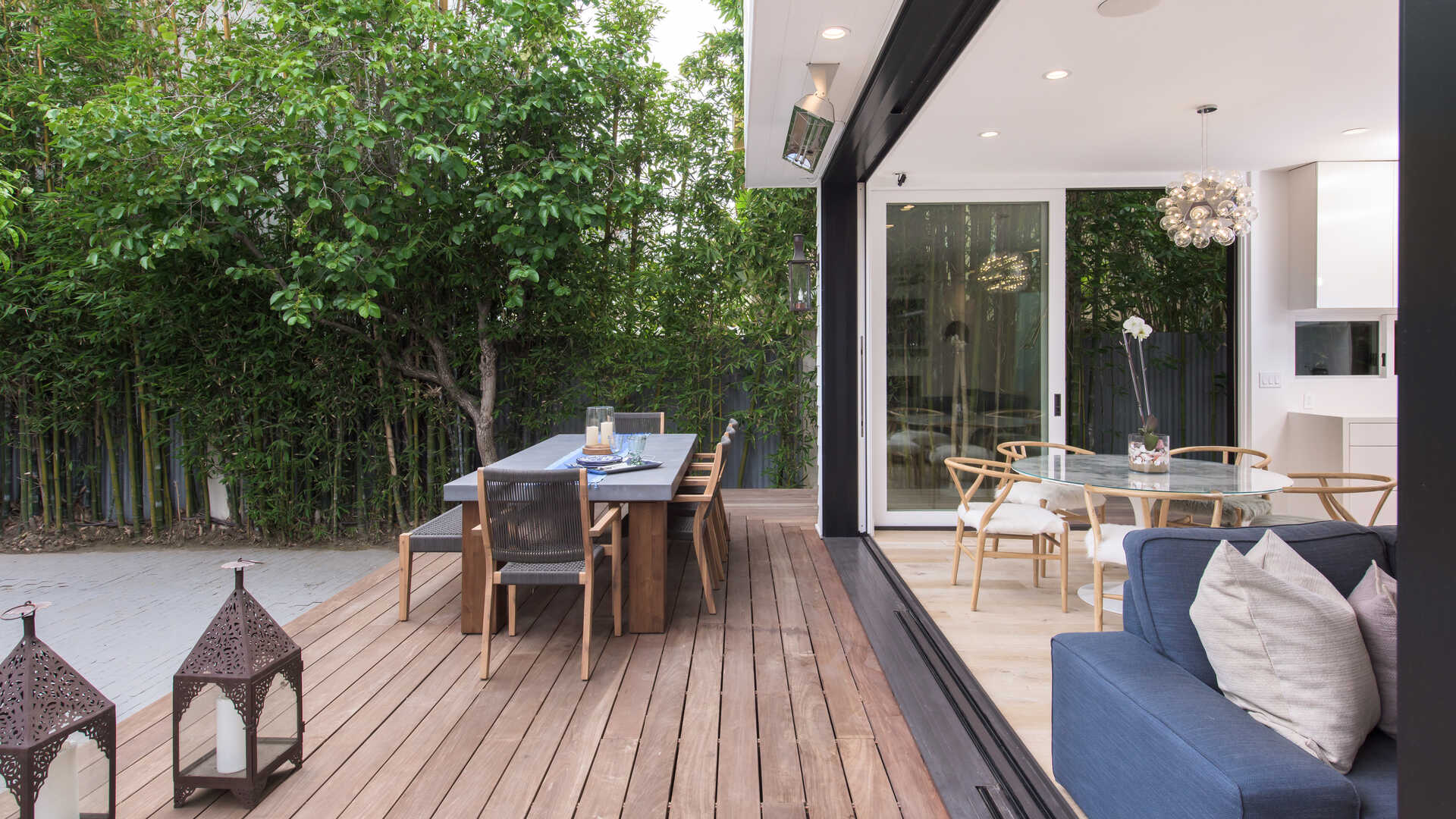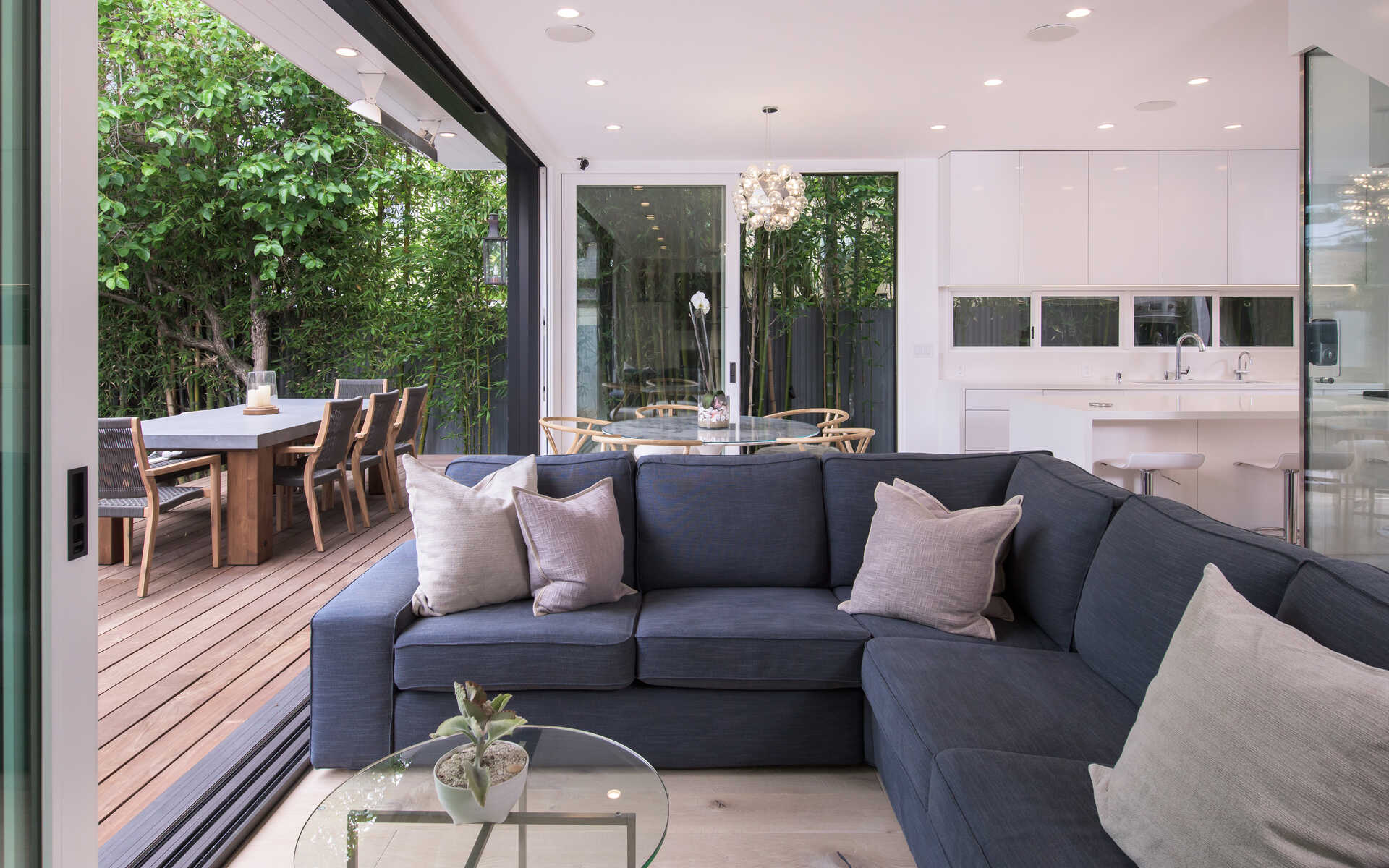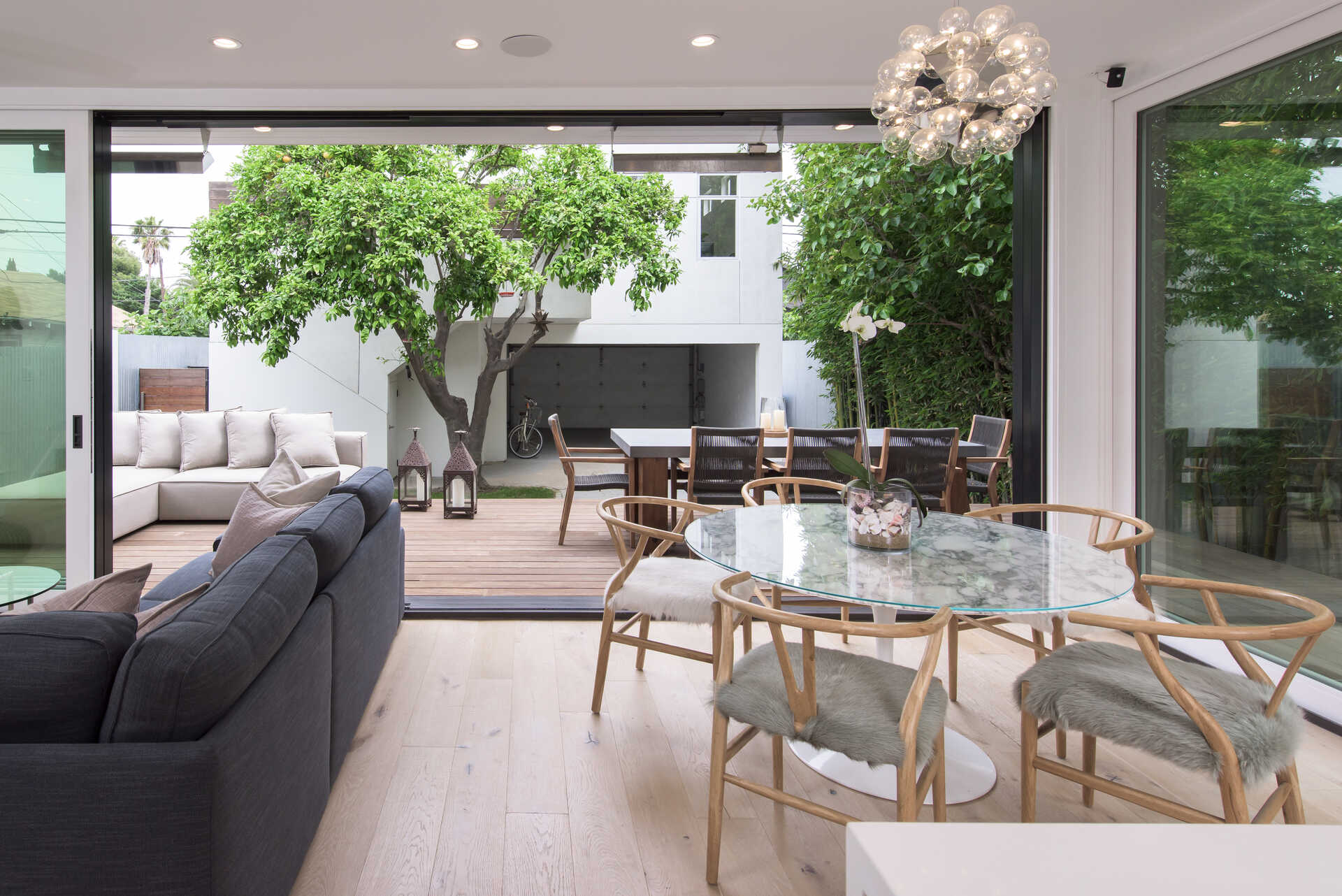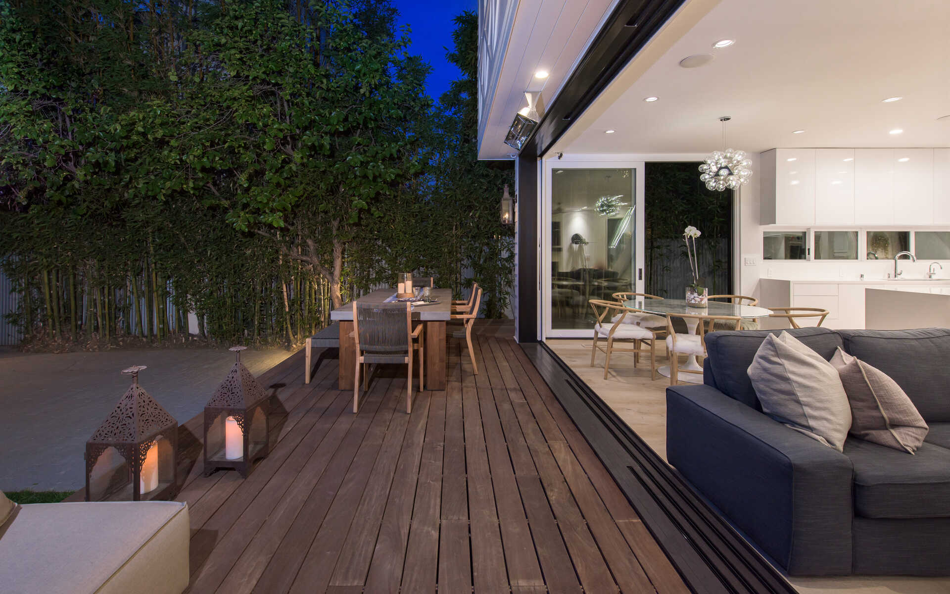 Stunning California Craftsman in the heart of Venice which blends traditional and contemporary architecture by the renown Julie Hart with classic southern design. Enter into a seamless style featuring European white oak flooring, monochromatic Caesar stone countertops in a sprawling open kitchen with impressive cabinetry throughout. Effortless entertaining with dual living spaces with a statement see-through, backlit wine cellar, three fireplaces and Marvin pocket sliding doors to embrace the indoor-outdoor theme of SoCal living. Downstairs is comprised of a full private bedroom and bath with the additional bedrooms and office nook on the second floor. Upstairs you will find a serene primary suite, with a state of the art walk in closet, and an impressive large private covered balcony. This home is framed by 800 sqft of IPE wrap-around veranda for transitional beach-side living. A truly unique gem in the heart of Venice you must see.