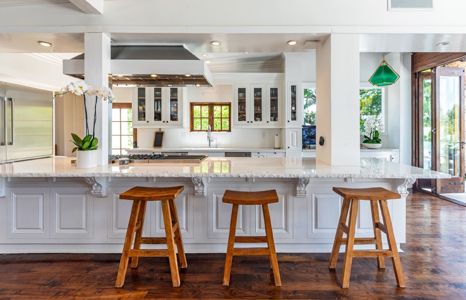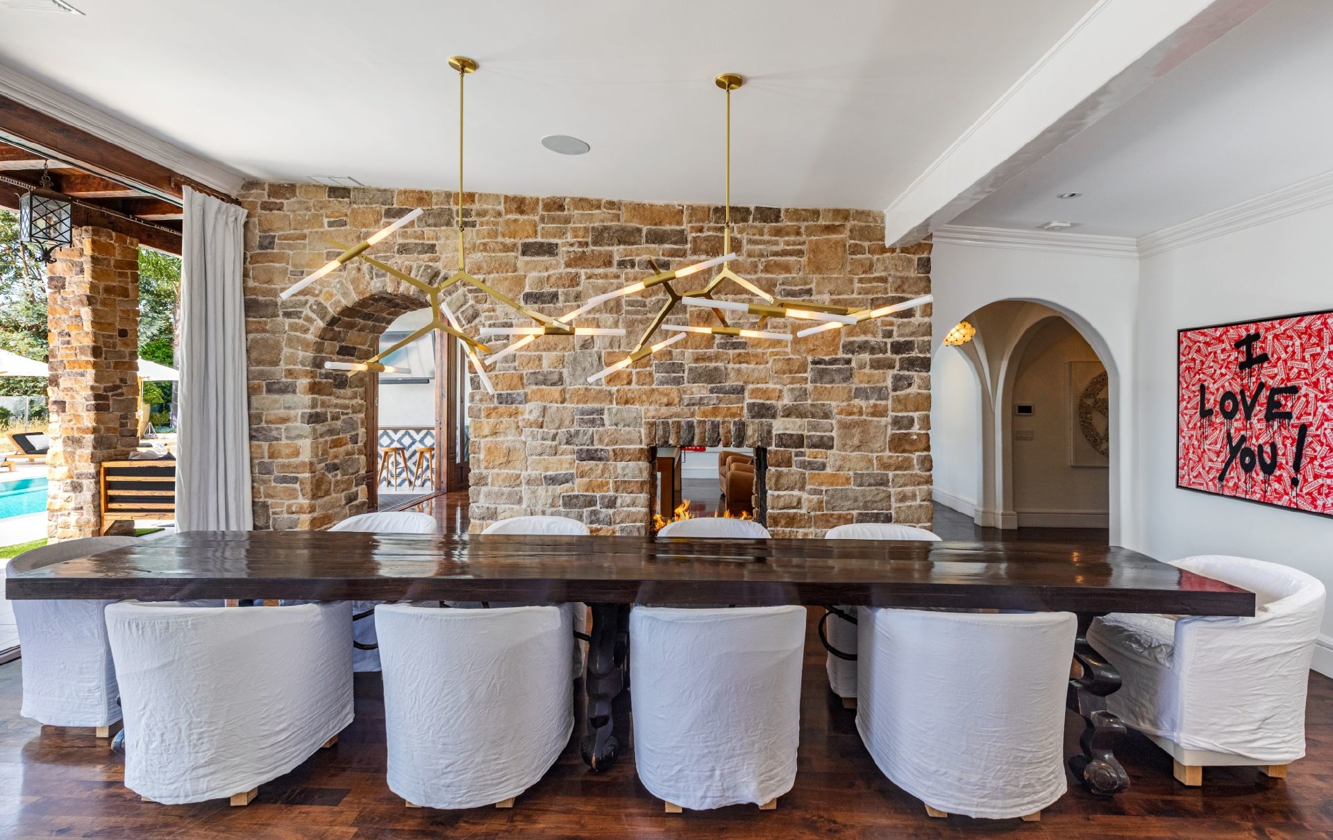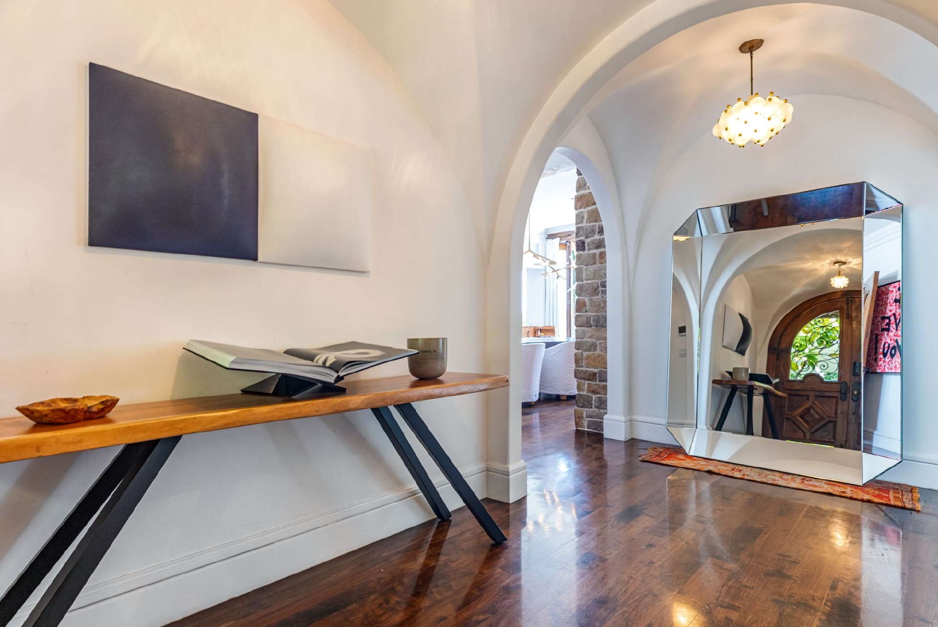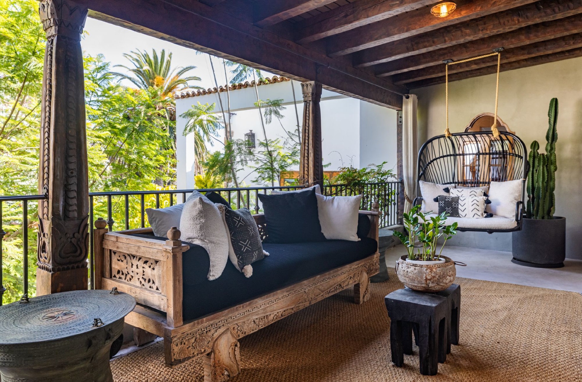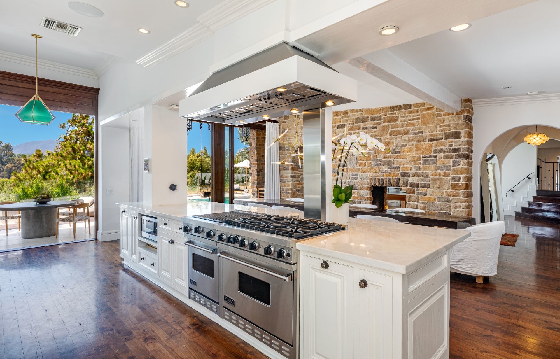 Situated on one of Santa Monica's most exclusive streets, this Spanish-style residence captures sweeping canyon, coastline, ocean and mountain views. Pass through the gated motor court and mission-style doors to the landscaped entry courtyard, where arched front doors lead to the light, bright interiors. Showcasing a blend of traditional craftsmanship and contemporary detail, living areas include a remodeled kitchen with Viking appliances and an adjacent dining area that opens to the family room through a brick accent wall with see-through fireplace. Folding glass doors open to the zero-edge pool, spa, bar, dining terrace, BBQ and fire pit lounge. The 5,345-sq. ft. residence boasts 7 bedroom suites, including a stunning master with private veranda, dressing room and wet room with soaking tub. Features include a rooftop garden terrace, media room, office, fitness studio, security system and 2-car garage, located moments from Santa Monica's best beaches, shopping and dining.