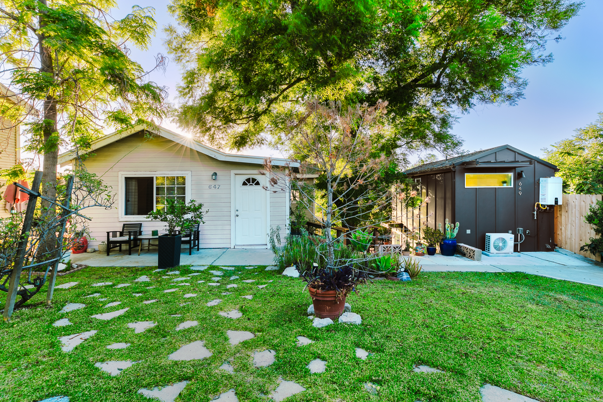 First time in the market in over 25 years! Zoned RD 1.5 for multiple dwellings. Welcome to 647 Parkman Ave, this stunning craftsman-style estate is just minutes walking distance from the highly desired Sunset Junction. Just a short walk away, you'll arrive at Silver Lake's highly sought after local dining and shopping hotspots. Situated on a picturesque, tree-lined street with multiple new developments and architecturally preserved homes, this two-story home offers the premiere location. The property features a main residence consisting of 2 bedrooms, 2 bathrooms, and 1,070 square feet of living space, along with a brand-new, 285-square-foot ADU completed in 2024. The ADU includes a kitchenette, ensuite bathroom, and a loft-style bedroom, perfect for generating passive income, accommodating extended family, or creating a private office space.Set on a spacious 7,450-square-foot lot, both the main house and ADU enjoy their own private outdoor areas. The fully fenced front yard is enclosed by 10-foot ficus hedges for maximum privacy, while the backyard is surrounded by lush landscaping and towering hedges, creating a serene retreat. A charming wooden deck near the ADU provides additional space for outdoor entertaining. As one of the last prime development opportunities on Parkman Ave, this property offers immense opportunity for either an end user or developer. Architectural Plans & Topography report are available for review upon request.