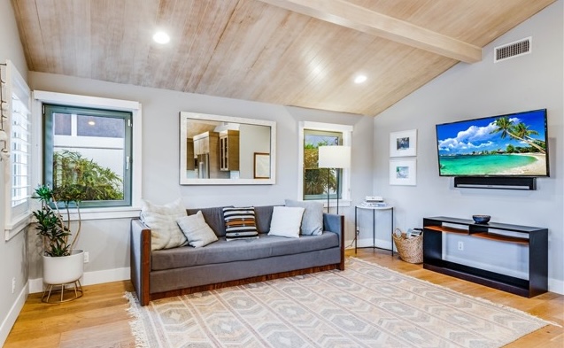 This charming 3 bedroom, 2 bathroom beach home with exceptional curb appeal is nestled in Santa Monica's exclusive Ocean Park community. It is walking distance to everything…one block to Venice, 2 blocks to Whole Foods and Cafe Gratitude, 4 blocks to Main Street, 6 blocks to the beach, and a few homes away from Ozone Park. A wooden gate opens to a fully enclosed front yard and a succulent surrounded porch perfect for enjoying sunsets and relaxing outside. Offering over 1100 square feet of living space and updated modern farmhouse finishes, this home's open floor plan is drenched in natural light. The spacious living room with a vaulted wood beam ceiling leads to a gourmet kitchen featuring Viking and Bosch appliances, wine fridge, and center island. The master suite boasts a walk-in closet and gorgeous bathroom with double sinks, porcelain tile, and a floating vanity. Wide plank French oak flooring and plantation shutters are throughout, and laundry hookups are conveniently located inside. Two bedrooms open completely to a private wood deck and gated turf backyard perfect for entertaining, playing, or parking two cars directly from the alley. When you buy here, you’re not just buying a home, you’re buying a lifestyle! Tour available by appointment only this Saturday and Sunday 2-4pm.