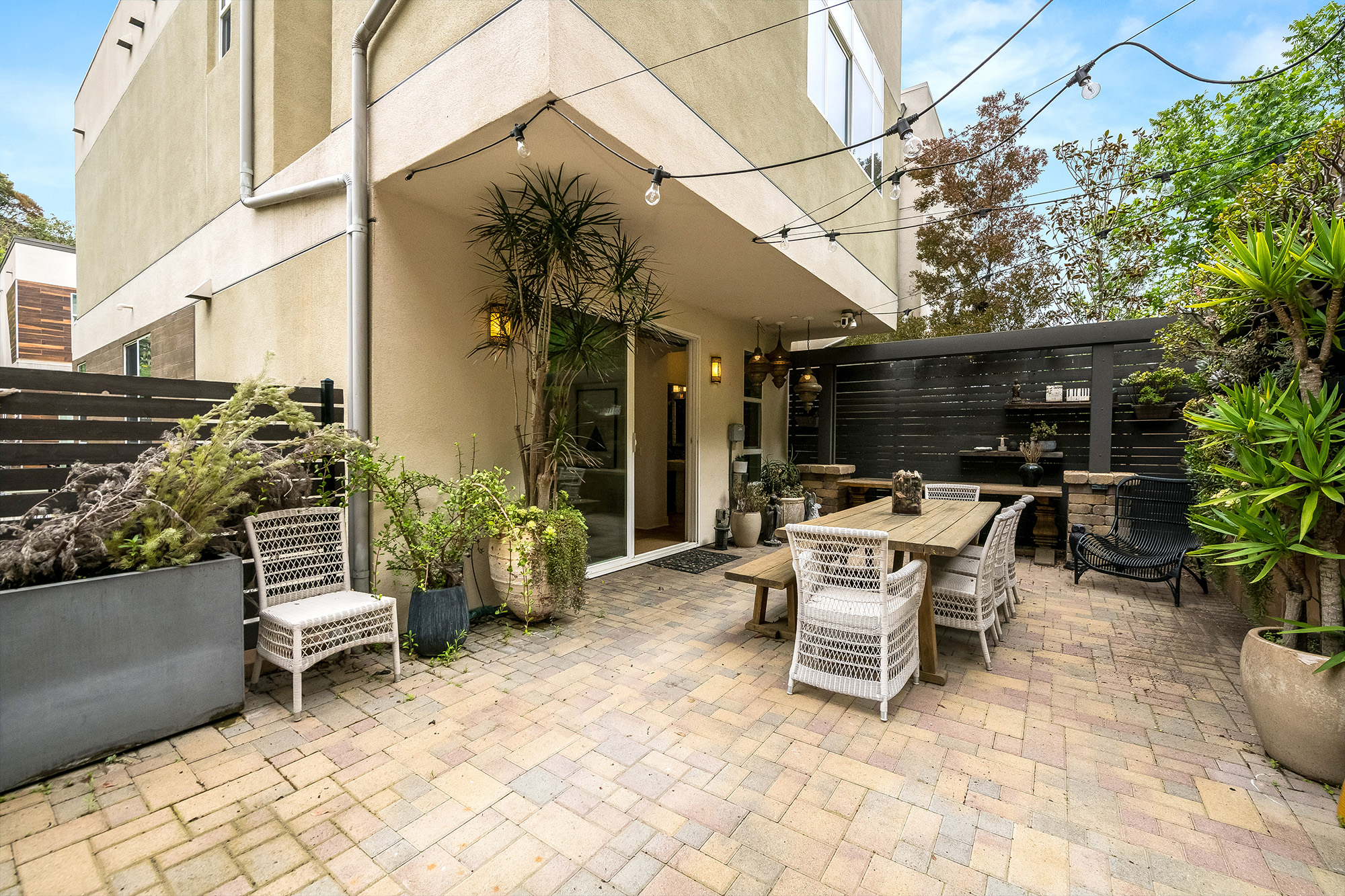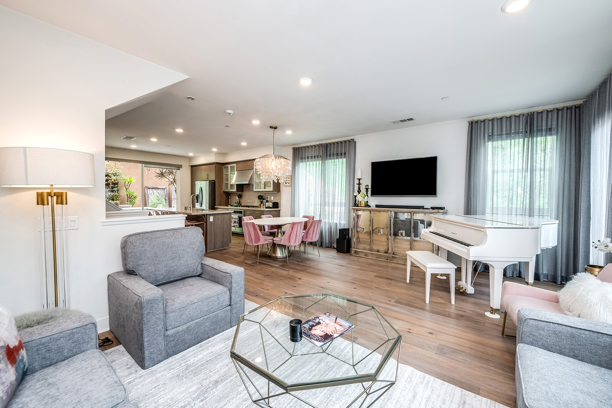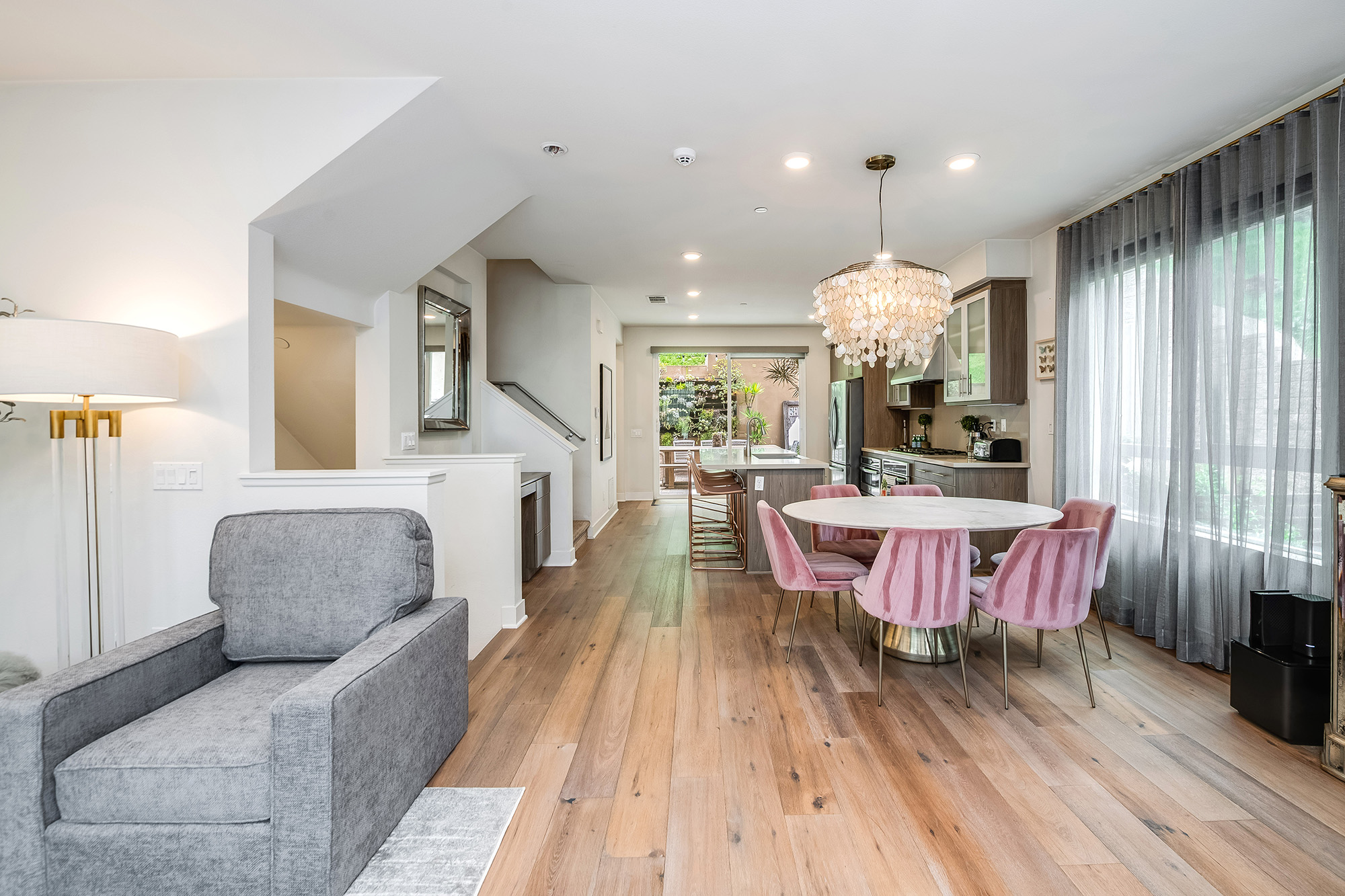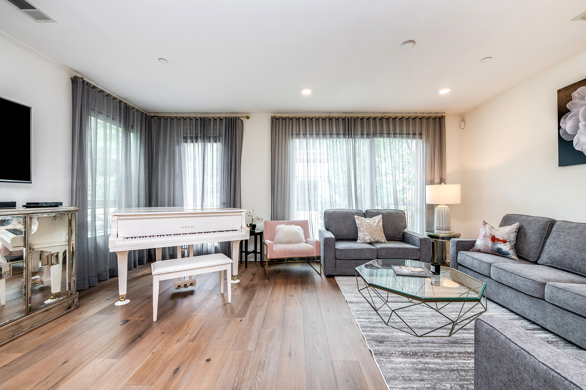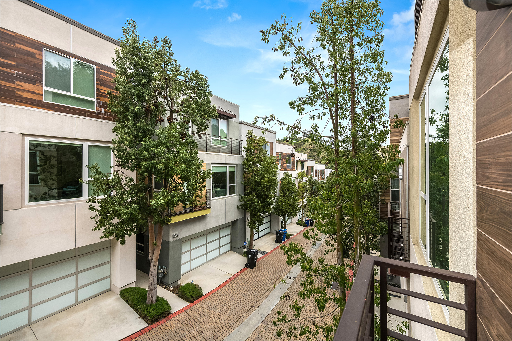 Incredible value for the most desirable and highly coveted unit in the complex! Located on upper Gill Way - in the most quiet and peaceful section of the community, this corner unit features maximum privacy with no neighbor on the Western side. Encapsulated by lush greenery and nature, enjoy extra large patio space only afforded to the corner unit which includes the private side entrance for even more outdoor space and beautiful outdoor dining. Abundant natural light pours in through energy-efficient L-E windows, accentuating a modern and tasteful color scheme throughout. The open-concept kitchen is outfitted with sleek custom cabinetry, durable Caesarstone countertops, and the full accompaniment of stainless steel, energy-saving appliances. Spa-inspired bathrooms showcase imported vanities, luxurious surfaces, elegant Moen fixtures, and water-saving features. Built with sustainability in mind, this home includes programmable thermostat, high-efficiency lighting, tankless water heater, insulated air ducts, and prewiring for 210V hybrid vehicle charging. Ideally and conveniently located with easy access to the Hollywood Bowl, Runyon Canyon, Universal Studios, and the vibrant heart of downtown LA. A true must see property at an exceptional value!!